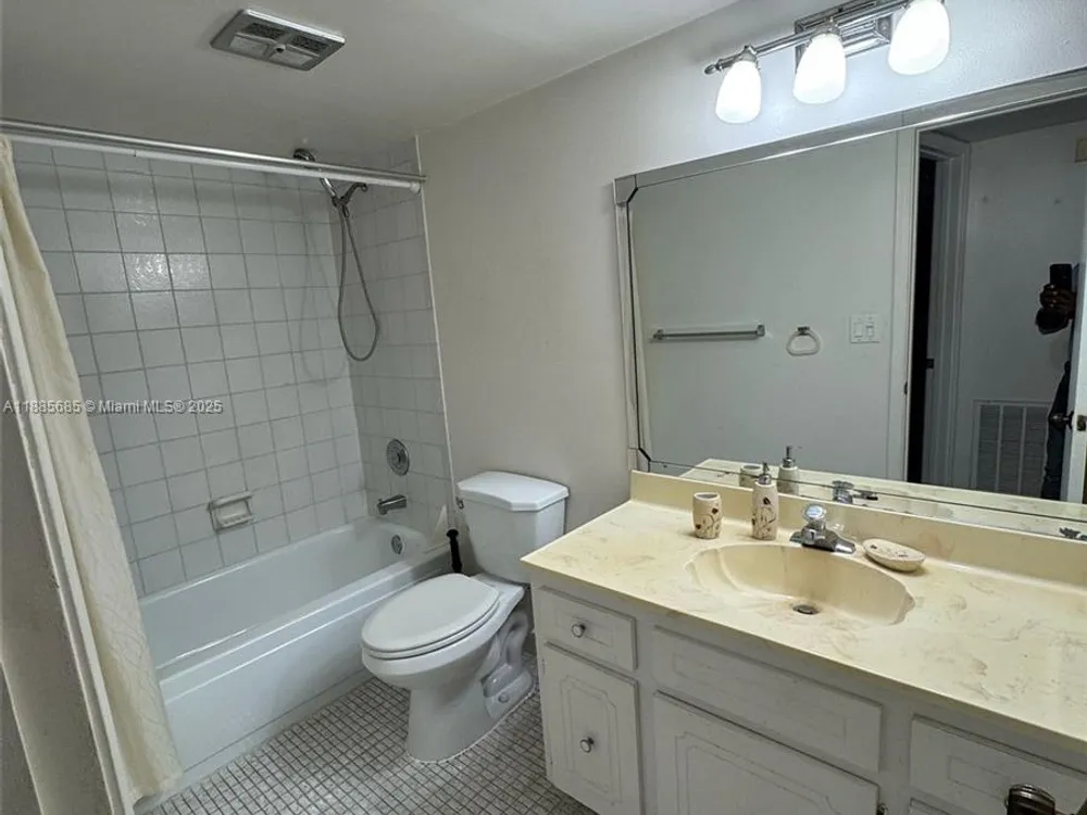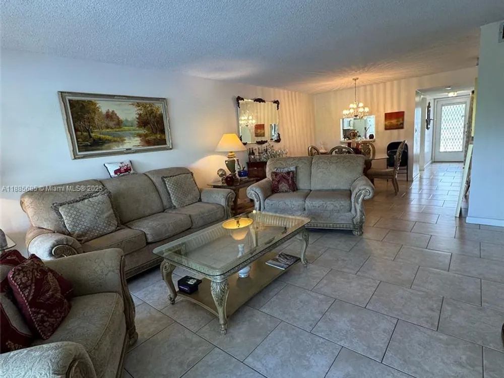 Serene living room and the bedroom in this spacious 2nd-floor home. The large primary suite features his-and-her closets, while the interior is finished with tile flooring throughout. Convenience is key with a washer and dryer inside the unit. Located in a tranquil, gated 55+ community, residents have access to an array of amenities including a swimming pool, 10 shuffleboard courts, a clubhouse with fitness center, saunas, and more. Basic cable, TV services, internet, water, and other features are included in the HOA fee.