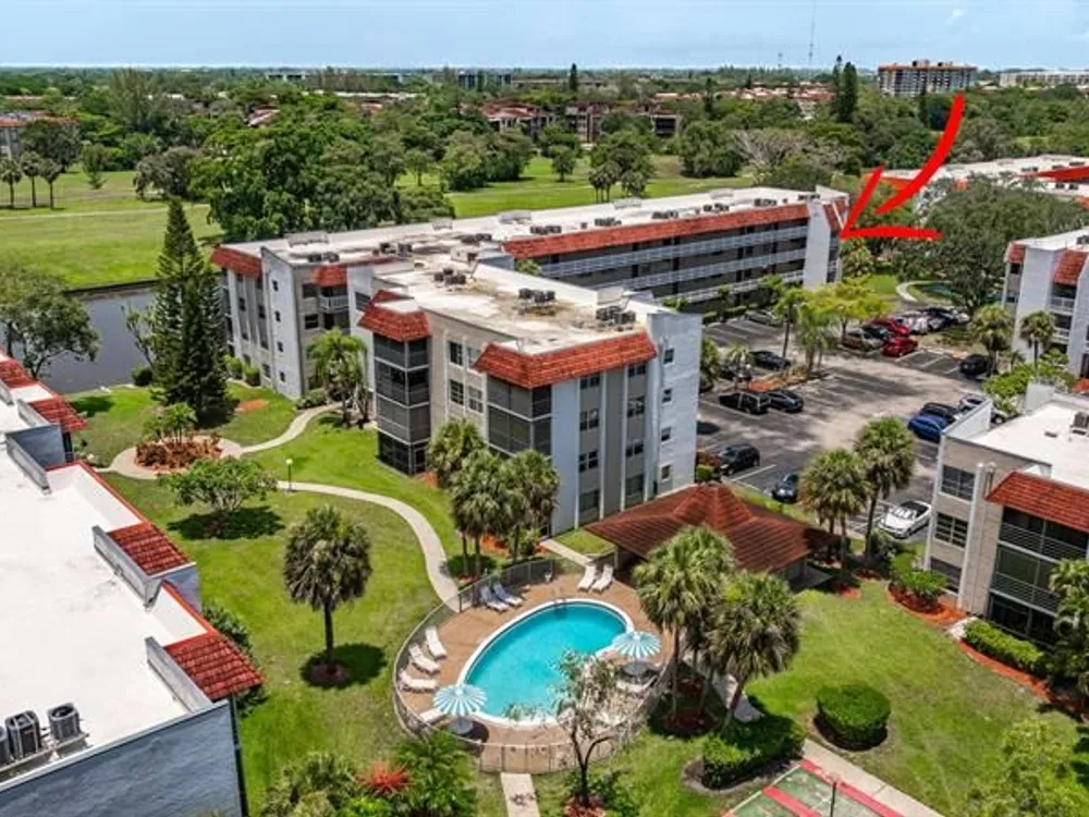 Move-In Ready 2BR/2BA Corner Unit with Water Views!Bright and spacious corner unit featuring abundant natural light from multiple windows. Enjoy peaceful water views from the living area. The kitchen is equipped with stainless steel appliances, including a refrigerator, stove, and dishwasher. Both bedrooms are generously sized and offer multiple walk-in closets, along with excellent storage throughout.Located in a well-maintained community offering resort-style amenities, including five pools, 10 shuffleboard courts, and a clubhouse featuring a card room, library, kitchen, and a large recreation/meeting room that can accommodate up to 150 guests.Conveniently situated near shopping, dining, and major roadways.Don’t miss out—schedule your showing today!