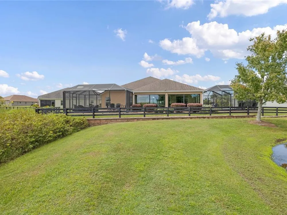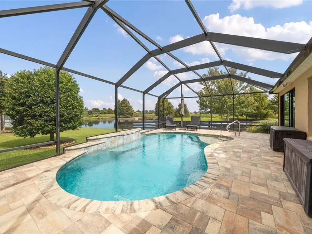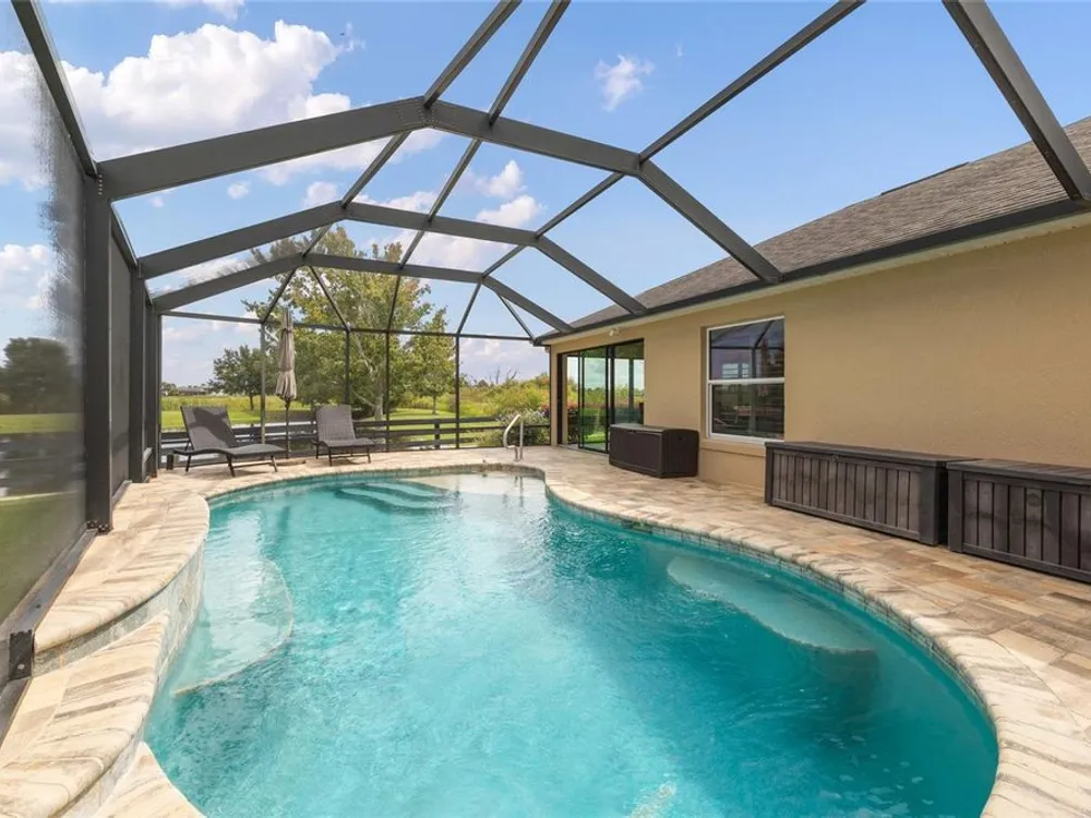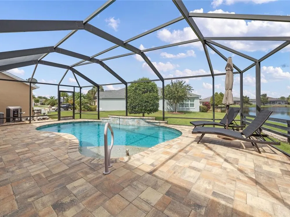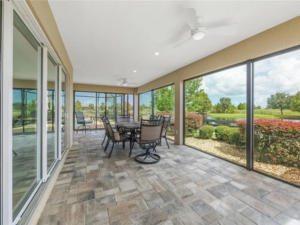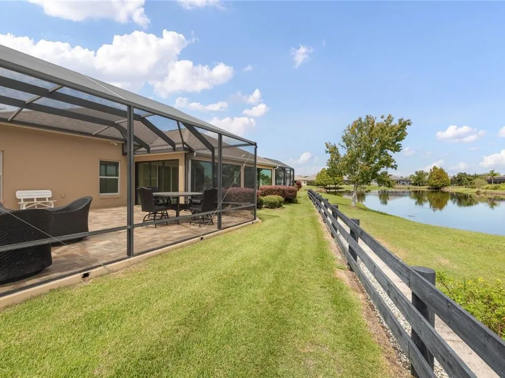 Welcome to this BETTER THAN NEW, Stunning 3-Bedroom, 2-Bathroom LANTANA model home located at the end of a CUL-DE-SAC with an expansive pie-shaped view of a LAKE as well as a very PRIVATE WATER PRESERVE. This homesite comes with the ultimate in curb appeal with desirable, gorgeous, and meticulously maintained landscaping. As you enter, you'll be greeted by an elegant interior, featuring DIAGONAL TILE FLOORS, CROWN MOLDING, and HIGH BASEBOARDS throughout the main living areas. The kitchen is a chef's dream, boasting STAINLESS STEEL APPLIANCES, GRANITE COUNTERTOPS, CUSTOM CABINETRY with convenient PULL-OUT SHELVES, and two SOLAR TUBES for abundant natural light. The bathrooms also feature matching granite countertops, maintaining a cohesive and luxurious feel. The spacious master suite offers a tranquil retreat overlooking your view, while the whole house is adorned with custom PLANTATION SHUTTERS and DECORATIVE VALANCES that are installed throughout the entire home. Step outside to your private oasis. A HUGE SCREENED IN AREA with a BRICK PAVER DECK on one side of the home that opens out to your million dollar water and preserve view creating an ideal space for entertaining. This screened in entertainment area connects to your ENCLOSED LANAI. POCKET SLIDING GLASS DOORS from the interior of the home open up the inside of the home into the enclosed lanai for that seamlessly blend of indoor and outdoor living. Your enclosed lanai also opens up on the other side of your home to your own private CUSTOM SCREENED IN POOL with a water curtain feature that offers that soothing running water sound as you lay out sunning by your private pool. This whole backyard paradise backs onto a serene water feature and preserve, that invites water birds and wildlife to feed along the shore offering the ultimate in privacy and natural beauty as well as hours of entertainment... and best of all...no golf balls or mowing at 6am in the morning, like you have with a golf course view. This home is as functional as it is beautiful, with a GOLF CART GARAGE, a high-end decorative STAMPED CONCRETE DRIVEWAY AND WALKWAY with the whole garage having PAINTED FLOORS and custom STORAGE CABINETS. The property also includes a WHOLE-HOME WATER TREATMENT SYSTEM and energy-efficient features like SILVER SHIELD ATTIC INSULATION and INSULATED GARAGE DOORS. Experience the perfect blend of luxury, comfort, and efficiency with all the added upgrades in this exceptional home. There is literally nothing more that you have to do to this home. This home is worth every penny of the listing price. Low Low Bond Of $17,084.74 compared to $50,000+ for new homes.