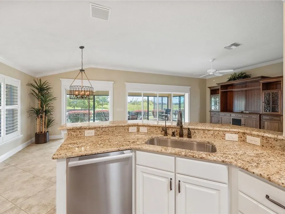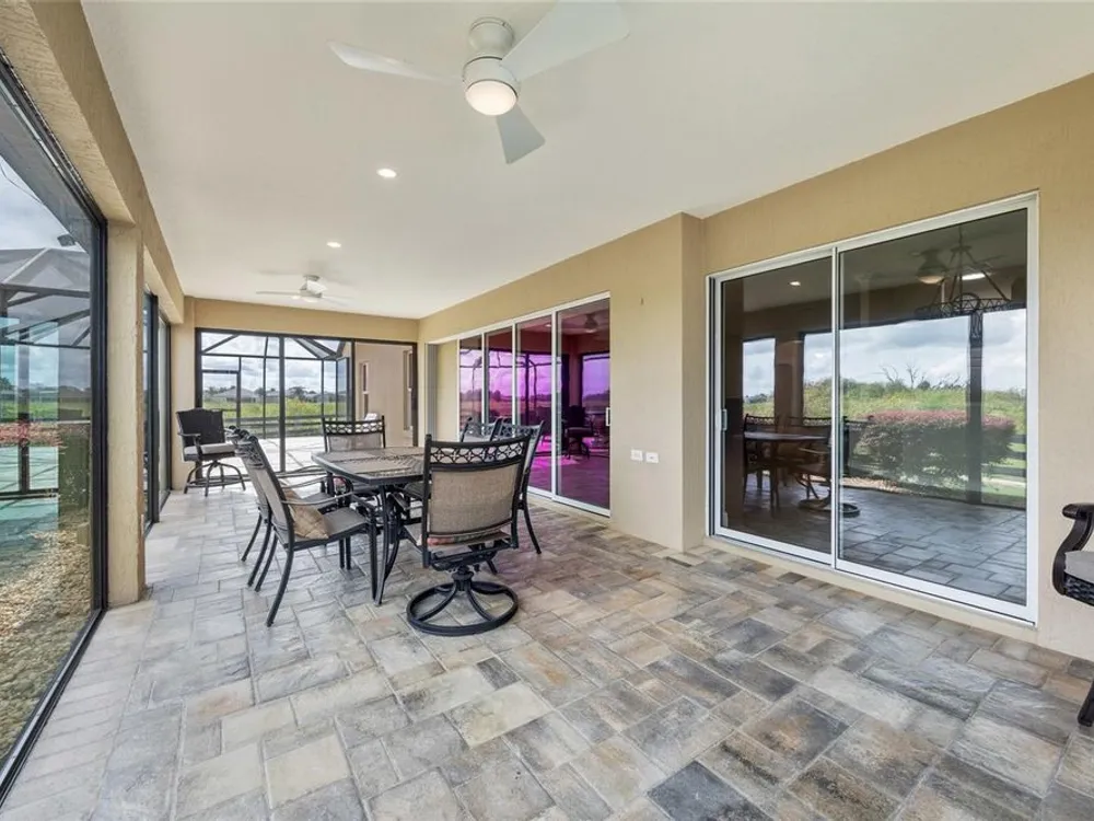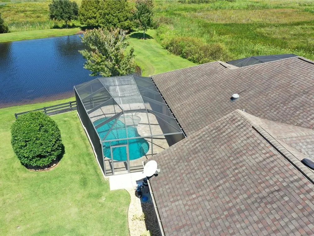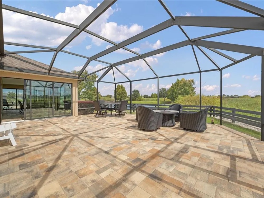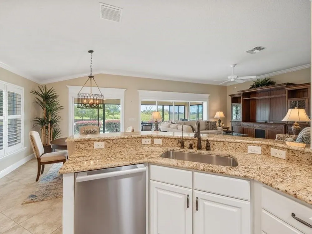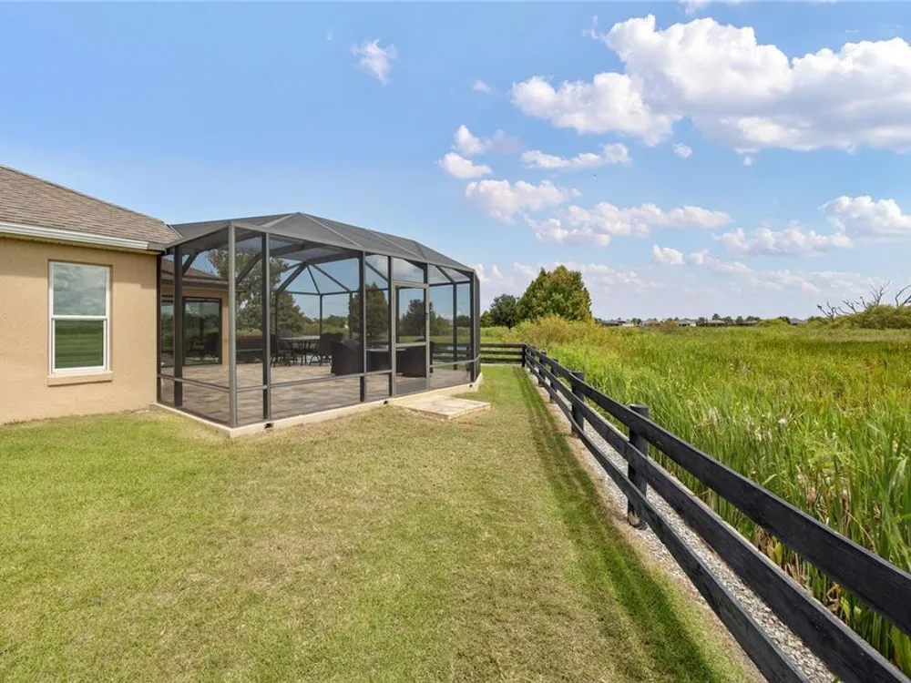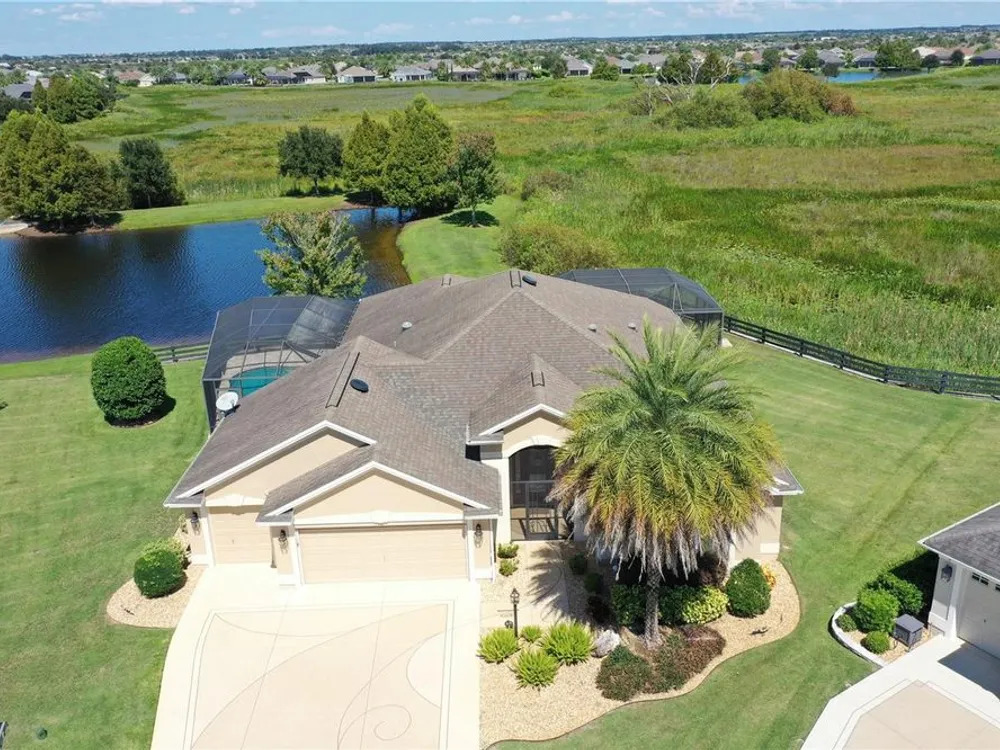 Welcome to this BETTER THAN NEW, Stunning 3-Bedroom, 2-Bathroom LANTANA model home located at the end of a CUL-DE-SAC with an expansive pie-shaped view of a LAKE as well as a very PRIVATE WATER PRESERVE. This homesite comes with the ultimate in curb appeal with desirable, gorgeous, and meticulously maintained landscaping. As you enter, you'll be greeted by an elegant interior, featuring DIAGONAL TILE FLOORS, CROWN MOLDING, and HIGH BASEBOARDS throughout the main living areas. The kitchen is a chef's dream, boasting STAINLESS STEEL APPLIANCES, GRANITE COUNTERTOPS, CUSTOM CABINETRY with convenient PULL-OUT SHELVES, and two SOLAR TUBES for abundant natural light. The bathrooms also feature matching granite countertops, maintaining a cohesive and luxurious feel. The spacious master suite offers a tranquil retreat overlooking your view, while the whole house is adorned with custom PLANTATION SHUTTERS and DECORATIVE VALANCES that are installed throughout the entire home. Step outside to your private oasis. A HUGE SCREENED IN AREA with a BRICK PAVER DECK on one side of the home that opens out to your million dollar water and preserve view creating an ideal space for entertaining. This screened in entertainment area connects to your ENCLOSED LANAI. POCKET SLIDING GLASS DOORS from the interior of the home open up the inside of the home into the enclosed lanai for that seamlessly blend of indoor and outdoor living. Your enclosed lanai also opens up on the other side of your home to your own private CUSTOM SCREENED IN POOL with a water curtain feature that offers that soothing running water sound as you lay out sunning by your private pool. This whole backyard paradise backs onto a serene water feature and preserve, that invites water birds and wildlife to feed along the shore offering the ultimate in privacy and natural beauty as well as hours of entertainment... and best of all...no golf balls or mowing at 6am in the morning, like you have with a golf course view. This home is as functional as it is beautiful, with a GOLF CART GARAGE, a high-end decorative STAMPED CONCRETE DRIVEWAY AND WALKWAY with the whole garage having PAINTED FLOORS and custom STORAGE CABINETS. The property also includes a WHOLE-HOME WATER TREATMENT SYSTEM and energy-efficient features like SILVER SHIELD ATTIC INSULATION and INSULATED GARAGE DOORS. Experience the perfect blend of luxury, comfort, and efficiency with all the added upgrades in this exceptional home. There is literally nothing more that you have to do to this home. This home is worth every penny of the listing price. Low Low Bond Of $17,084.74 compared to $50,000+ for new homes.