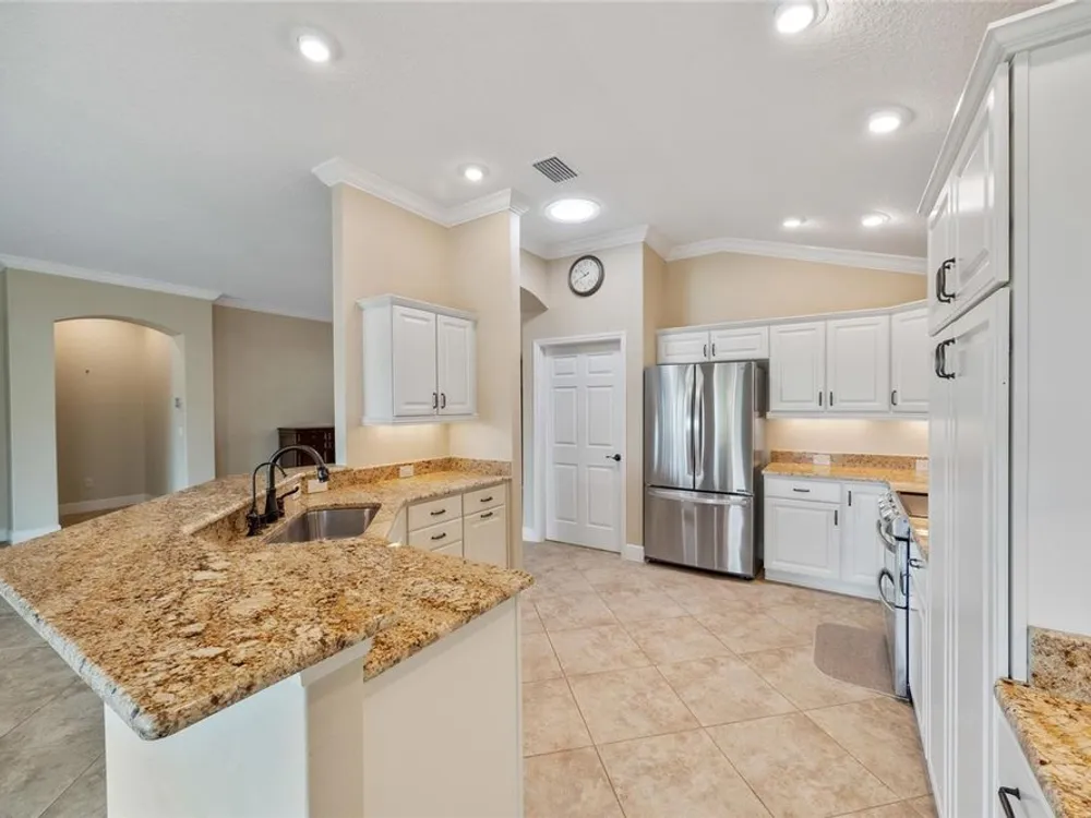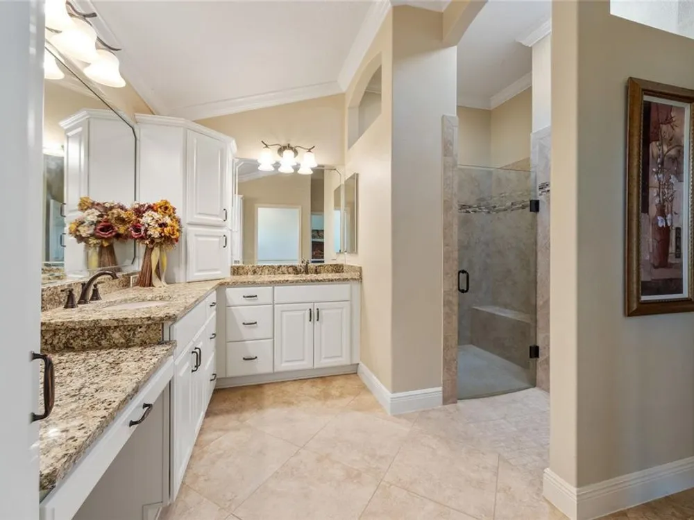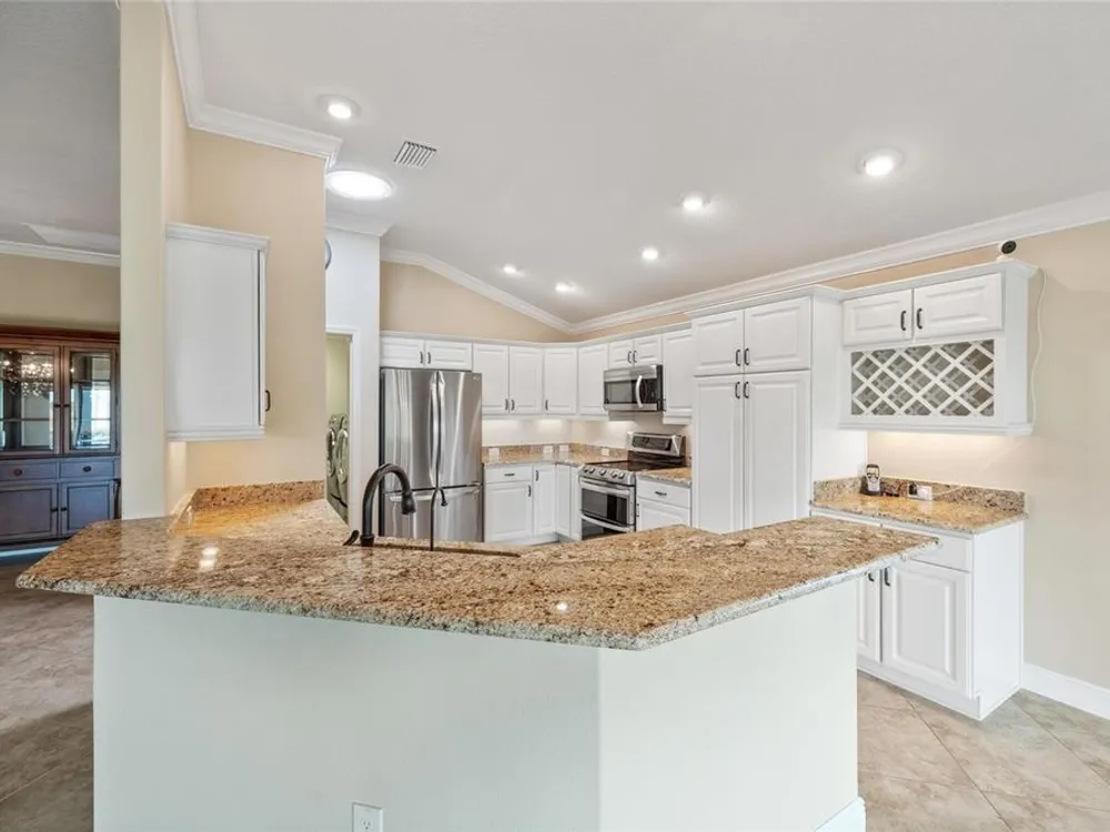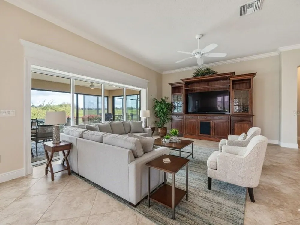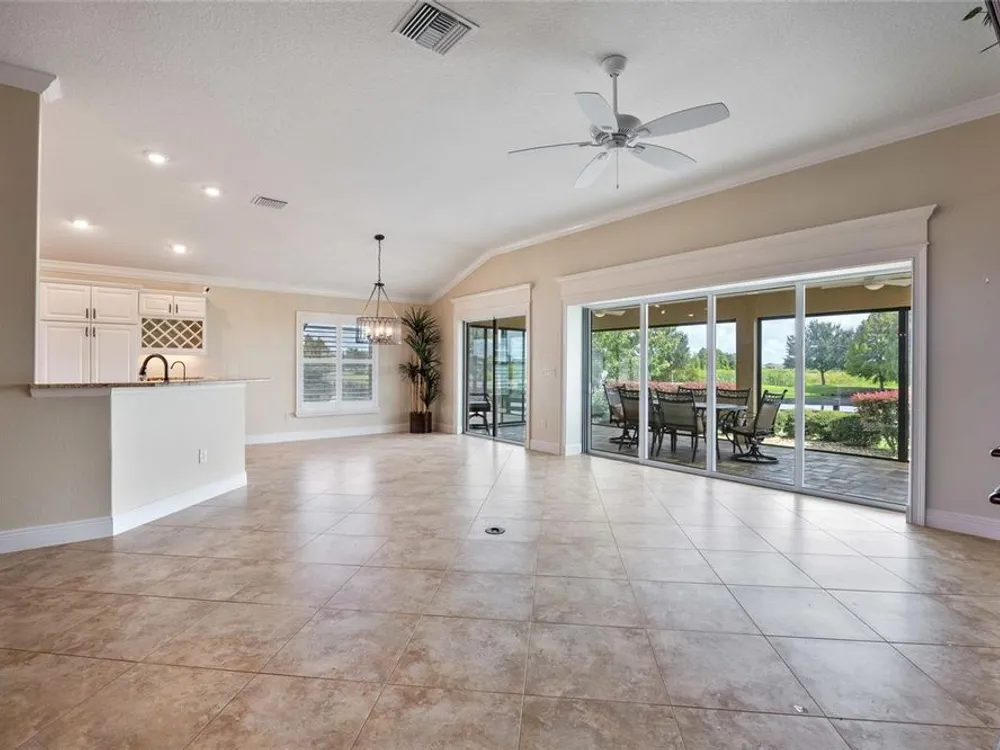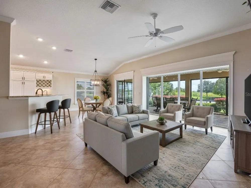 Welcome to this BETTER THAN NEW, Stunning 3-Bedroom, 2-Bathroom LANTANA model home located at the end of a CUL-DE-SAC with an expansive pie-shaped view of a LAKE as well as a very PRIVATE WATER PRESERVE. This homesite comes with the ultimate in curb appeal with desirable, gorgeous, and meticulously maintained landscaping. As you enter, you'll be greeted by an elegant interior, featuring DIAGONAL TILE FLOORS, CROWN MOLDING, and HIGH BASEBOARDS throughout the main living areas. The kitchen is a chef's dream, boasting STAINLESS STEEL APPLIANCES, GRANITE COUNTERTOPS, CUSTOM CABINETRY with convenient PULL-OUT SHELVES, and two SOLAR TUBES for abundant natural light. The bathrooms also feature matching granite countertops, maintaining a cohesive and luxurious feel. The spacious master suite offers a tranquil retreat overlooking your view, while the whole house is adorned with custom PLANTATION SHUTTERS and DECORATIVE VALANCES that are installed throughout the entire home. Step outside to your private oasis. A HUGE SCREENED IN AREA with a BRICK PAVER DECK on one side of the home that opens out to your million dollar water and preserve view creating an ideal space for entertaining. This screened in entertainment area connects to your ENCLOSED LANAI. POCKET SLIDING GLASS DOORS from the interior of the home open up the inside of the home into the enclosed lanai for that seamlessly blend of indoor and outdoor living. Your enclosed lanai also opens up on the other side of your home to your own private CUSTOM SCREENED IN POOL with a water curtain feature that offers that soothing running water sound as you lay out sunning by your private pool. This whole backyard paradise backs onto a serene water feature and preserve, that invites water birds and wildlife to feed along the shore offering the ultimate in privacy and natural beauty as well as hours of entertainment... and best of all...no golf balls or mowing at 6am in the morning, like you have with a golf course view. This home is as functional as it is beautiful, with a GOLF CART GARAGE, a high-end decorative STAMPED CONCRETE DRIVEWAY AND WALKWAY with the whole garage having PAINTED FLOORS and custom STORAGE CABINETS. The property also includes a WHOLE-HOME WATER TREATMENT SYSTEM and energy-efficient features like SILVER SHIELD ATTIC INSULATION and INSULATED GARAGE DOORS. Experience the perfect blend of luxury, comfort, and efficiency with all the added upgrades in this exceptional home. There is literally nothing more that you have to do to this home. This home is worth every penny of the listing price. Low Low Bond Of $17,084.74 compared to $50,000+ for new homes.