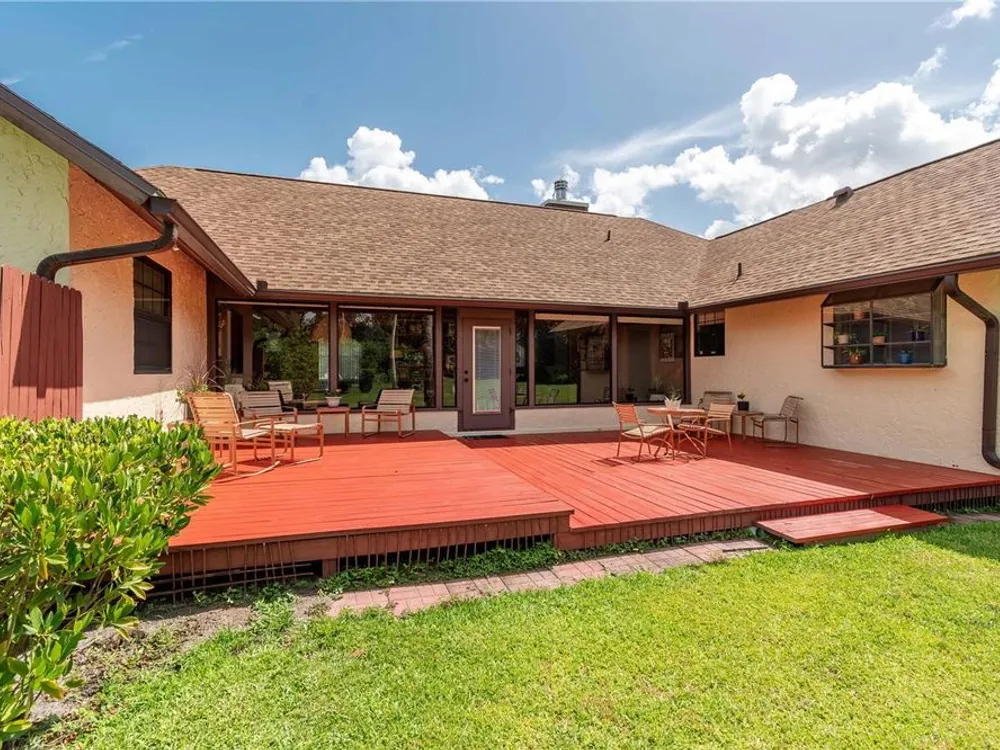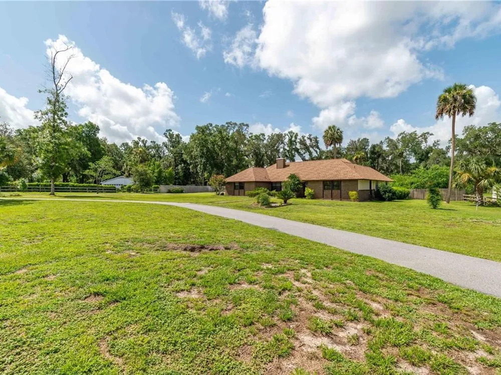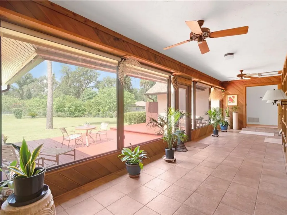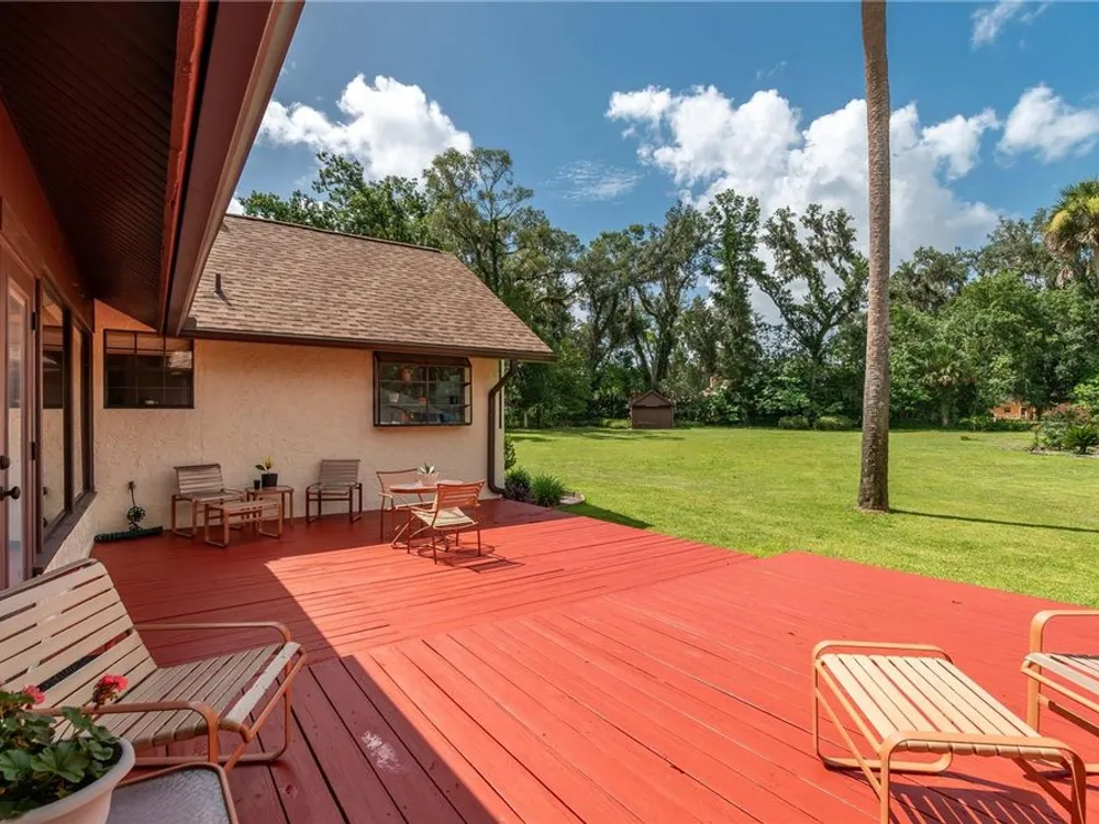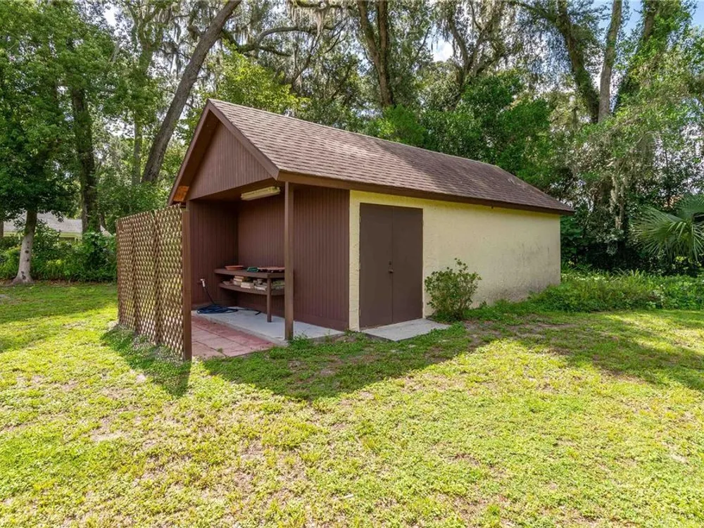 SELLER IS PROVIDING A HOME WARRANTY! Welcome to this lovingly cared for 4/3 home on 1.56 park like acres in the highly desirable manned gated community of El Dorado. This fantastic community is minutes from all amenities, but is located in a quiet beautiful enclave of the city with lovely mature landscaping throughout the community. This magnificent home has a newer roof, newer HVAC system, newer hot water heater, and carpet. 2 of the bathrooms have been updated. The stunning home features a formal living room, a great room with a fireplace that opens to a spacious eat in kitchen with an abundance of cabinets and counter space. The light and bright laundry room is located off of the kitchen and has lots of storage. The 4 bedrooms are large and inviting. There is a wonderful interior glass walled lanai that overlooks a newer beautiful deck and fenced back yard. The side entry garage is oversized and has lots of storage space. There is also a super shed at the back of the property with electric, A/C, and built in shelving that is perfect for an office, a game room, play area, or for crafts and hobbies. The shed is plumbed for a bath.