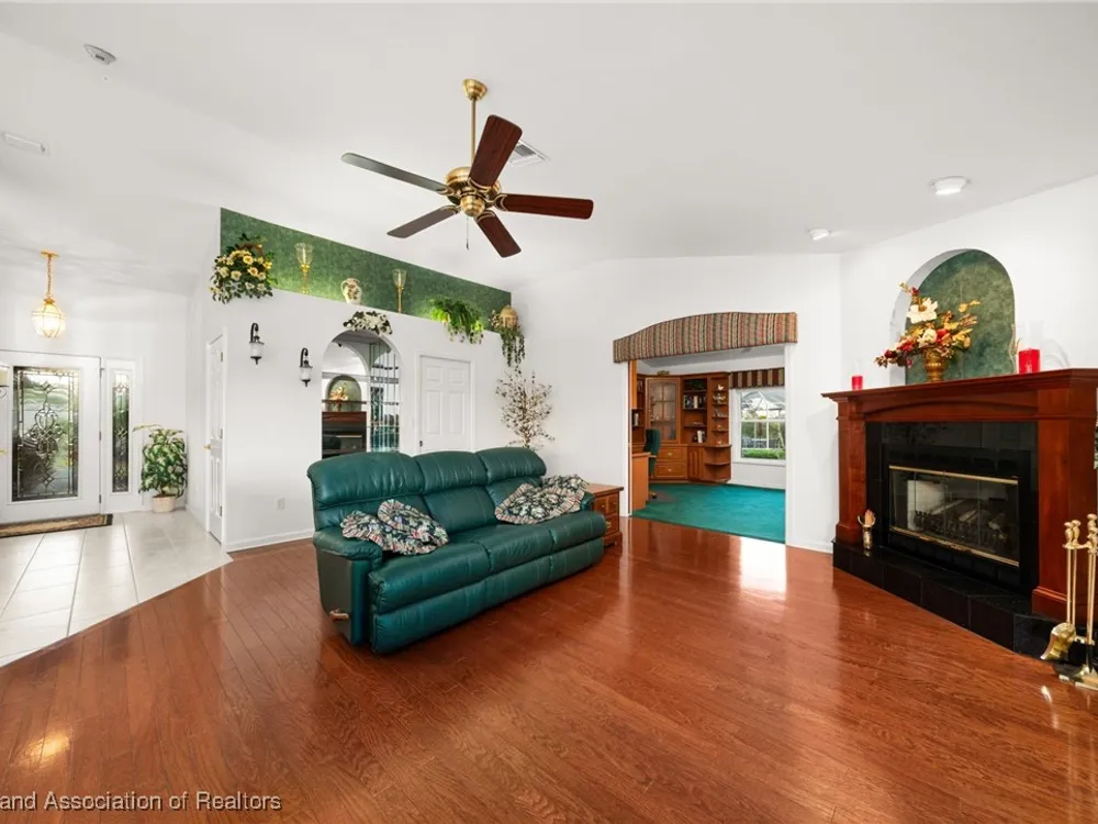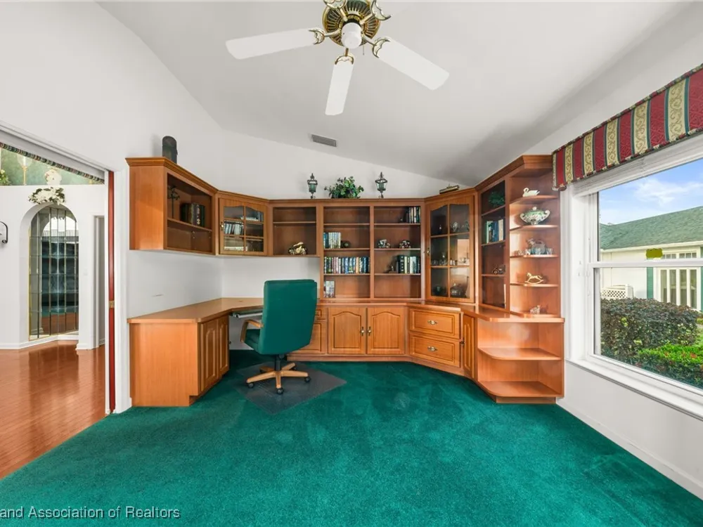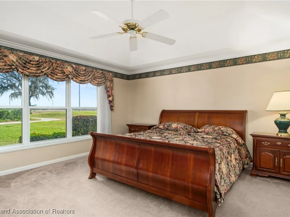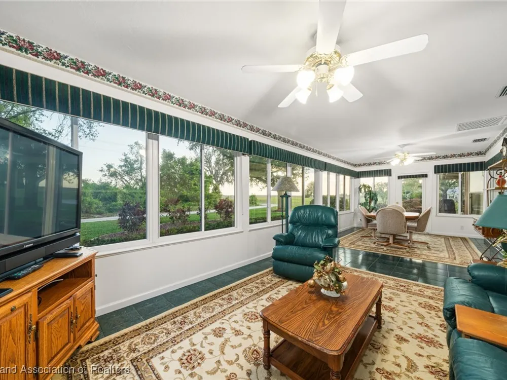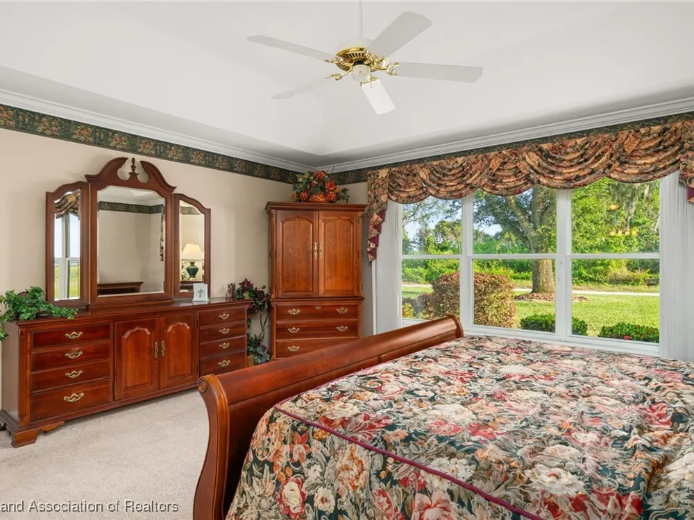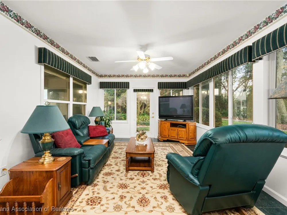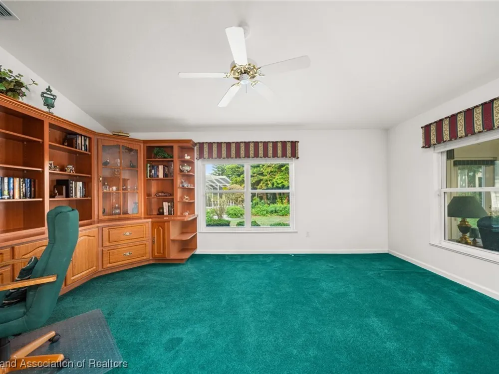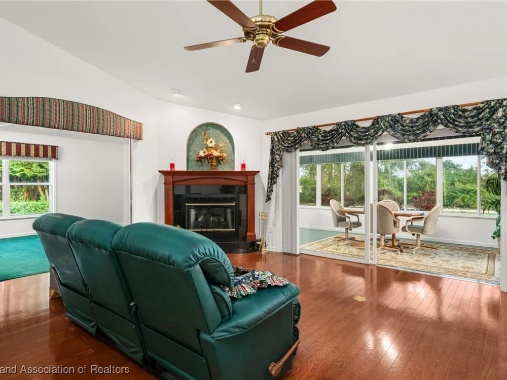 EXECUTIVE GOLF COURSE HOME located in the sought-after 55+ community of Highlands Ridge. Residents enjoy a vibrant community lifestyle with access to various amenities. As you step into this partially furnished home, you will enter the living room with a gas fireplace which can also be wood burning (with some adjustments), dining room and appreciate the well-equipped kitchen with quartz counters providing plenty of work area, stainless steel appliances, and many drawers and cupboards. In addition, there is a pantry closet, additional storage area with shelving for larger items, and the washer and dryer conveniently located in the kitchen behind closed double doors. To the left of the living room is a large den with built-in desk area and shelves for your own personal library. Off the living room, is the best room in the home. The family room, which backs up to the golf course cart path and beyond that a wooded area and views of the tee boxes and fairway. It is a very peaceful/relaxing room. The owners suite is a spacious room with a sleigh bed, double walk-in closets, and a nice view of the back yard. The on-suite bathroom has double vanities, a step in shower, large jetted tub and private toilet room. The guest bedroom and bath has a pocket door to separate it from the living room. Large 2 car garage with a separate air conditioned work room area. Pavered driveway and side walk to front door. Don't forget there is an installed Generac, irrigation well for watering the large yard, thermal pane windows that you can not see inside, gas grill and golf cart included. You are just a 10 minute drive to all the new restaurants on the newly updated circle in downtown Sebring thanks to HGTV HomeTown Take Over. If you are not a golfer, keep busy with pickle ball, tennis, bocci ball, shuffleboard, swimming(2 pools) and many other activities in the community club house.