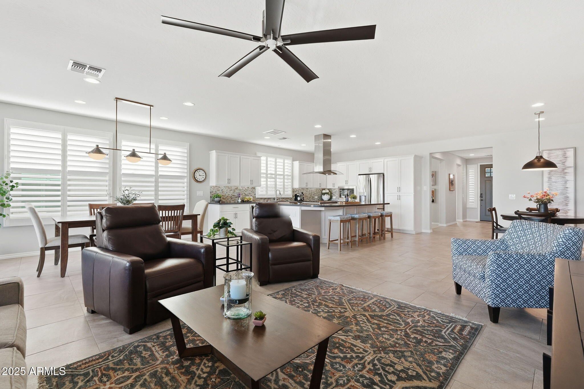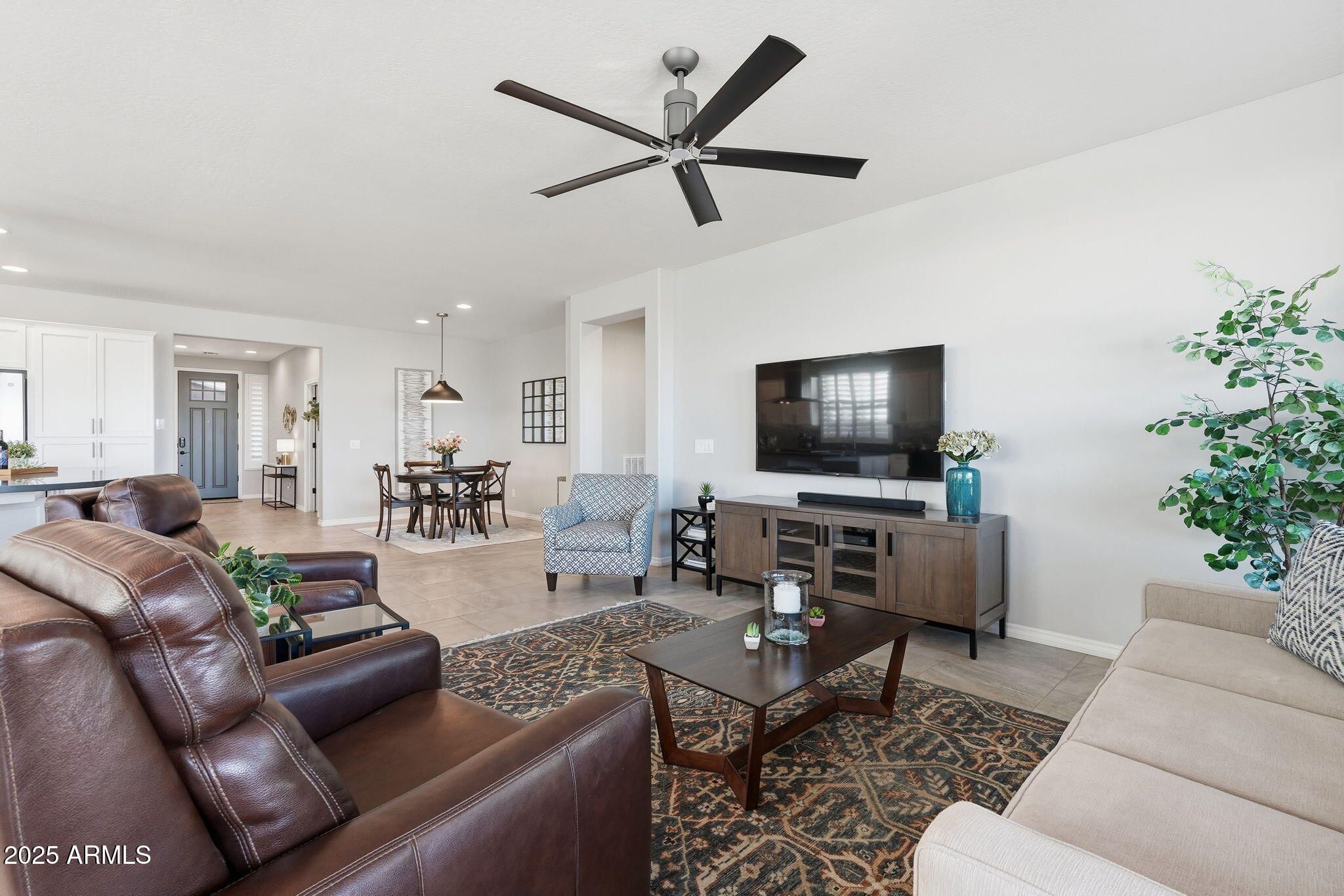 Located in the resort-style community of Encanterra Country Club, this delightful home offers 2 beds/2 baths and a versatile office space ideal for work or hobbies. The open-concept layout creates a bright, welcoming flow throughout, highlighted by a living room with large windows and a sliding door that leads to a covered patio and a serene backyard with no neighbor behind for added privacy. Can be purchased furnished. Residents enjoy quick access to the Algarve pool and restaurant, along with the impressive lineup of amenities. Encanterra is known for, dining, fitness, clubs, activities, and year-round events. Whether you're looking for a full-time residence or a seasonal retreat, this home provides an incredible opportunity to enjoy the lifestyle so many love.