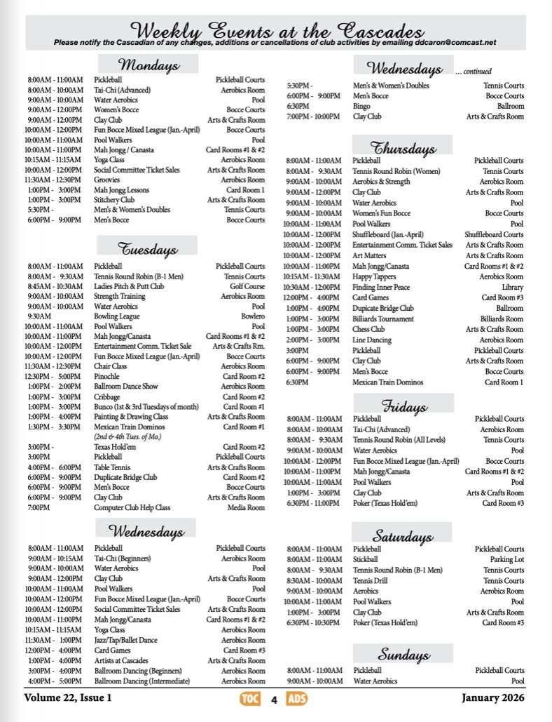 There are plenty of activities available in Cascades at St. Lucie West. Here is a sample of some of the clubs, activities and classes offered here.