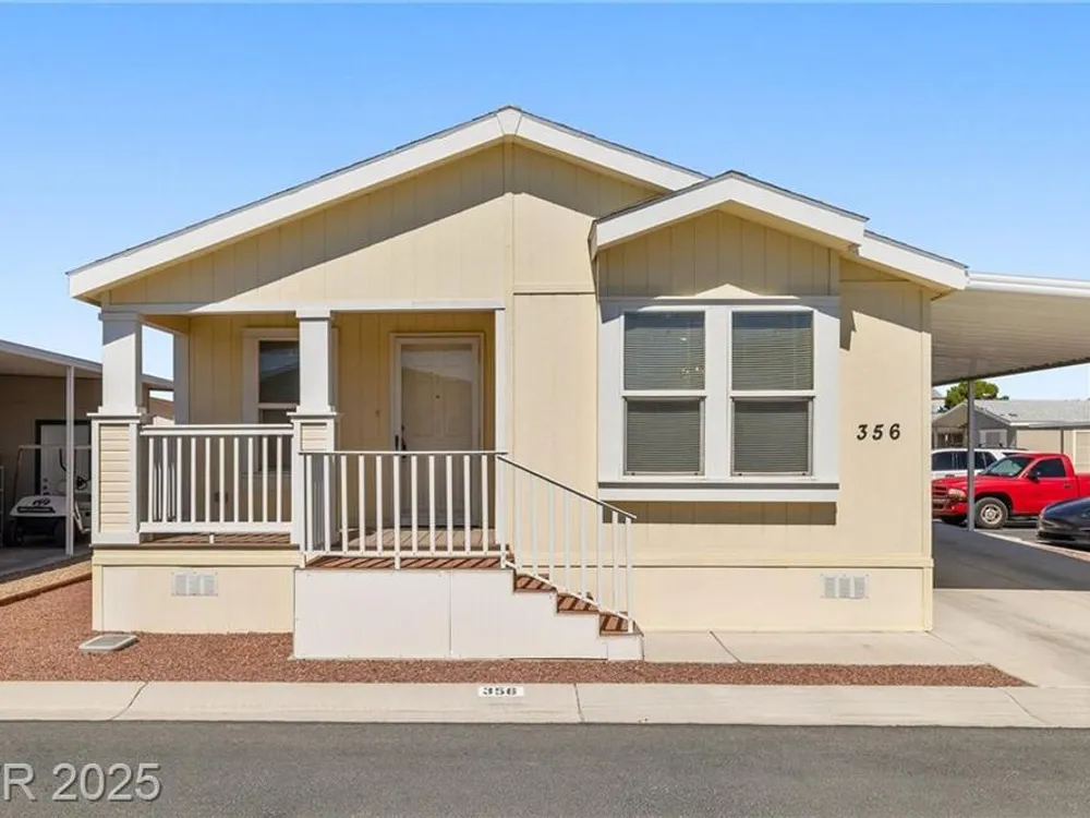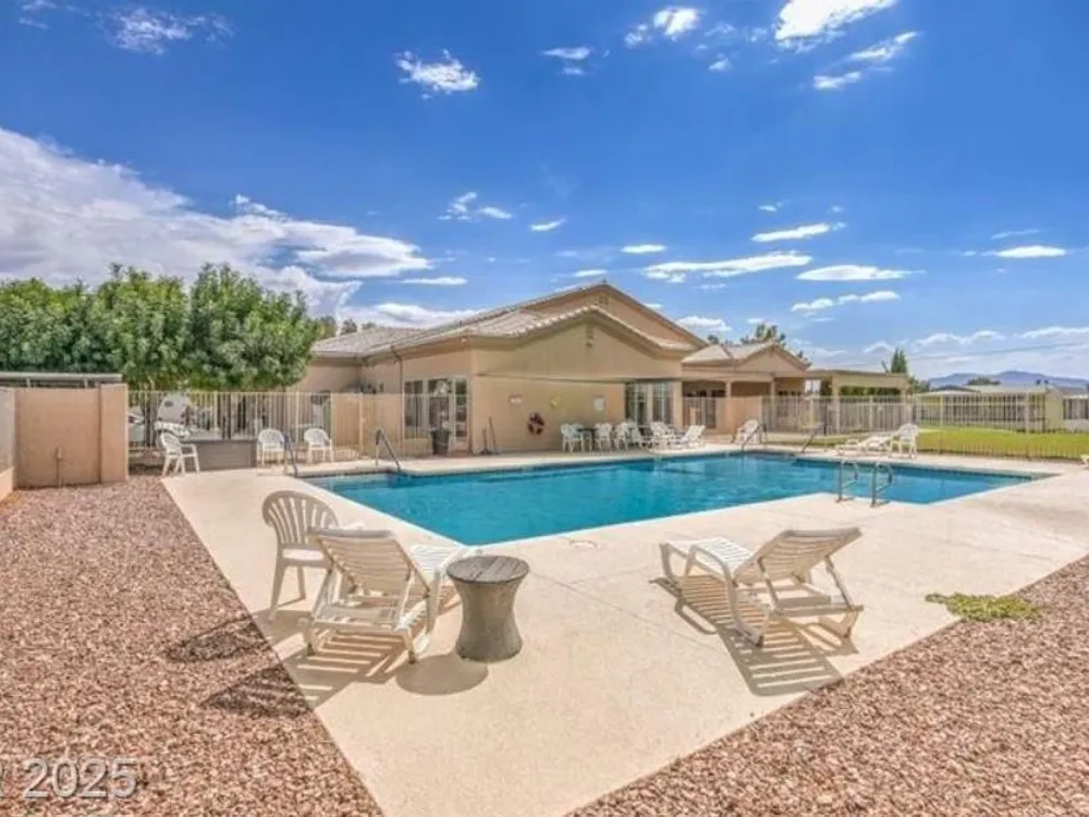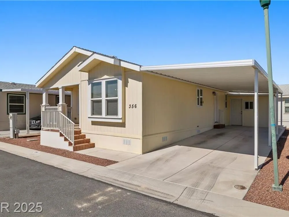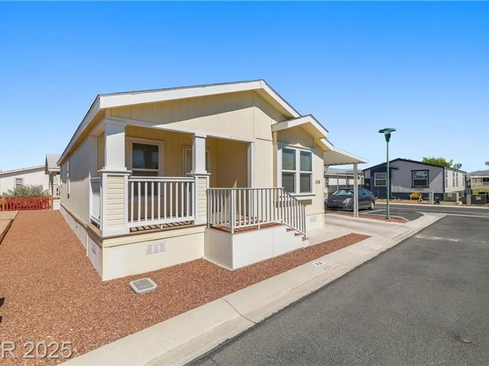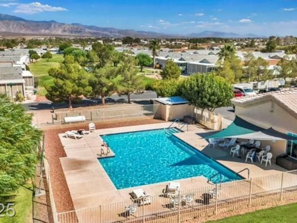 Welcome to Your Dream Home in Beautiful Pahrump, NV! Nestled within an exclusive 55+ gated community with NO LOT LEASE, this charming 2-bed, 2-bath residence offers the perfect blend of comfort, style, and convenience. The kitchen is a delight, featuring an island, breakfast bar & a cozy nook—ideal for morning coffee or casual meals. Ceiling fans & blinds throughout provide year-round comfort. The spacious primary bedroom includes a walk-in closet & a versatile step-in shower/tub combo. You'll also find a convenient laundry area with Kenmore washer & dryer, complete with built-in cabinetry for extra storage. Outside, enjoy the 2-car tandem carport, a 10x8 storage shed, & low-maintenance living. As a resident, you'll have access to an array of resort-style amenities including a clubhouse, fitness center, pool, spa, golf course, waterscaping, pet park & more—designed to support an active, social, and carefree lifestyle. Don’t miss this opportunity!