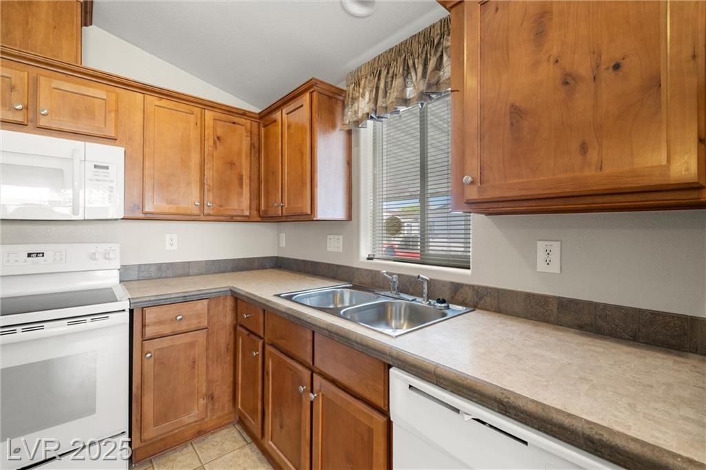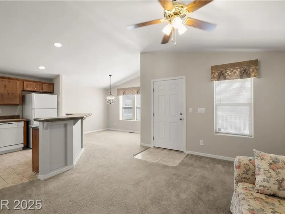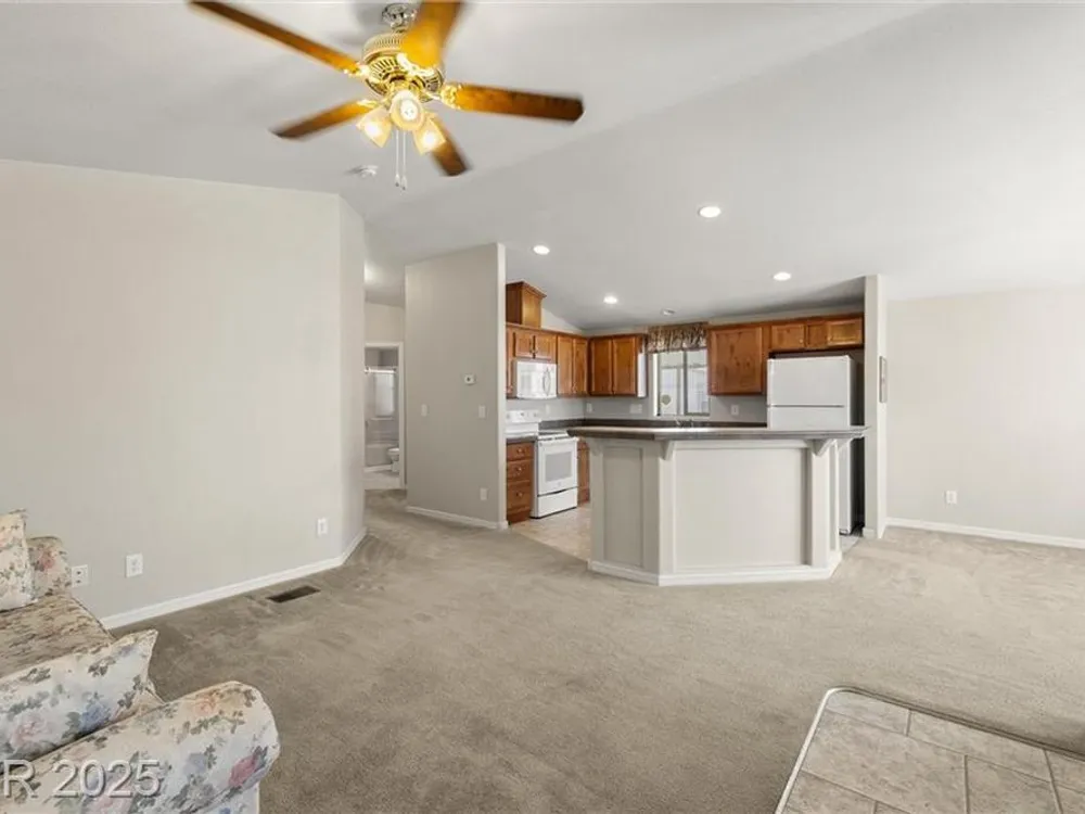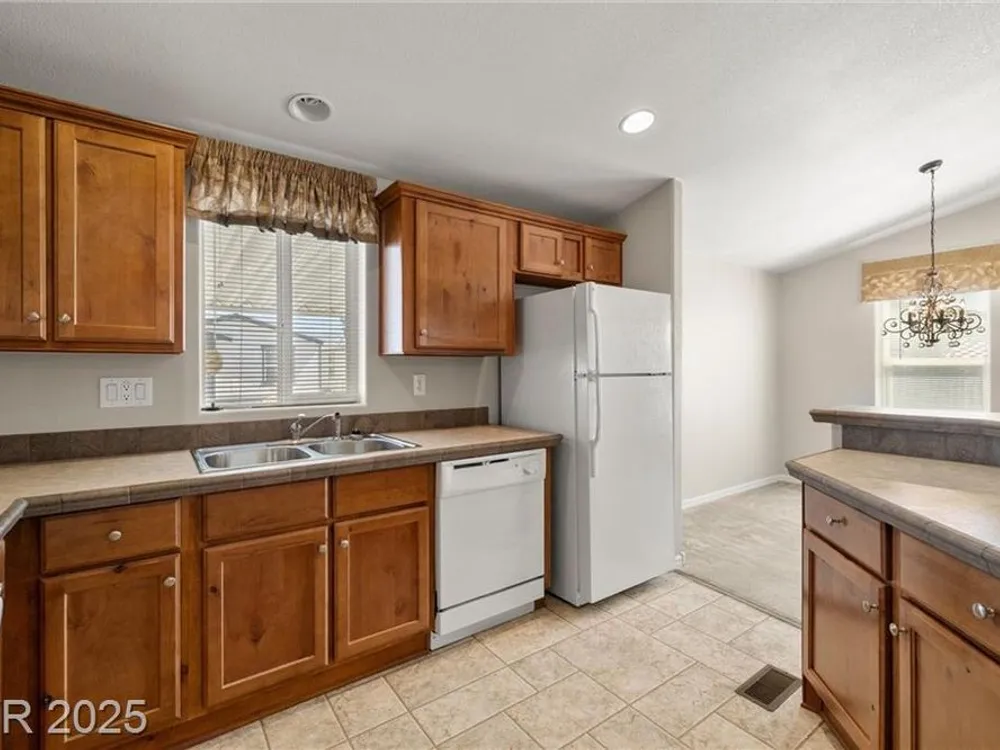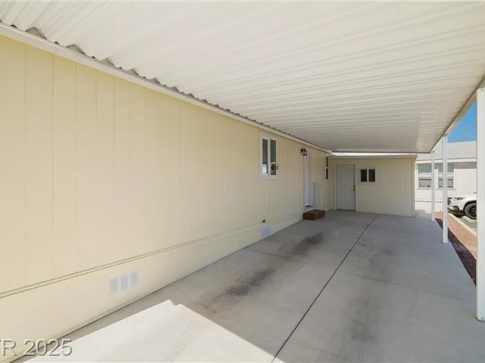 Welcome to Your Dream Home in Beautiful Pahrump, NV! Nestled within an exclusive 55+ gated community with NO LOT LEASE, this charming 2-bed, 2-bath residence offers the perfect blend of comfort, style, and convenience. The kitchen is a delight, featuring an island, breakfast bar & a cozy nook—ideal for morning coffee or casual meals. Ceiling fans & blinds throughout provide year-round comfort. The spacious primary bedroom includes a walk-in closet & a versatile step-in shower/tub combo. You'll also find a convenient laundry area with Kenmore washer & dryer, complete with built-in cabinetry for extra storage. Outside, enjoy the 2-car tandem carport, a 10x8 storage shed, & low-maintenance living. As a resident, you'll have access to an array of resort-style amenities including a clubhouse, fitness center, pool, spa, golf course, waterscaping, pet park & more—designed to support an active, social, and carefree lifestyle. Don’t miss this opportunity!