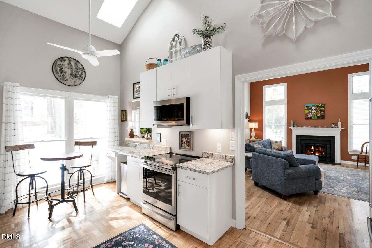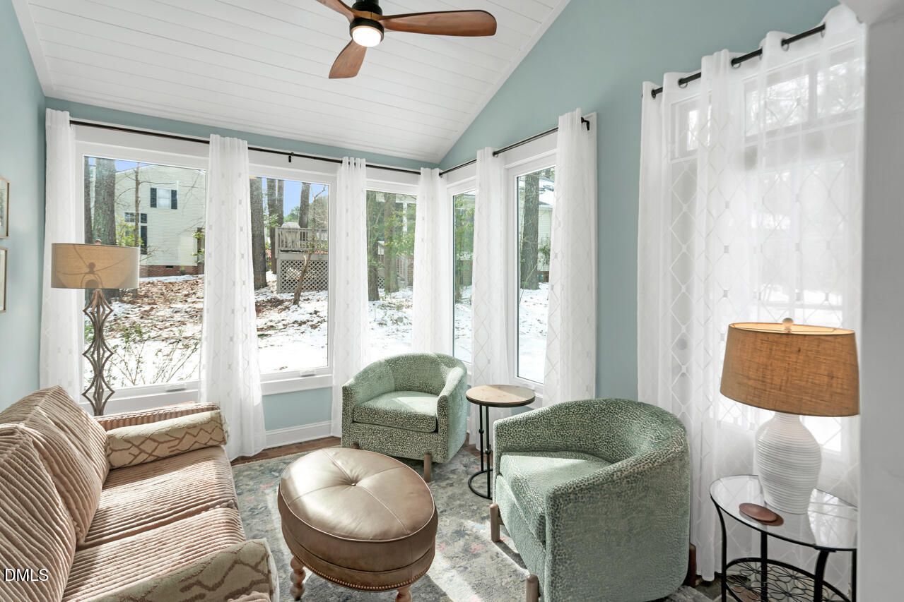 A Beautifully updated townhouse in Fearrington Village, one of Chatham County's most beloved communities. This two level home offers effortless main-floor living with a first floor Primary Suite, complete with a double vanity with granite countertop, separate soaking tub, walk in shower and a large walk in closet. The living area feels bright and open with it's vaulted smooth ceilings and gas log fireplace. A former screened porch has been transformed into a true year round sunroom with PELLA windows that bring in natural light and garden views. The main level also includes beautiful wood flooring, separate dining room area and a cheerful breakfast nook off the kitchen . Cooks will appreciate the induction cooktop, new microwave range hood and beautiful granite counters. Upstairs, two comfortable bedrooms and a full guest bath create the perfect space for visitors, hobbies, or a dedicated home office. Major systems have already been handled for you: 2024 High Efficiency HVAC, all new ductwork, an encapsulated crawlspace and a whole house filtration system. . All the big ticket items are done, move in and enjoy. Living in Fearrington Village means embracing a vibrant community filled with character. Enjoy the Independent Bookstore, a Relais & Chateaux Inn and Restaurant, a cafe/wine bar and unique specialty boutiques. The Village comes alive with Whirligigs spinning in the breeze, adding a touch of whimsy to your daily strolls. Every Tuesday, the Fearrington Farmers Market brings in fresh, local, organic foods from nearby growers, a favorite weekly ritual for residents. And on Wednesdays, a rotating lineup of food trucks offers something new to try each week. And of course, the neighborhood's iconic belted cows and goats complete the picture, making Fearrington Village one of the most unique and beloved communities in Chatham County.
