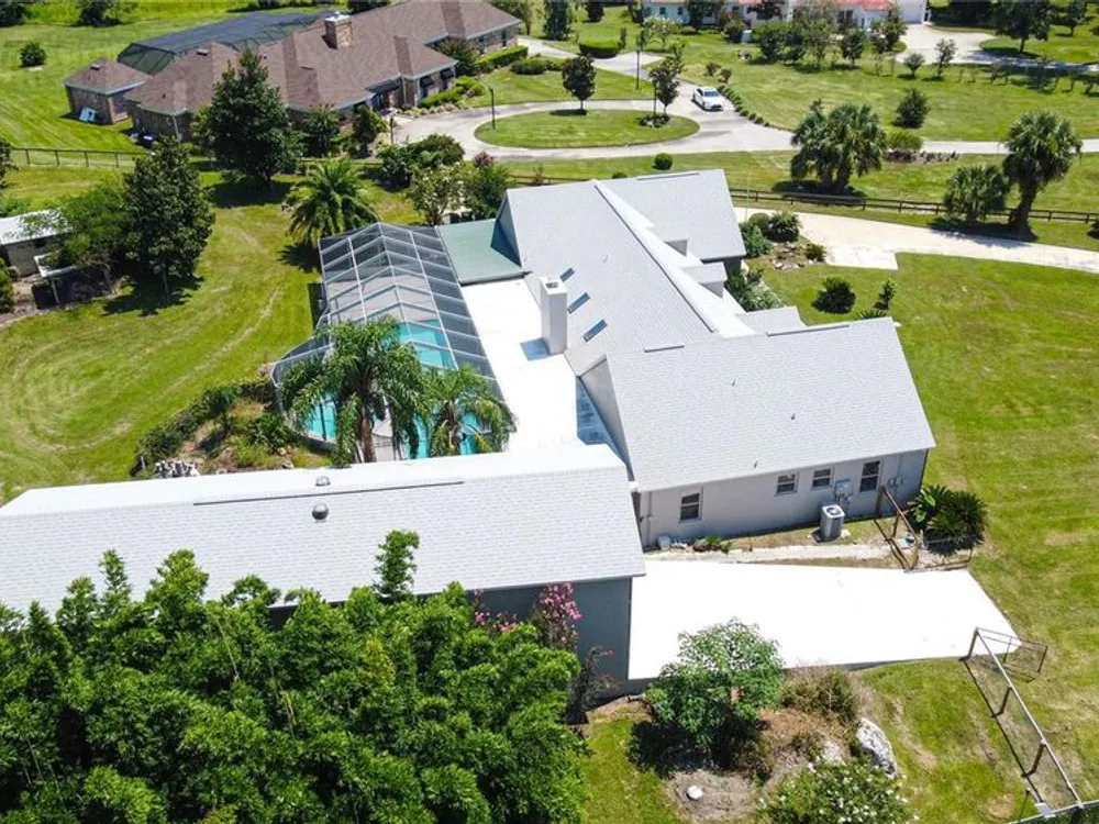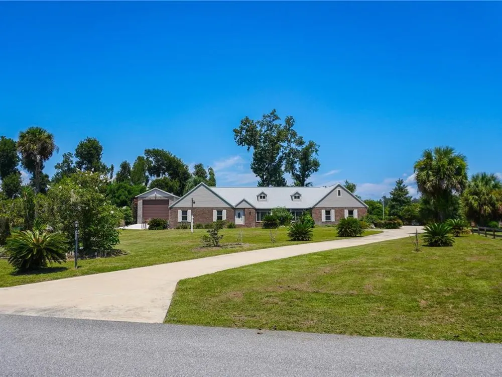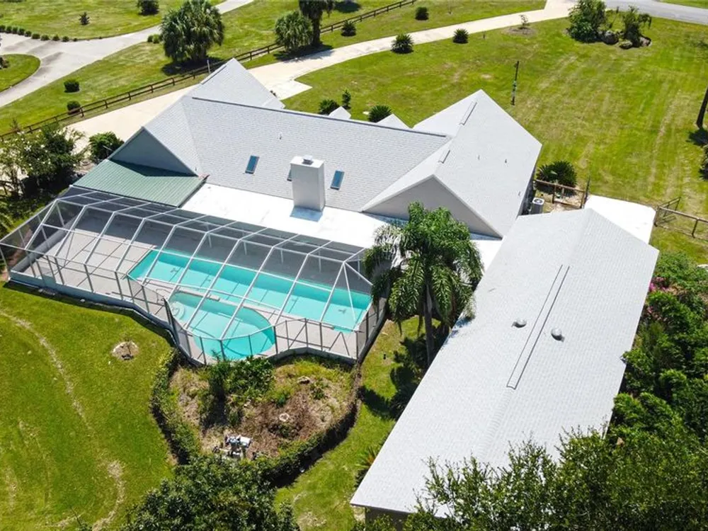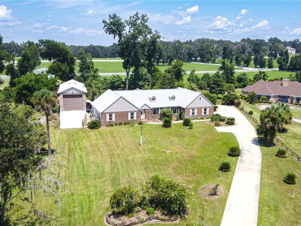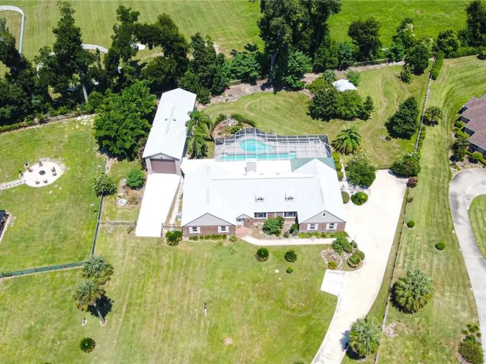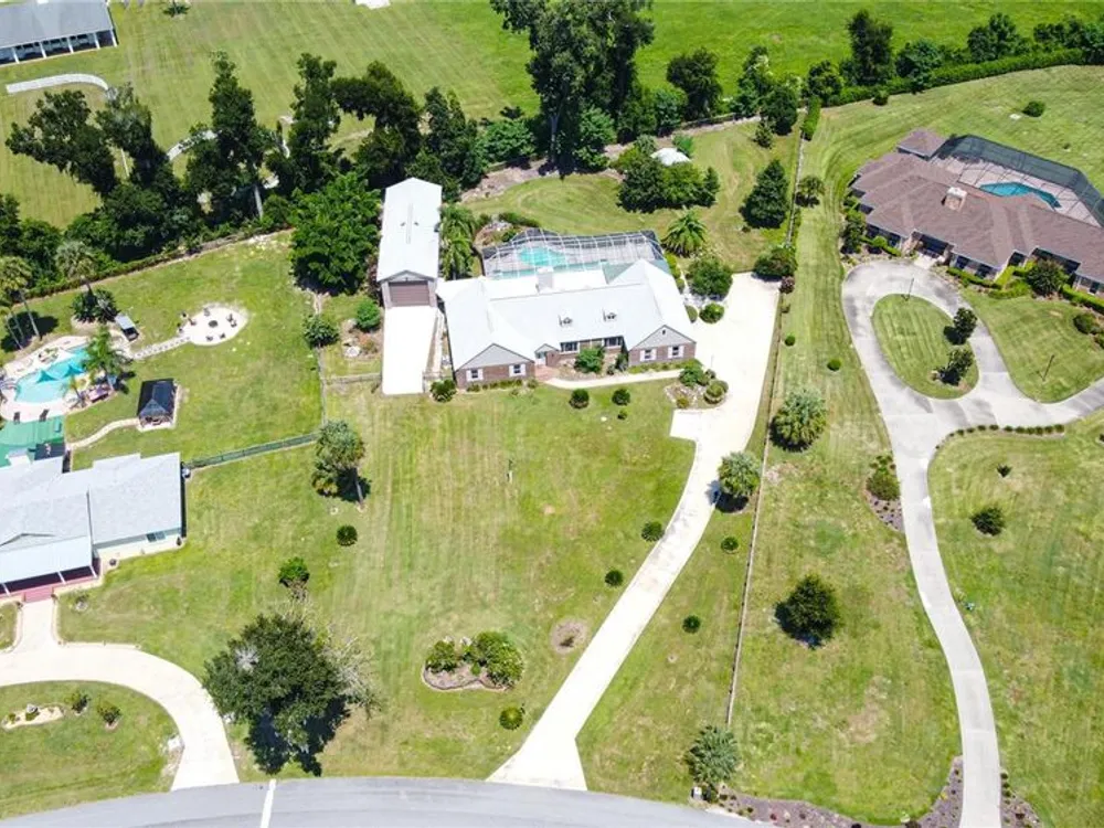 Beautiful large home on 1.26 acres which backs up to a horse farm. Subdivision - El Dorado - five minutes from Publix, Aldi and Walmart and 10 minutes away from 15 restaurants with close access to I-75 - 1.5 hours from both Tampa and Orlando Airports and 45 minutes from The Villages. GREAT LOCATION! Spacious 4 bedroom, 2.5 bath, 2 car garage home with large living room, freshly painted inside with new flooring and new countertops in kitchen and baths. Ready to be decorated by new owners. Very large covered and screened in Patio with two pools. Pool size 20x27 and lap pool 67x15. Huge RV Garage - 64x21. There are 3 hospitals withing 15 minutes of El Dorado. Community tennis court. Very peaceful, quiet, and safe community with 24/7 guards. New roof in 2024, new HVAC units in 2020.