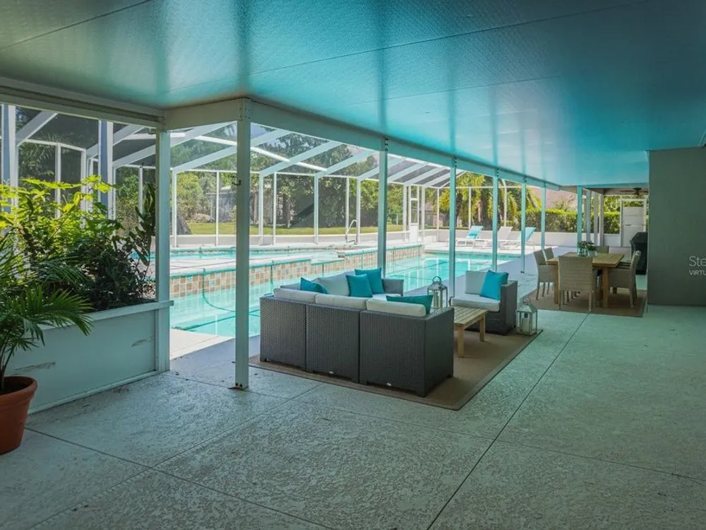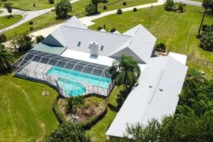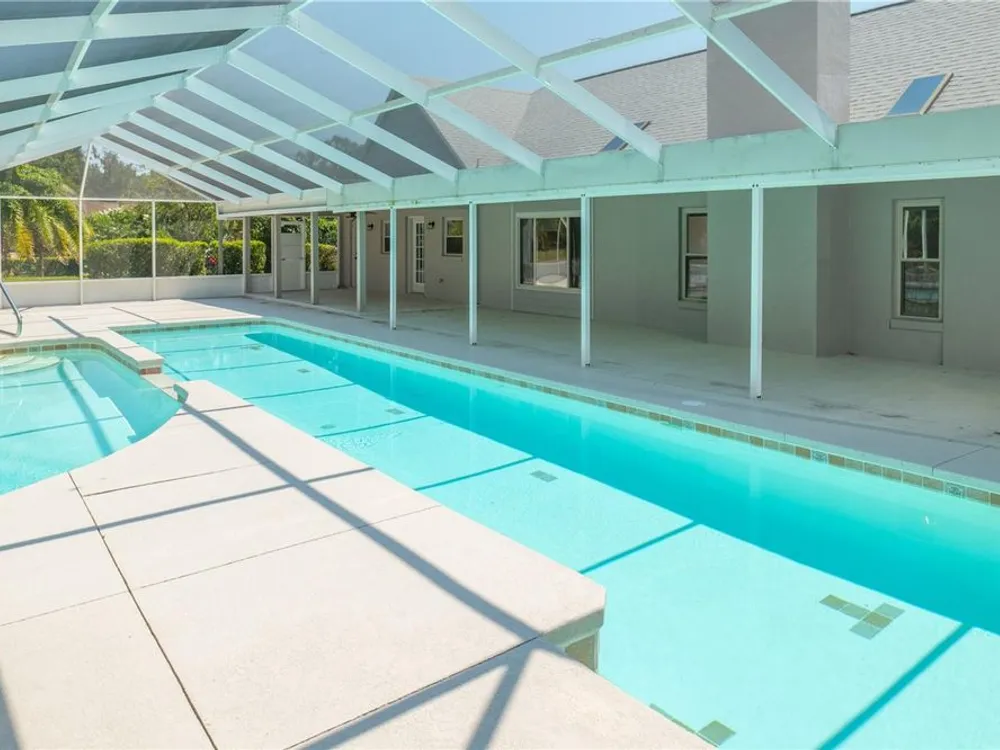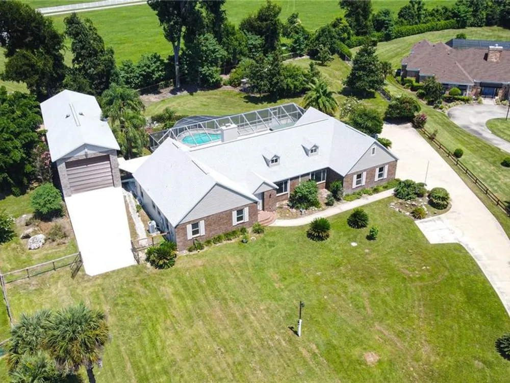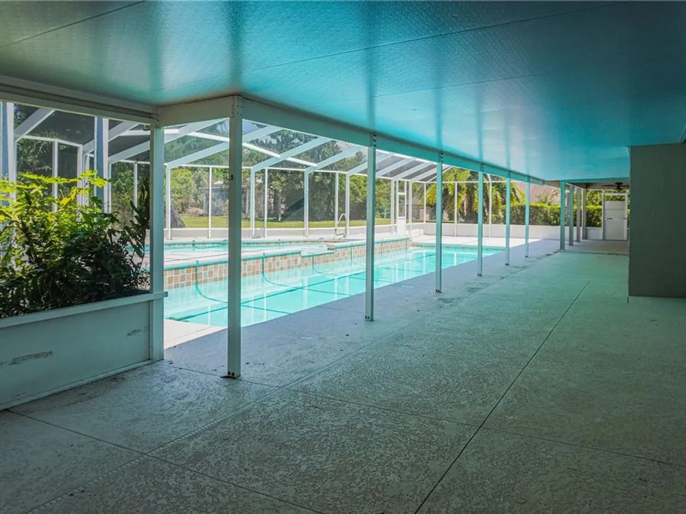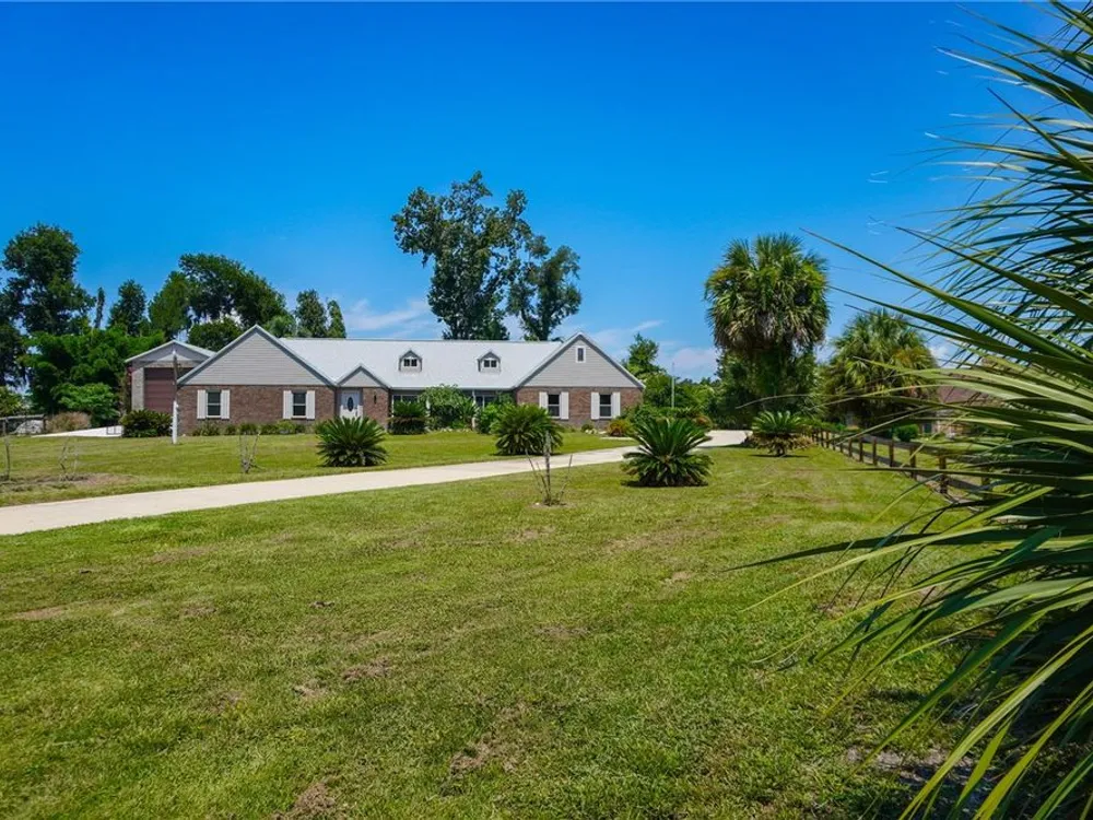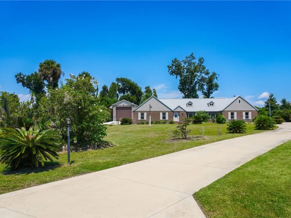 Beautiful large home on 1.26 acres which backs up to a horse farm. Subdivision - El Dorado - five minutes from Publix, Aldi and Walmart and 10 minutes away from 15 restaurants with close access to I-75 - 1.5 hours from both Tampa and Orlando Airports and 45 minutes from The Villages. GREAT LOCATION! Spacious 4 bedroom, 2.5 bath, 2 car garage home with large living room, freshly painted inside with new flooring and new countertops in kitchen and baths. Ready to be decorated by new owners. Very large covered and screened in Patio with two pools. Pool size 20x27 and lap pool 67x15. Huge RV Garage - 64x21. There are 3 hospitals withing 15 minutes of El Dorado. Community tennis court. Very peaceful, quiet, and safe community with 24/7 guards. New roof in 2024, new HVAC units in 2020.