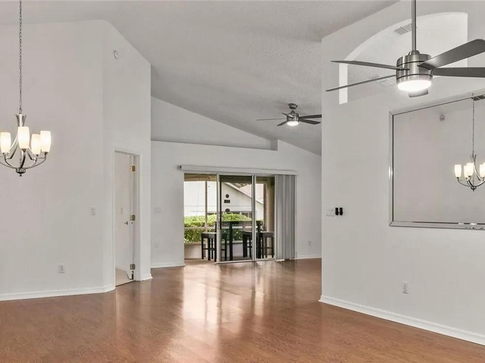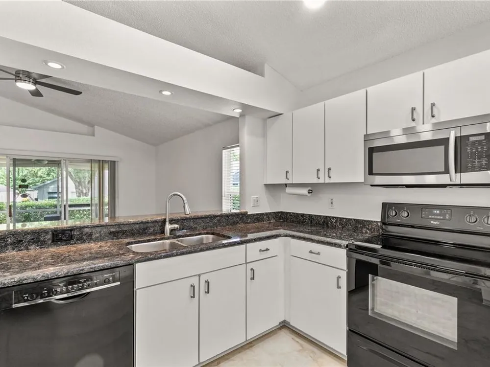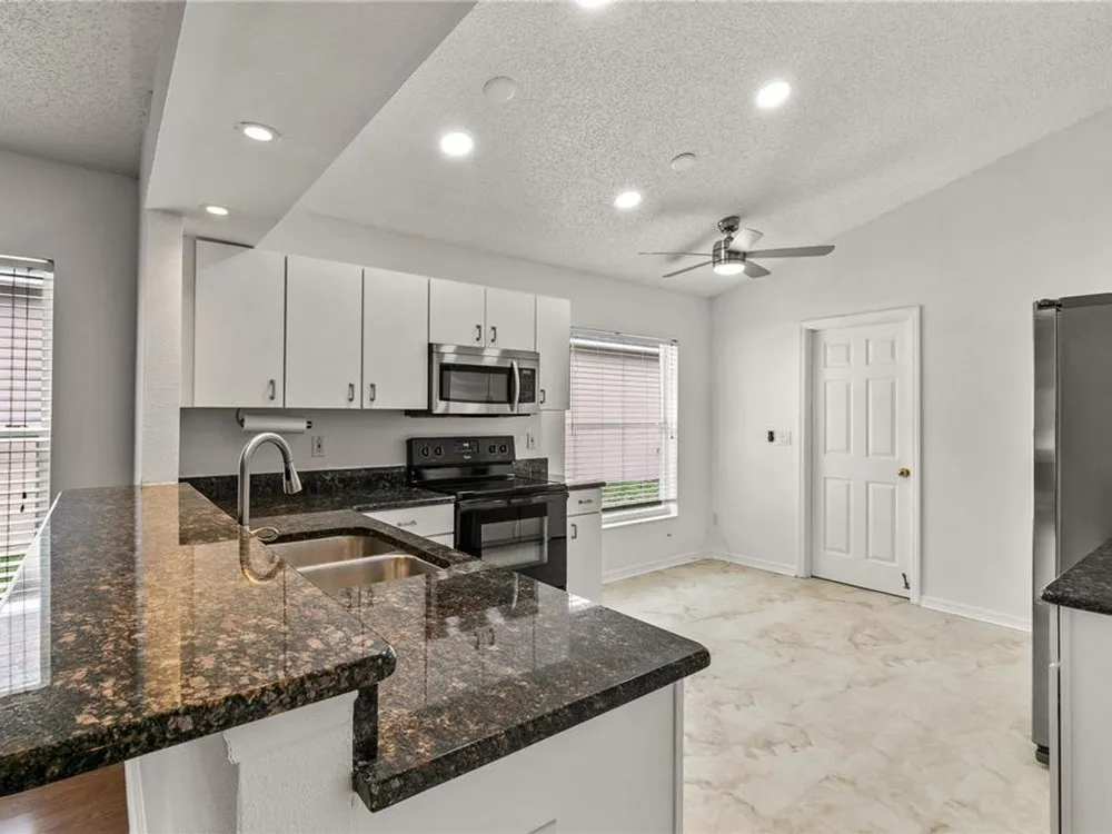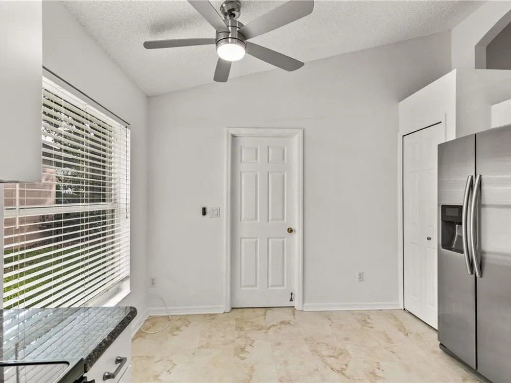- Cathedral Ceiling(s), Ceiling Fan(s), Eat-in Kitchen, High Ceilings, Living/Dining Room, Stone Counters, Thermostat, Walk-In Closet(s)