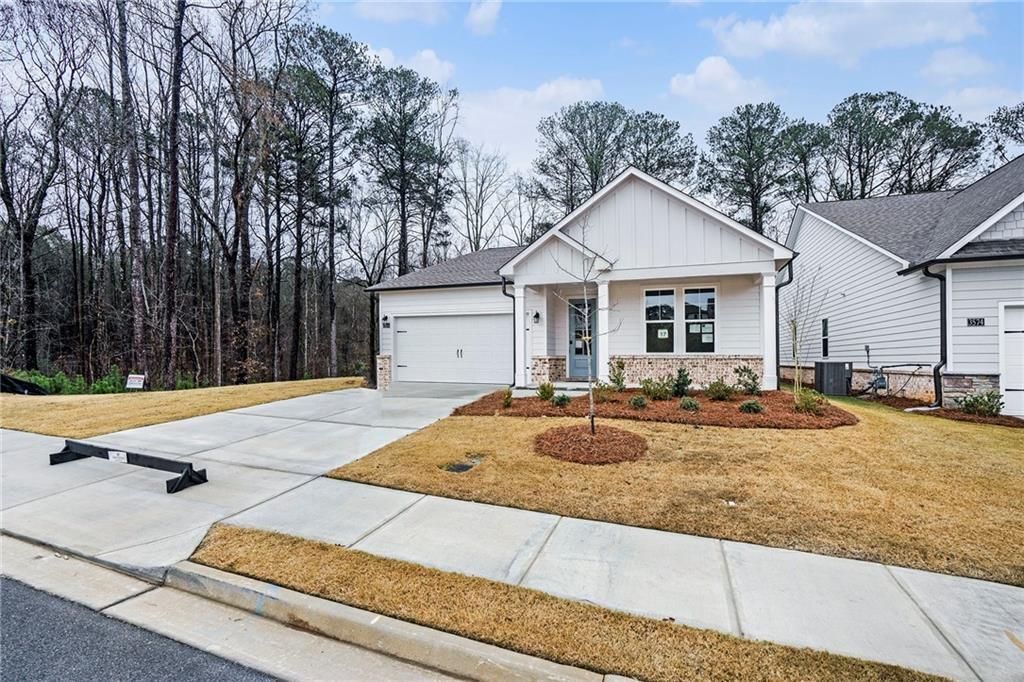 **ACTIVE ADULT 55+ COMMUNITY** Move-in-ready BRAND NEW CONSTRUCTION ranch! 4-bedroom, 3-bath Daphne B model. Enjoy plenty of natural lighting and luxury finishes with LVP throughout and upgraded modern lighting making the home feel modern yet cozy. The open kitchen features white cabinets, black hardware, a pot filler, quartz countertops, and ample pantry space. The oversized Primary Suite on it’s own side of the house includes a walk-in closet and spa-like bathroom with a zero-entry tiled shower with glass floor. Enjoy outdoor living with a brand new fenced backyard under your covered patio or covered front porch on one of the most private lots in the neighborhood. This quaint gated community offers amenities such as a pool, clubhouse, fire pit, nature reserve, and professional lawn care, and is also conveniently located near Piedmont Eastside Medical Center.