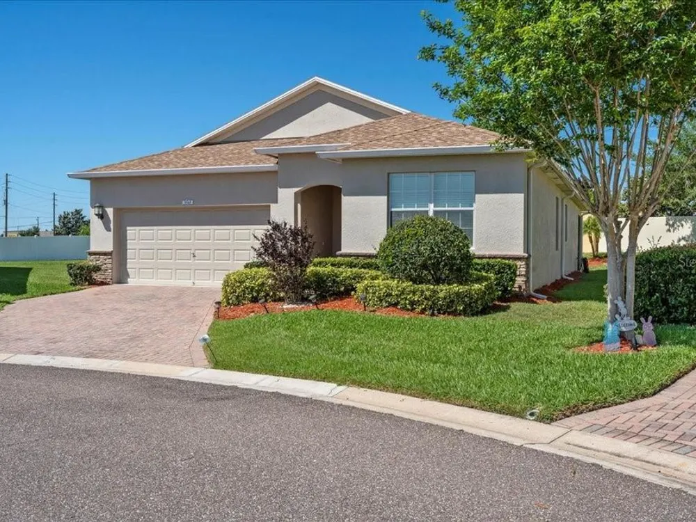 Welcome to this stunning Bonita-II home located in the highly desirable Traditions at Lake Ruby, a gated and maintenance-free 55+ community! From the moment you arrive, you’ll be greeted by a charming front entryway that leads into a spacious living room with soaring ceilings with crown molding. This 3-bedroom, 2-bathroom home sits on a premium lot with no rear neighbors, offering added privacy. Built in 2016, the home boasts over 1,800 sq. ft. of thoughtfully designed living space. The kitchen is a true highlight, featuring recessed lighting, 42" upper cabinets with pull-out drawers, beautiful stone countertops, stainless steel appliances, a breakfast bar, and a cozy sit-in dining area. Elegant tile flooring extends throughout the kitchen, dining room, hall bedroom, living room, bathrooms, foyer, and laundry room, while carpeting adds comfort to the front and master bedrooms. The oversized master suite includes sliding glass doors leading to the enclosed lanai, two walk-in closets, and a luxurious bathroom with dual vanities, granite countertops, a garden tub, and a tiled walk-in shower. The expansive 31' x 9' screened veranda is accessed through sliding glass doors in the living room, flooding the living room with natural light—perfect for an afternoon nap or enjoying your favorite book with a cup of coffee. Additional features include a 2020 roof, stone-accented exterior, paver driveway, irrigation system, gutters, and a 2-car garage with an overhead storage rack. The monthly HOA fee of $486 covers lawn care (including bush and tree trimming and mulch replacement), exterior painting (due to be painted in 2026 with owner’s choice of color), cable, and internet—offering exceptional value and convenience. Traditions at Lake Ruby offers an array of resort-style amenities, including a clubhouse, planned social activities, boat ramp and dock, heated outdoor pool and spa, ballroom, billiards room, meeting room, library, computer room, craft room, dog park, tennis and bocce ball courts, shuffleboard, a fitness center, and an aerobics studio. All of this is conveniently located near shopping, dining, medical facilities, hospitals, and Legoland!