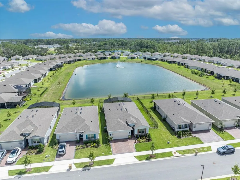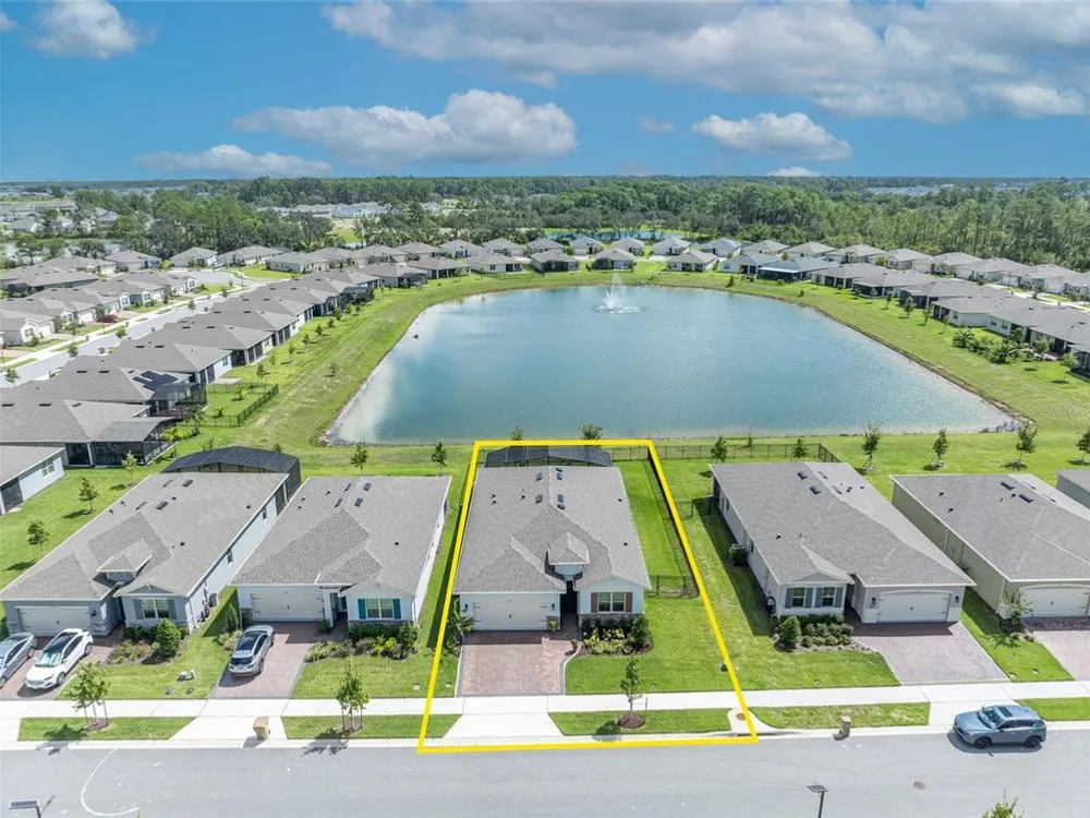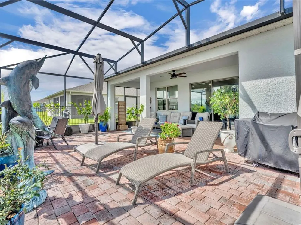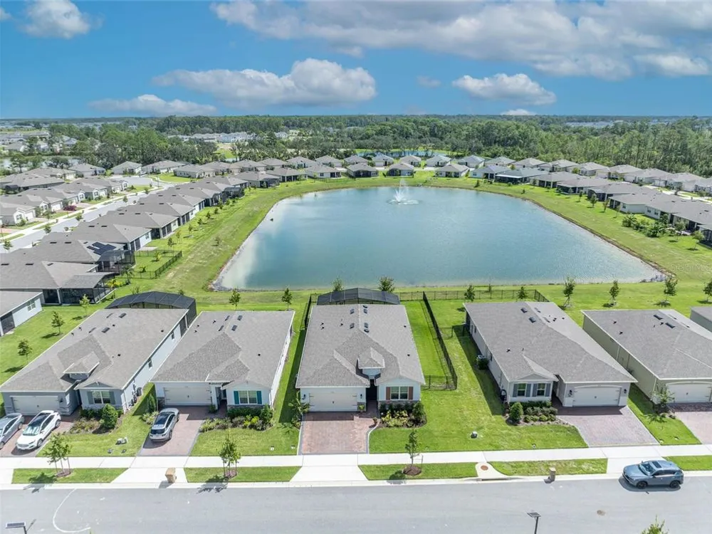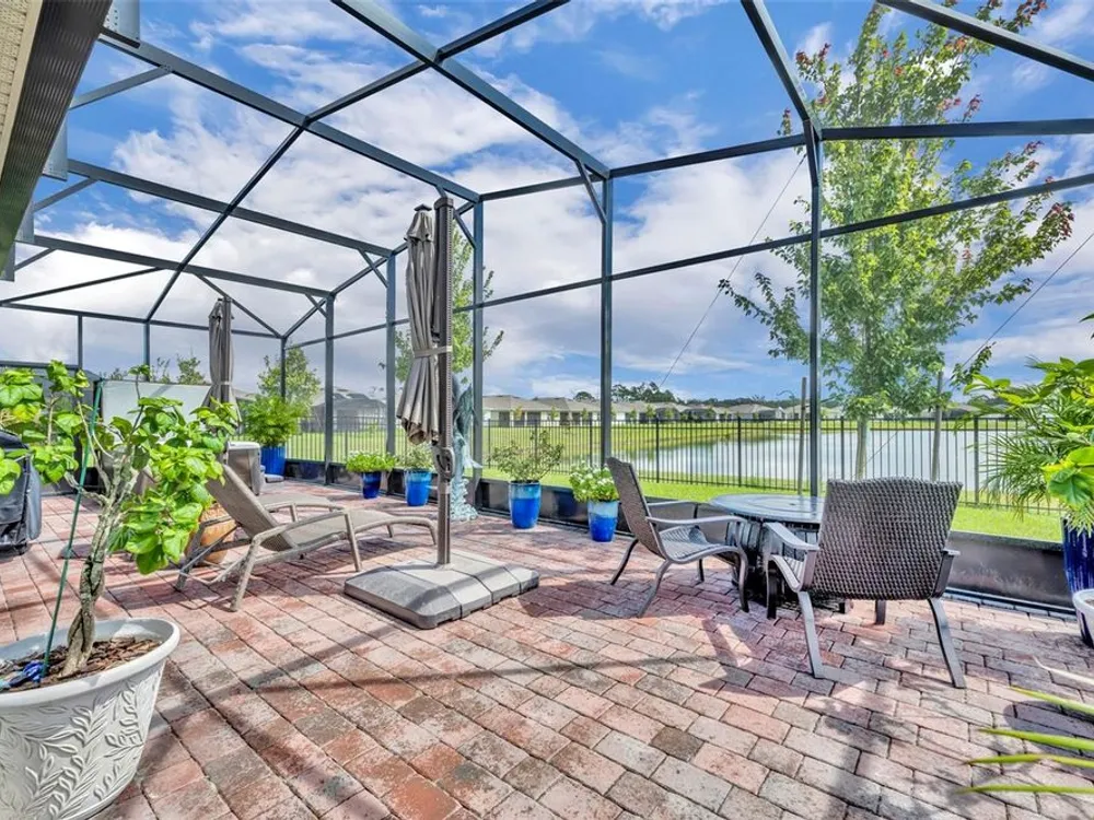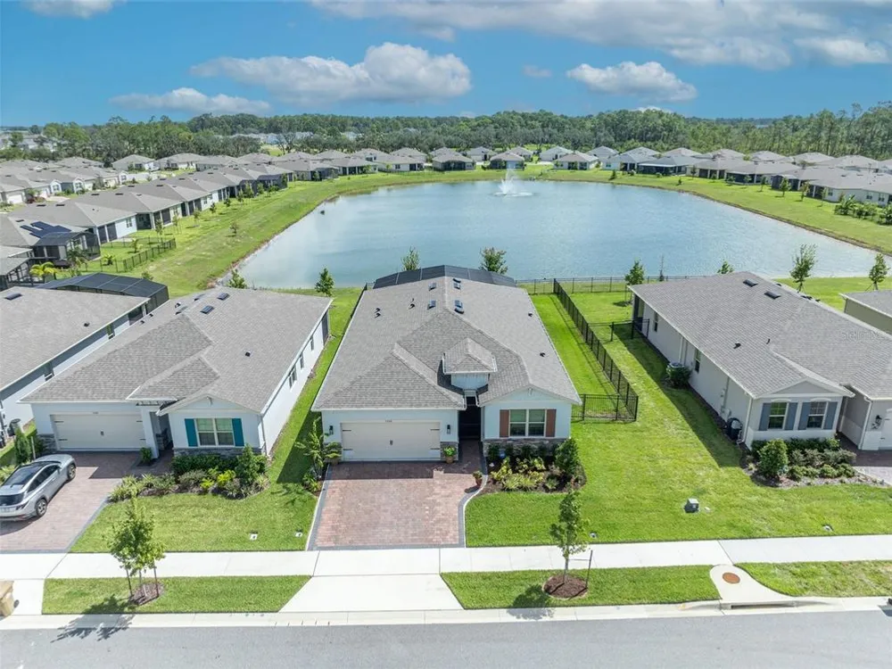 Located in the gated, golf cart friendly 55+ community of The Palms at Serenoa in Clermont, Florida! This exceptional 4-bedroom, 2-bathroom home was built in 2023 sits on a standout waterfront premier lot overlooking a peaceful pond and fountain. Designed for elegance and ease with an open floor plan for comfort and privacy. The home has been thoughtfully updated with the following features: -620 sq ft screened, extended paver lanai for outdoor living & entertaining while watching Disney fireworks- A grand kitchen island with quartz countertops, custom pantry shelving & thoughtful storage - A spacious laundry area with collapsible laundry drying system - Black aluminum fencing to secure the backyard without blocking your view - Security cameras for your safety in mind - Garage with epoxy floor, attic ventilation via solar, retractable attic stairs, and plywood sheeting for extra storage - Generator hook-up directly to the main panel - Whole-house surge protection - Extended paver driveway - So many additional upgrades by the seller (ask for the full list when you tour) The community has much to provide to entertain the social and active residents: Resort-style heated pool (including zero-entry & lap features) community patio with gas firepit area. Walking trails and 16+ acres of natural/open space. Courts & lawn areas for pickleball, bocce ball, and other active pursuits. Two dog parks & dog-friendly walking paths. Clubhouse with fitness center and activity rooms Pickleball and bocce ball courts Walking trails, open green space, and dog parks The community is close to shopping, dining, Lake Louisa State Park, and Downtown Clermont, with convenient access to Orlando attractions. The home is 17 miles from Disney World, 18 miles from Universal, 15 miles from Epcot and 28 mins from MCO Airport!