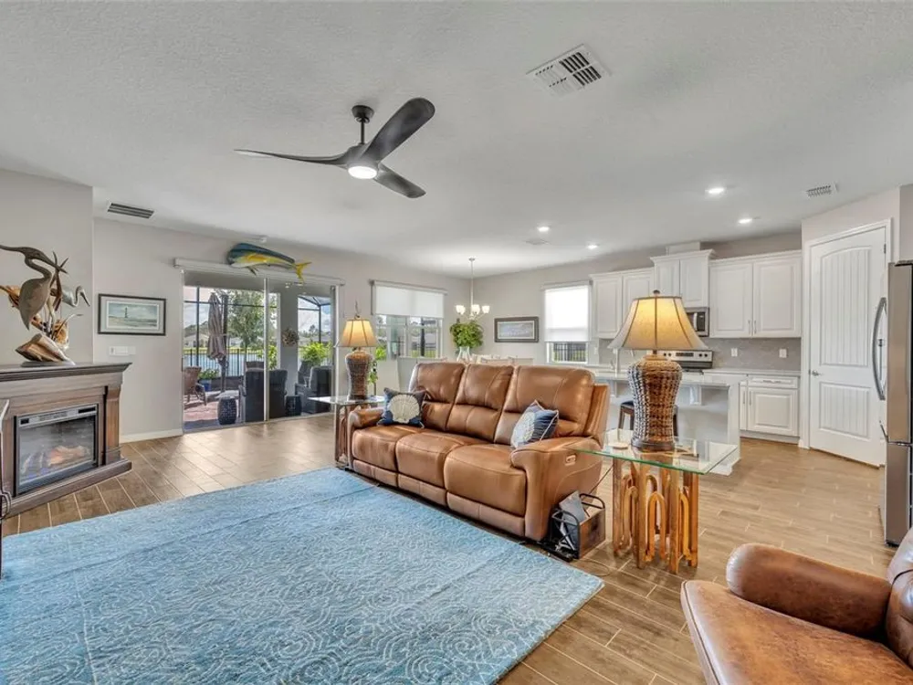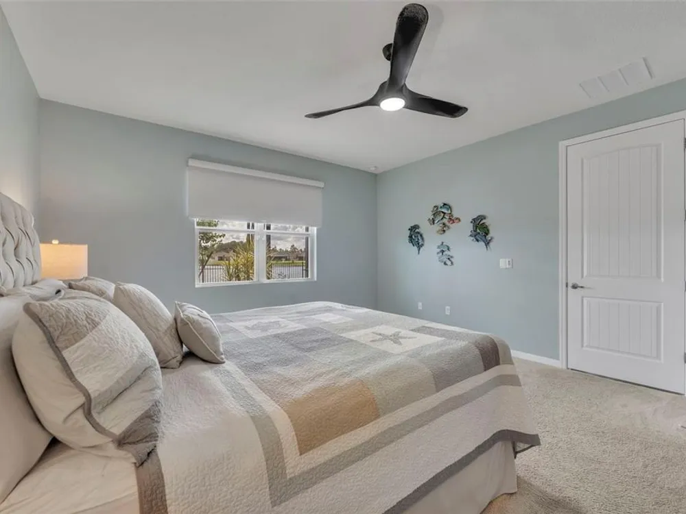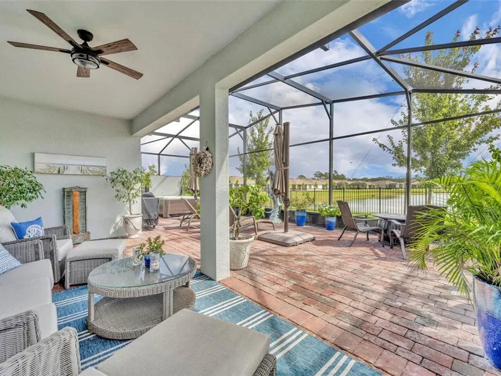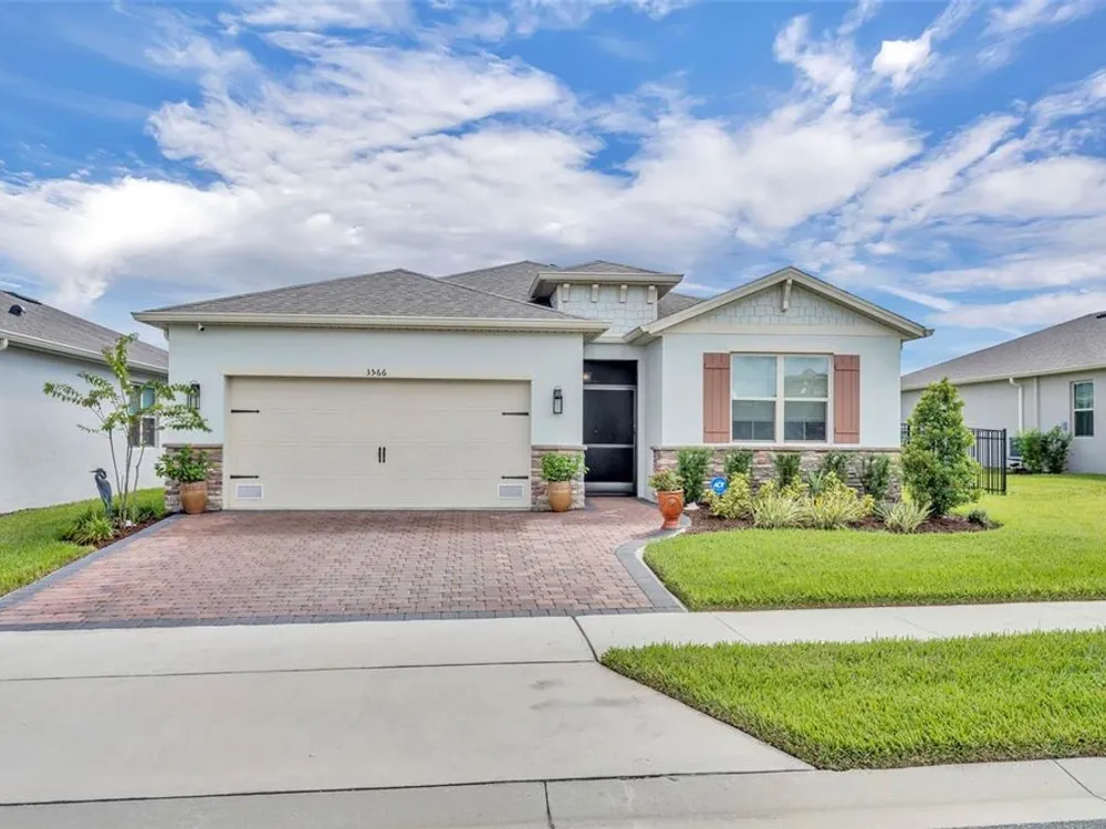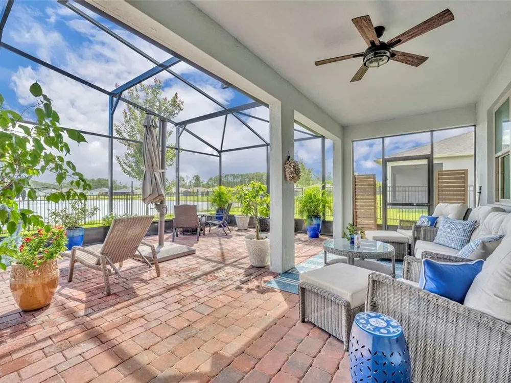 Located in the gated, golf cart friendly 55+ community of The Palms at Serenoa in Clermont, Florida! This exceptional 4-bedroom, 2-bathroom home was built in 2023 sits on a standout waterfront premier lot overlooking a peaceful pond and fountain. Designed for elegance and ease with an open floor plan for comfort and privacy. The home has been thoughtfully updated with the following features: -620 sq ft screened, extended paver lanai for outdoor living & entertaining while watching Disney fireworks- A grand kitchen island with quartz countertops, custom pantry shelving & thoughtful storage - A spacious laundry area with collapsible laundry drying system - Black aluminum fencing to secure the backyard without blocking your view - Security cameras for your safety in mind - Garage with epoxy floor, attic ventilation via solar, retractable attic stairs, and plywood sheeting for extra storage - Generator hook-up directly to the main panel - Whole-house surge protection - Extended paver driveway - So many additional upgrades by the seller (ask for the full list when you tour) The community has much to provide to entertain the social and active residents: Resort-style heated pool (including zero-entry & lap features) community patio with gas firepit area. Walking trails and 16+ acres of natural/open space. Courts & lawn areas for pickleball, bocce ball, and other active pursuits. Two dog parks & dog-friendly walking paths. Clubhouse with fitness center and activity rooms Pickleball and bocce ball courts Walking trails, open green space, and dog parks The community is close to shopping, dining, Lake Louisa State Park, and Downtown Clermont, with convenient access to Orlando attractions. The home is 17 miles from Disney World, 18 miles from Universal, 15 miles from Epcot and 28 mins from MCO Airport!