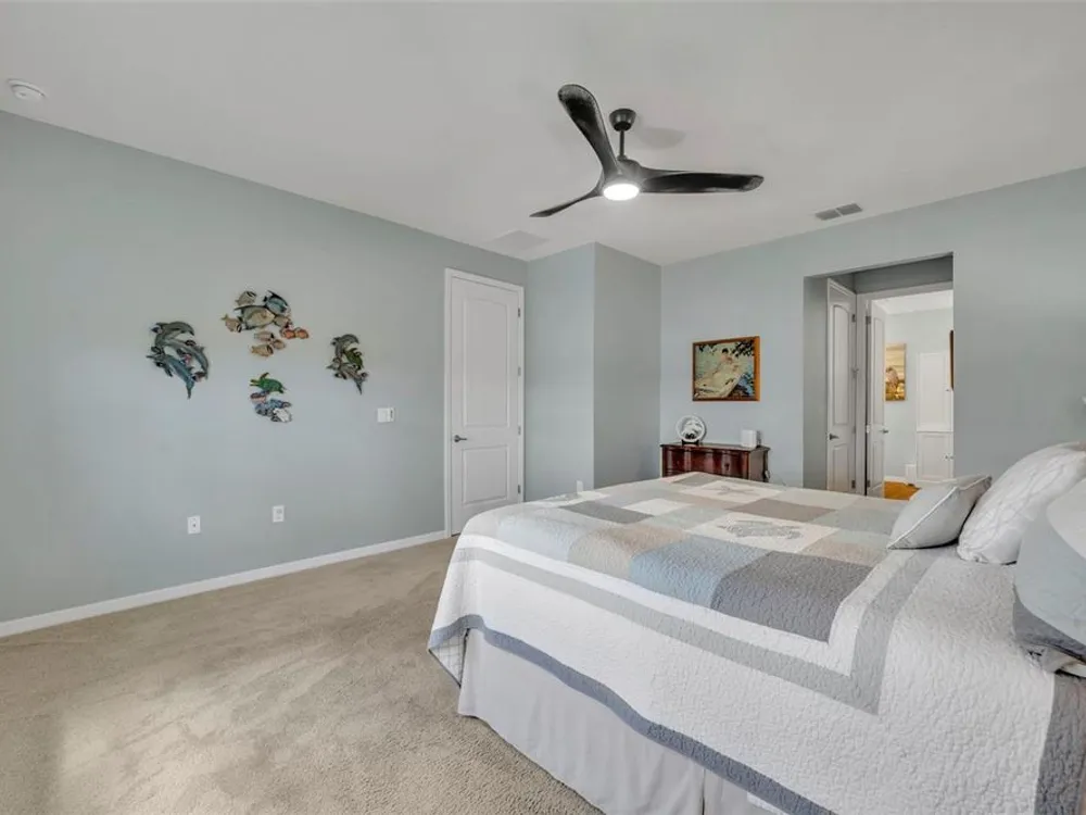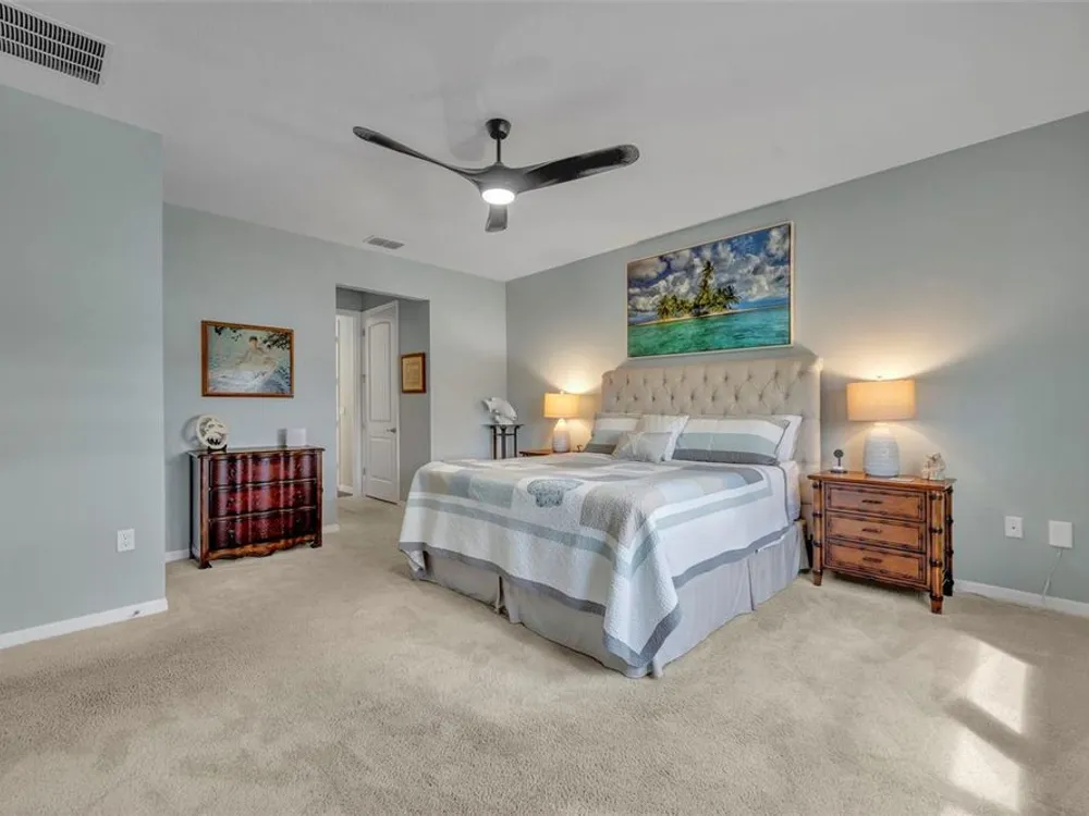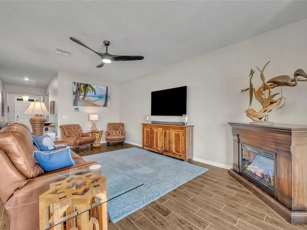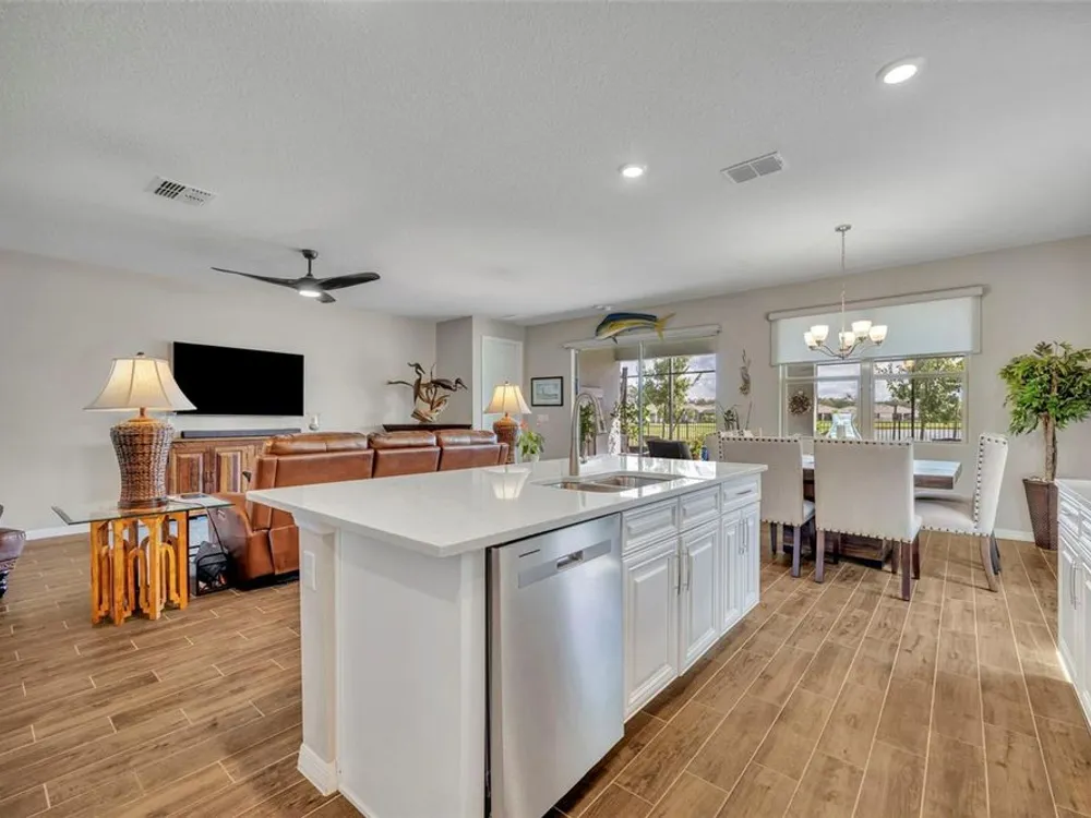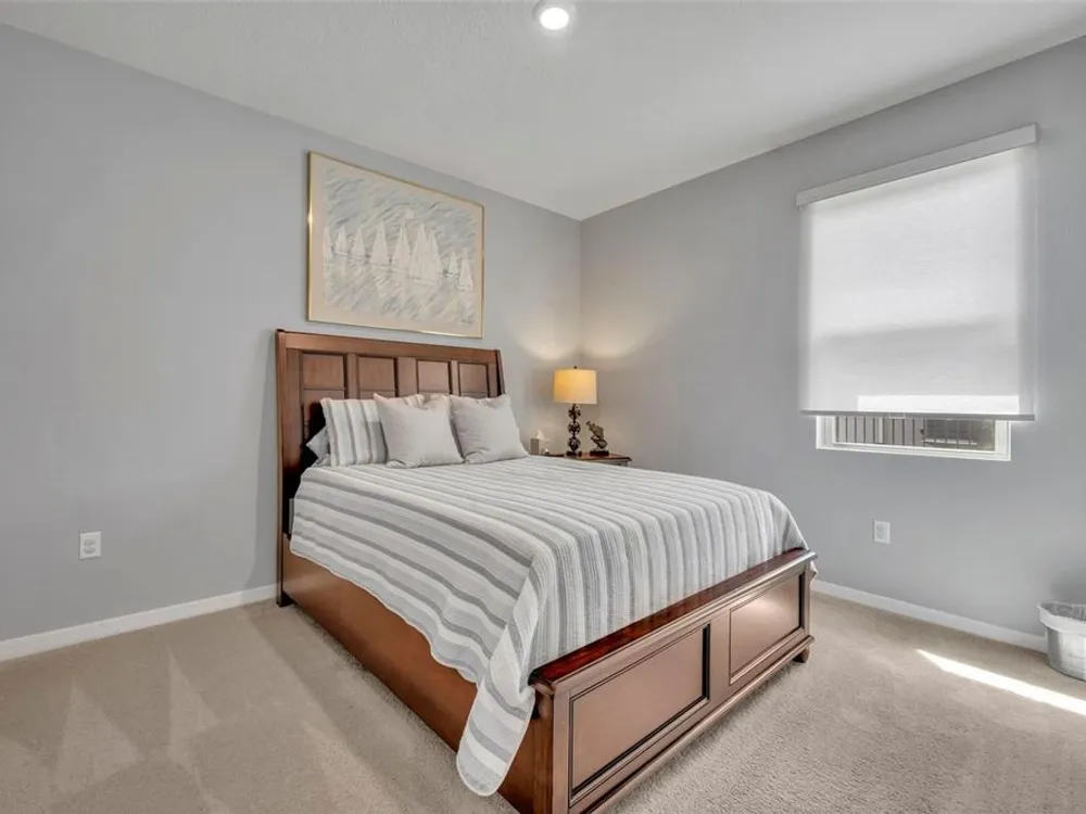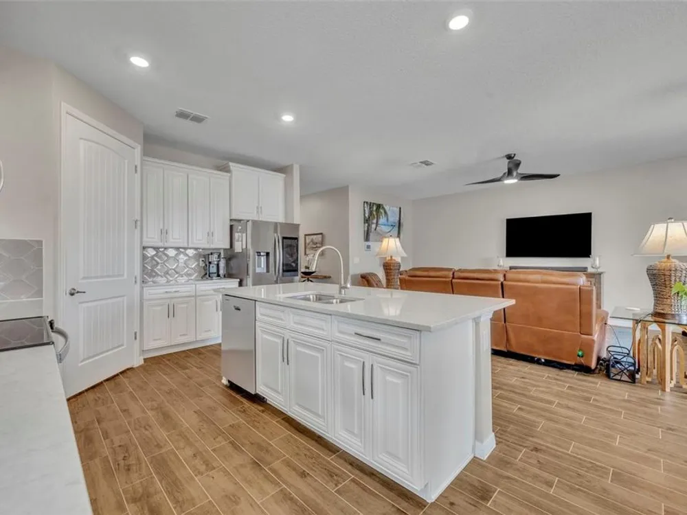 Located in the gated, golf cart friendly 55+ community of The Palms at Serenoa in Clermont, Florida! This exceptional 4-bedroom, 2-bathroom home was built in 2023 sits on a standout waterfront premier lot overlooking a peaceful pond and fountain. Designed for elegance and ease with an open floor plan for comfort and privacy. The home has been thoughtfully updated with the following features: -620 sq ft screened, extended paver lanai for outdoor living & entertaining while watching Disney fireworks- A grand kitchen island with quartz countertops, custom pantry shelving & thoughtful storage - A spacious laundry area with collapsible laundry drying system - Black aluminum fencing to secure the backyard without blocking your view - Security cameras for your safety in mind - Garage with epoxy floor, attic ventilation via solar, retractable attic stairs, and plywood sheeting for extra storage - Generator hook-up directly to the main panel - Whole-house surge protection - Extended paver driveway - So many additional upgrades by the seller (ask for the full list when you tour) The community has much to provide to entertain the social and active residents: Resort-style heated pool (including zero-entry & lap features) community patio with gas firepit area. Walking trails and 16+ acres of natural/open space. Courts & lawn areas for pickleball, bocce ball, and other active pursuits. Two dog parks & dog-friendly walking paths. Clubhouse with fitness center and activity rooms Pickleball and bocce ball courts Walking trails, open green space, and dog parks The community is close to shopping, dining, Lake Louisa State Park, and Downtown Clermont, with convenient access to Orlando attractions. The home is 17 miles from Disney World, 18 miles from Universal, 15 miles from Epcot and 28 mins from MCO Airport!