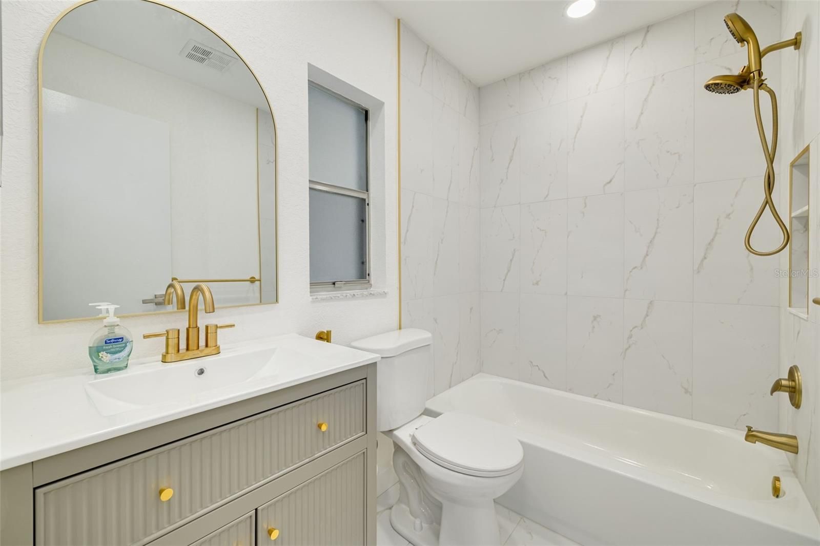 - Ceiling Fan(s), Kitchen/Family Room Combo, Living/Dining Room, Main Level Primary, Solid Surface Counters, Thermostat