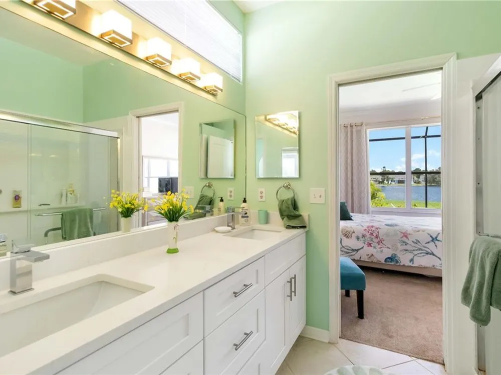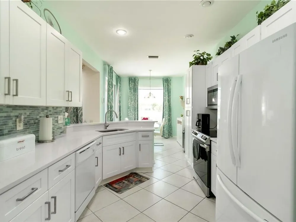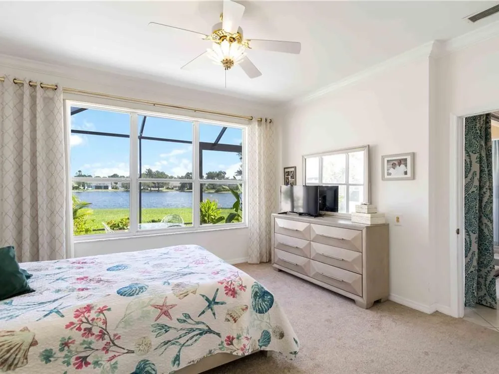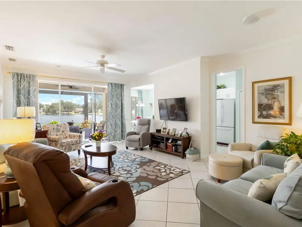 Escape to perfection in Fairway Village! This stunning 3-bedroom, 2-bathroom home is a true gem, meticulously crafted by Pulte. Step into an inviting open floor plan with a brilliant flow of natural light, showcasing a beautifully updated kitchen with quartz countertops, solid wood cabinets and completely updated bathrooms. Elegant ceramic tile and new carpeting throughout. Privacy is paramount with French doors and pocket doors creating a secluded guest wing. Enjoy the tranquil serenity of beautiful lake views from three separate rooms, or relax on the expansive, oversized lanai. Located on a quiet cul-de-sac, this home is an oasis of calm. This property is packed with value, including a 2-car garage, city water and sewer, a sprinkler system, and an oversized homesite. This is more than a home; it’s a lifestyle upgrade. Come see why this property offers the most value for your money!