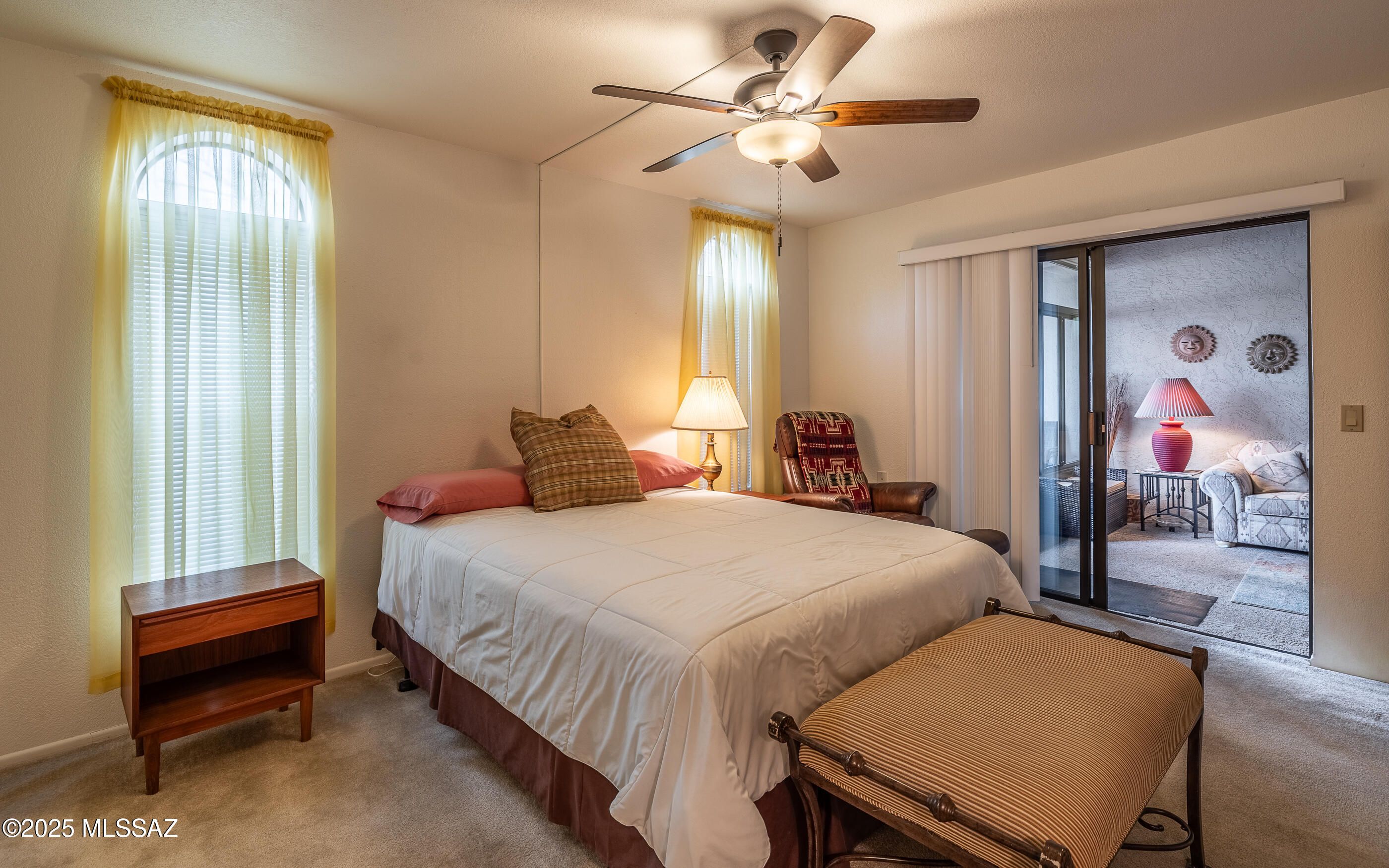 Beautiful, well maintained TH, in a 55+ community, Enter thru the gated courtyard with lush greenery. The home is tastefully decorated in a southwest theme, giving both a warm and welcoming feeling. The AZ room is perfect for your morning coffee, with great views of the Santa Rita Mts, or later in the day to view the colorful AZ sunsets. This home is a must see, with a 2 car garage and storage. All furnishings convey with the home on a separate bill of sale.