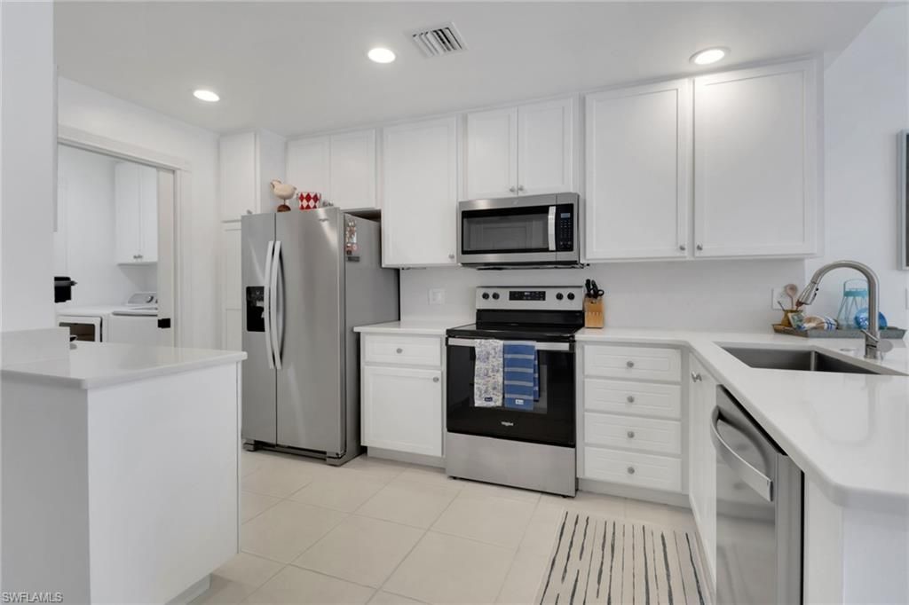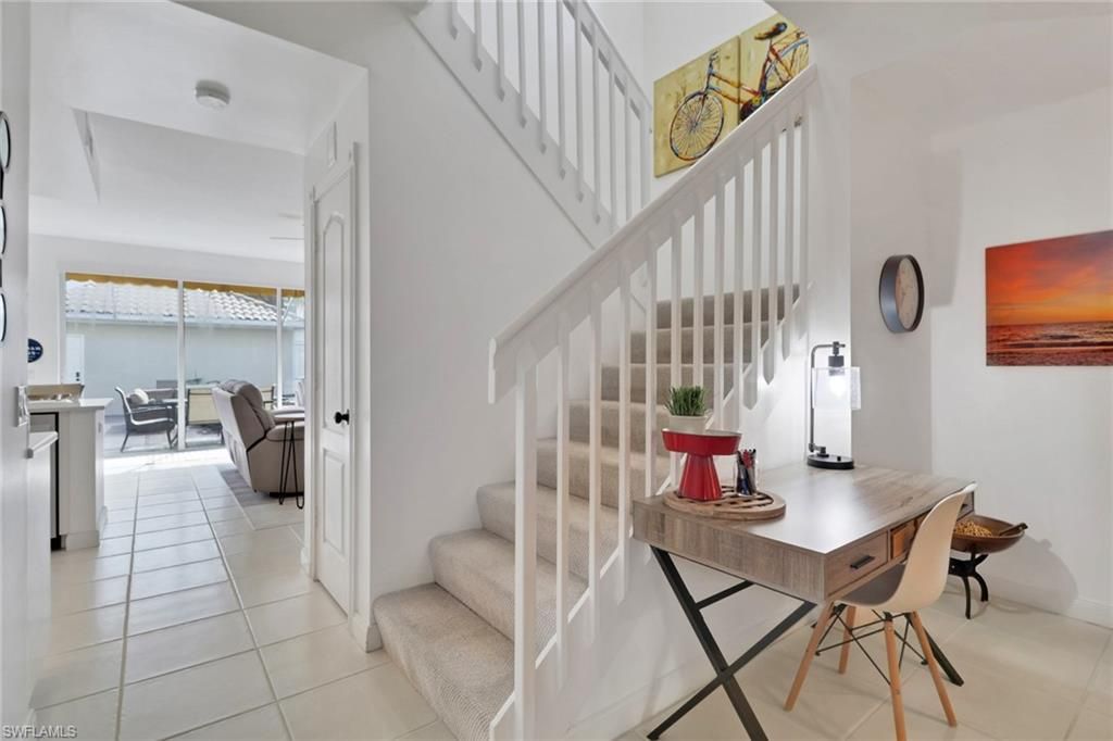 Welcome to one of the most sought-after streets in Island Walk! This beautifully updated townhome offers a rare combination of space, privacy, and water views. The inviting screened front porch and glass entry door set the tone, leading into a bright living space filled with natural light.From 2022–2024, the home underwent a thoughtful multi-phased renovation that elevated every detail. The kitchen and all bathrooms received new cabinetry, countertops with undermount sinks, premium fixtures, and new appliances—including a fully renovated owner’s bath with custom glass shower and dual vanities. Plantation shutters, new fans and lighting, a premium washer/dryer (2022), and a murphy bed add both style and function. Peace of mind comes with accordion hurricane shutters, a newer A/C, and central vac.Outdoor living is at its best here with a massive private screened lanai, enhanced by a retractable awning for year-round comfort. The two-car garage offers a private rear entry and includes a Level 2 charger for EV convenience.Island Walk is one of Naples’ most vibrant communities, offering resort-style amenities with low HOA fees. Residents enjoy scenic walking paths and European bridges, resort and lap pools, 8 lighted Har-Tru tennis courts, pickleball, bocce, putting green, clubhouse with fitness center, and 24-hour security. Everyday conveniences are just outside your door, including a restaurant, post office, beauty and nail salons, car wash, gas station, and management office.This is a rare opportunity to own a fully renovated home in one of Naples’ most desirable communities—schedule your private showing today!