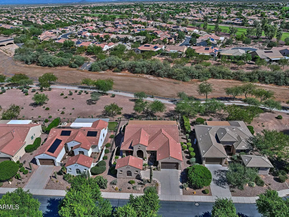 This Highly desirable PREMIER SERIES ''PARAMOUNT'' model of Sun City Anthem at Merrill Ranch has everything you are looking for and more! This beautiful home is perched on a large PREMIUM LOT that offers a vast and very private wash just steps off your extended travertine patio and a lush greenbelt across from your private travertine courtyard. An incredible amount of upgrades, options and details are offered with this gorgeous home and include Armstrong hickory wood flooring, upgraded tile, maple kitchen cabinets w/crown molding, roll-out trays, granite counters, stainless appliances, double oven, extra recessed lights and pendant lighting. The home offers an open floor plan concept with an abundance of extras and as a BONUS the Town of Florence Assessment Bond is PAID IN FULL!!...