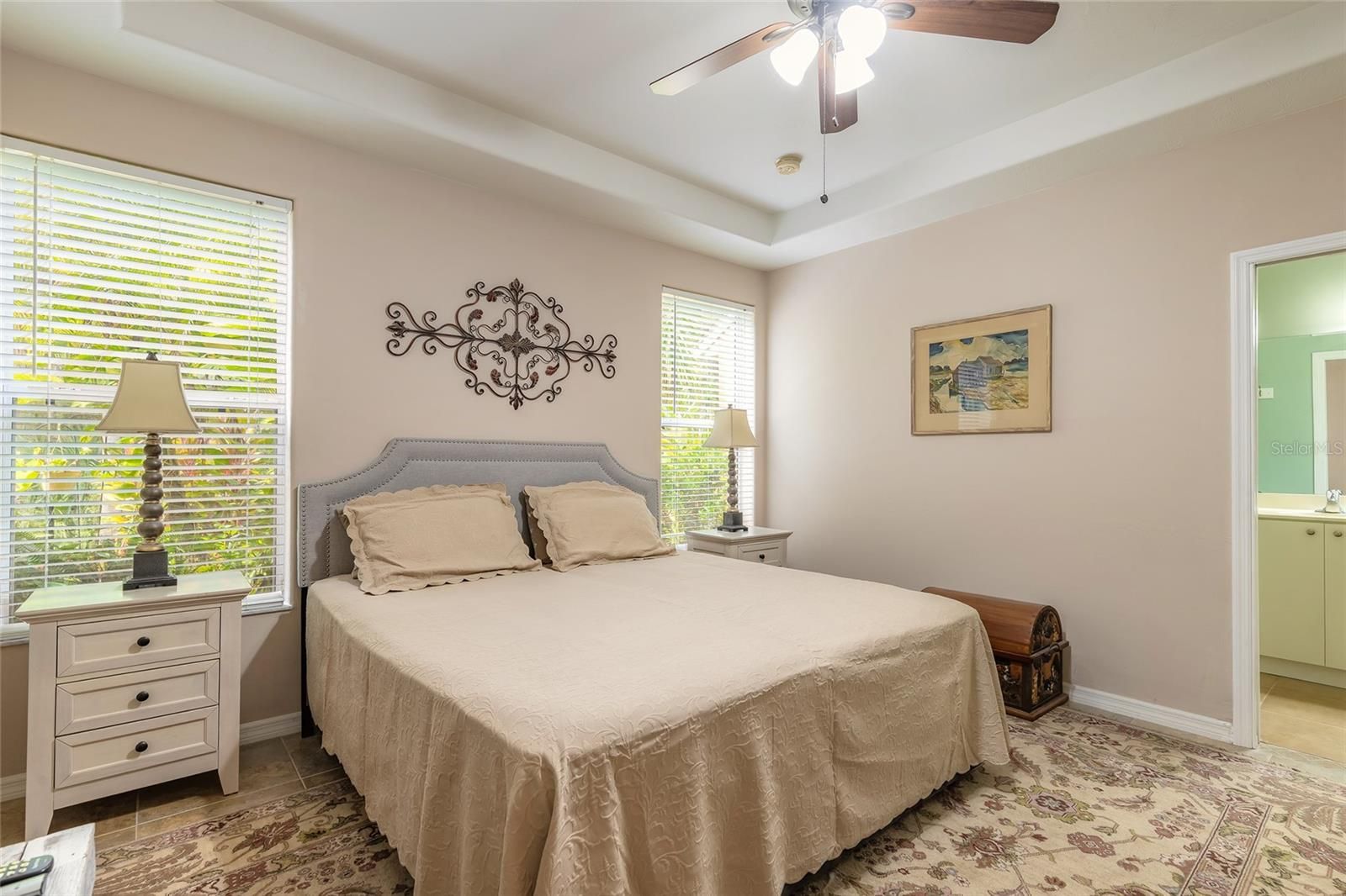 - Ceiling Fan(s), High Ceilings, Split Bedrooms, Stone Counters, Thermostat