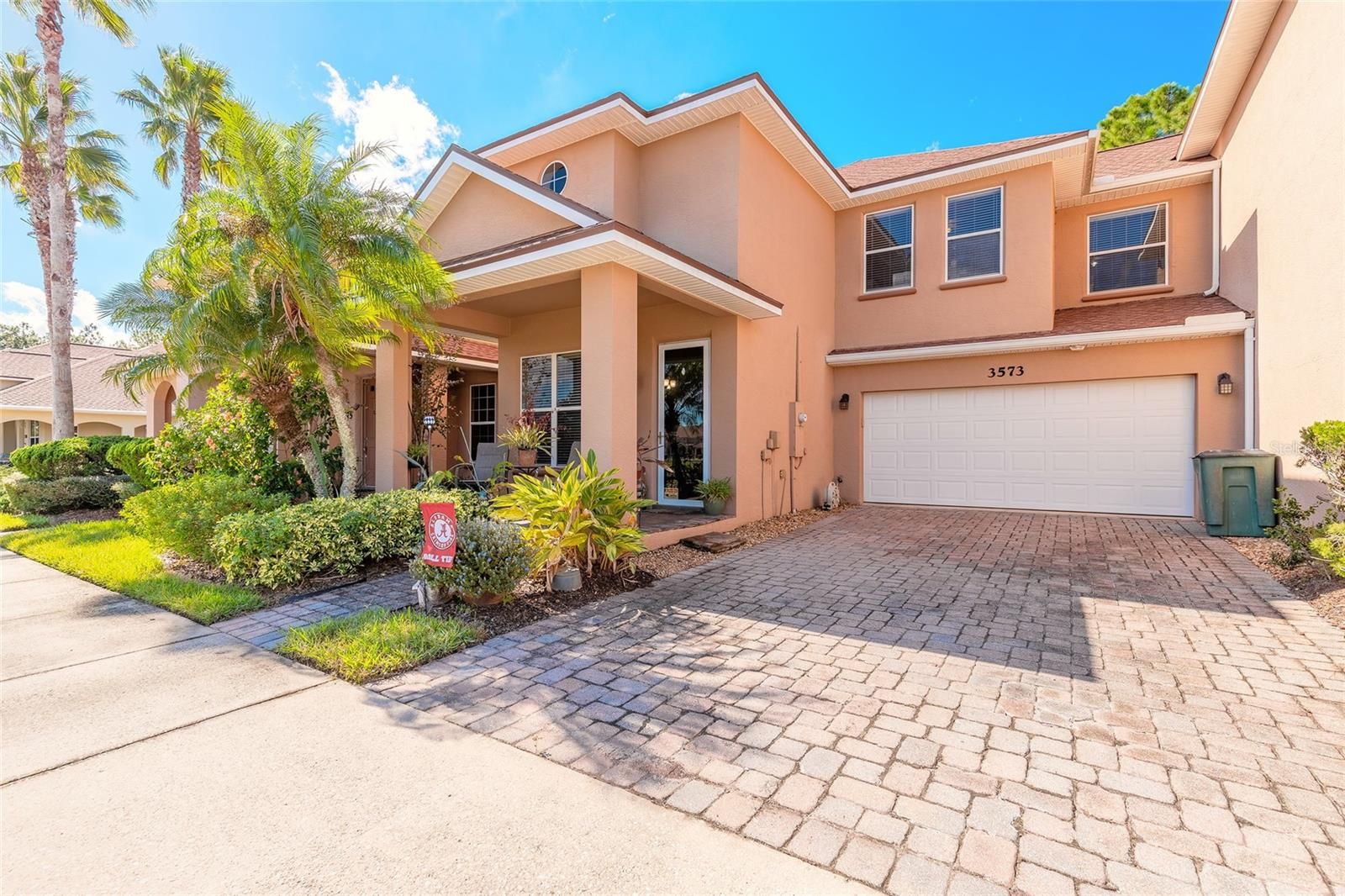 Nestled on one of the most desirable lots in the Parkside Townhome Community, this beautifully maintained residence offers serene lake views from the front and peaceful preserve views from the back, providing a sense of privacy rarely found in townhome living. Tucked away on a quiet, low-traffic street, 3573 Romea Circle is truly move-in ready and perfectly located near Venetian Bay Town Center, where you’ll enjoy restaurants, shopping, and the beautiful beaches of New Smyrna Beach just minutes away. The spacious two-story layout features the primary suite conveniently situated on the first floor, complete with an ensuite bath. The main level also includes tile flooring throughout, a large dining area, two inviting living spaces, a convenient half bath, laundry room with cabinetry, and a two-car garage. The stunning updated kitchen will delight any culinary enthusiast with quartz countertops, abundant cabinet space, high-end 2021 dark slate appliances, refreshed cabinetry, a generous pantry, and a built-in wine bar. The open-concept design flows seamlessly into the den, where large sliding doors lead to a screened lanai with an extra bonus of an extended paver patio for overlooking the tranquil preserve. Upstairs, you’ll find two additional bedrooms and a full bath, perfect for family or guests. Wood blinds throughout add a touch of sophistication, while the top-of-the-line, whisper-quiet TEMPSTAR AC system (installed 2020) and brand-new roof (2025) ensure lasting comfort and peace of mind. Residents of Parkside enjoy access to a private, heated year-round community pool, as well as the amenities of Venetian Bay—an 18-hole golf course and country club, pickleball and tennis courts, 17 miles of walking and biking trails, and a vibrant town center featuring a spa, salon, coffee shop, Italian bistro, fitness center, and more. With all landscaping, irrigation, exterior painting, and roof maintenance included in the HOA, you’ll have more time to enjoy the lifestyle you deserve. Schedule your private showing today—this exceptional home won’t last long! All information is intended to be accurate, however not guaranteed.