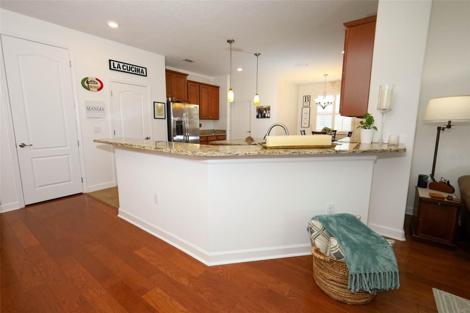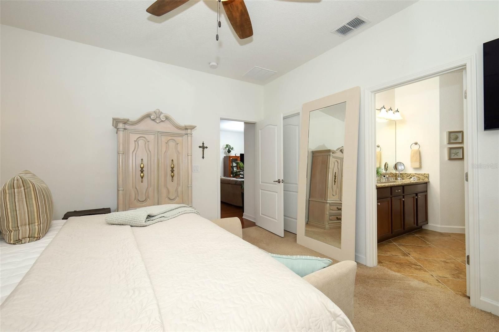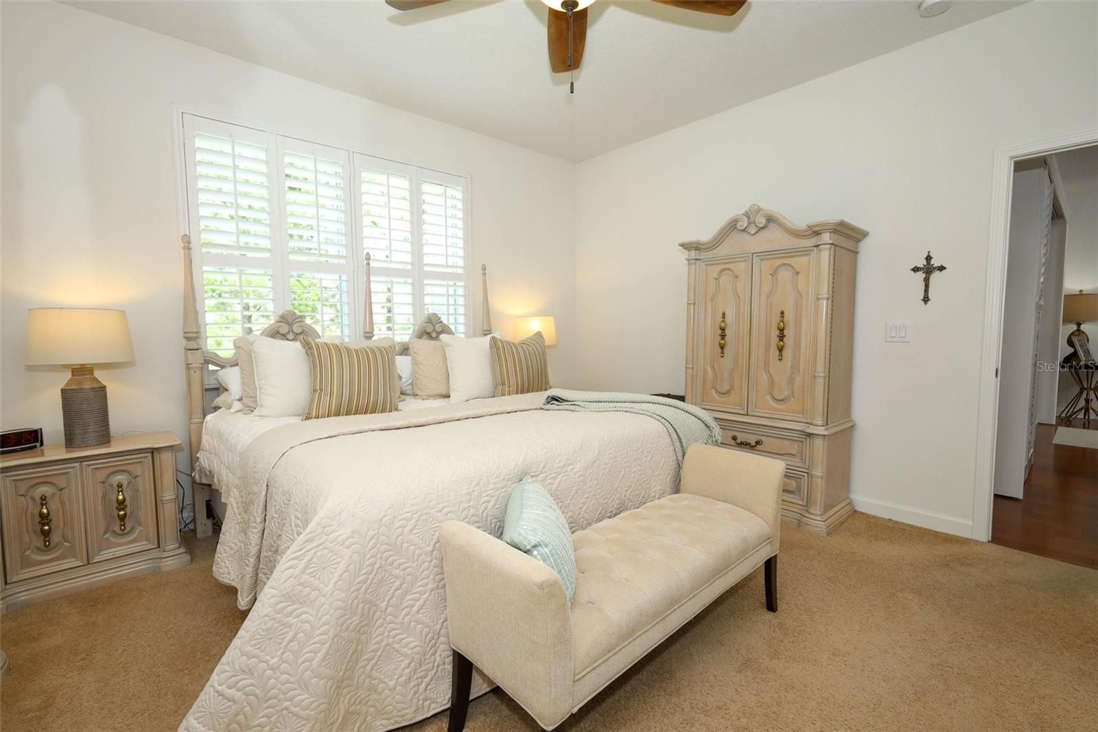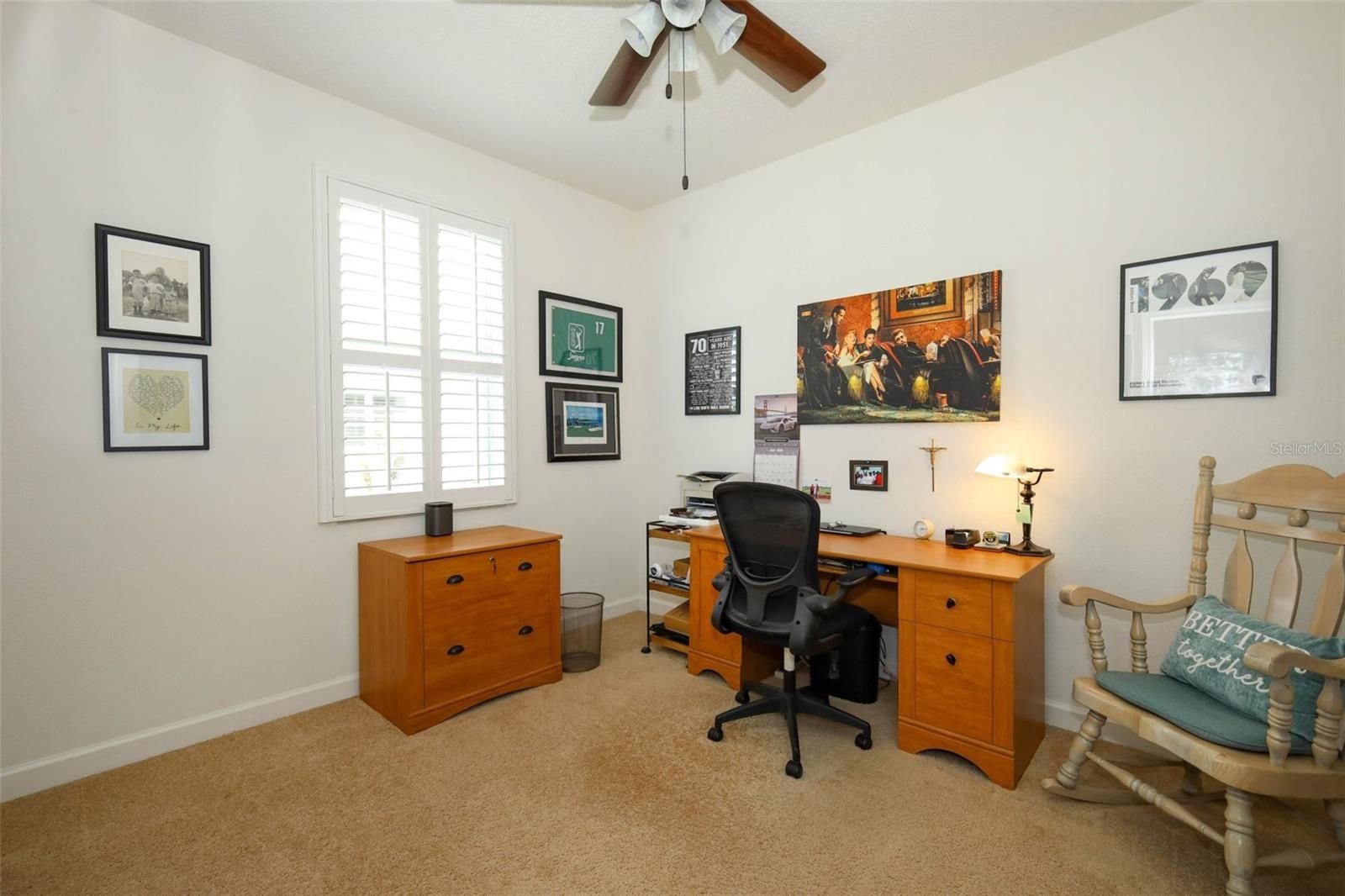 Welcome to this immaculate, well-cared for home nestled in sought after Heritage Hills--a popular 55+community in Clermont! This FRESHLY PAINTED 4bedroom, 3 full bath home features SOLID WOOD FLOORING in all main areas, TILE in west areas, CARPETED bedrooms, PLANTATION SHUTTERS THROUGHOUT, 2-yr old A/C.. It is a 3-way split whereby the front bedroom has it's own bathroom, spacious primary bedroom features large walk organized closet, spacious bathroom with dual sinks, bathtub & standup shower spacious. Home is ideal for entertaining featuring large island, lots of 42" SOLID WOOD CABINETS, SS APPLIANCES, GRANITE COUNTER TOPS, breakfast & eat-in area. The Great room overlooks the EXTENDED SCREENED LANAI with NO REAR NEEIGHBORS. Spacious 3-car attached garage provides ample room for golf car, 2 cars and storage is a bonus! The community's 5-mile walking trail is out your door! The yard is maintained by the HOA. Heritage Hills is a guard-gated, resort style community with amenities that include a heated pool and spa, pickle ball, tennis, basketball, bocce ball, shuffleboard, clubhouse with planned activities & clubs to join, fitness center, art & crafts room, billiard room, card room and space for private events. Exterior of your home is painted every 5-6 years by HOA. Ideal location as you are a very short distance to all amenities--shopping, golf, lively & growing downtown Clermont, the Clermont Chain of Lakes for boating & swimming, Winter Garden & main roads to take you to MCO, Tampa, Cape Canaveral, the beaches and themes parks. MOTIVATED SELLER. Seller will contribute to buyer's closing costs.