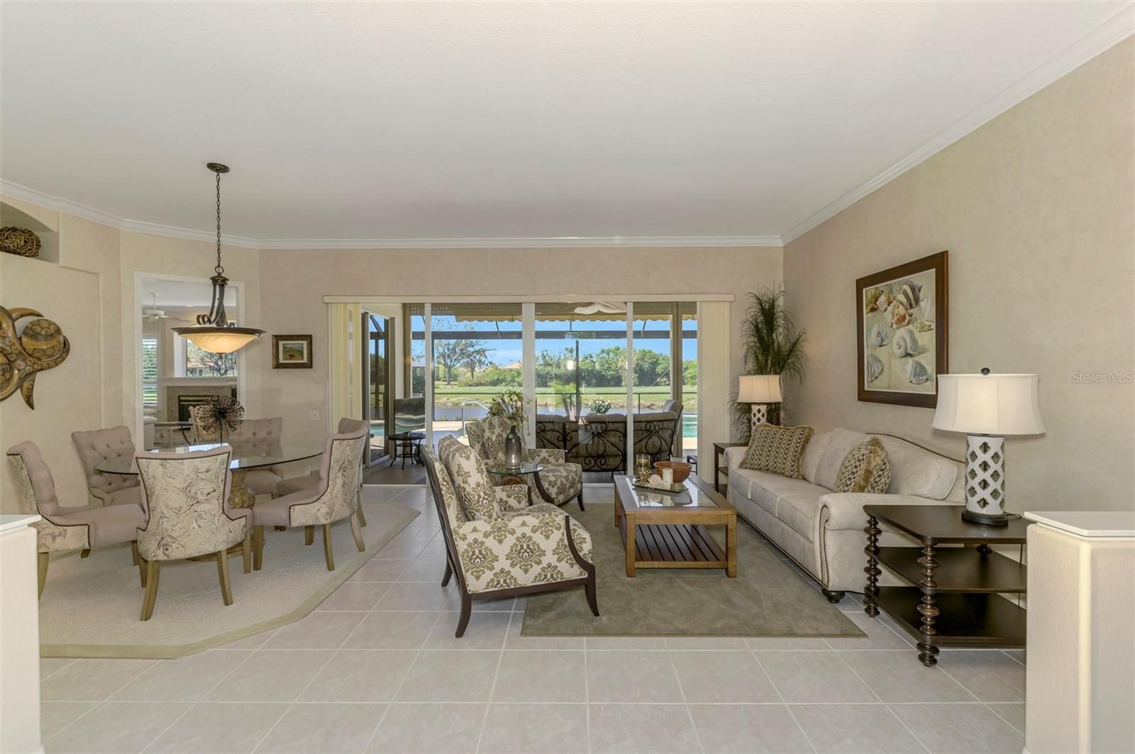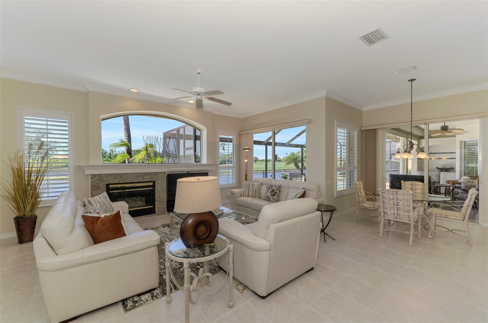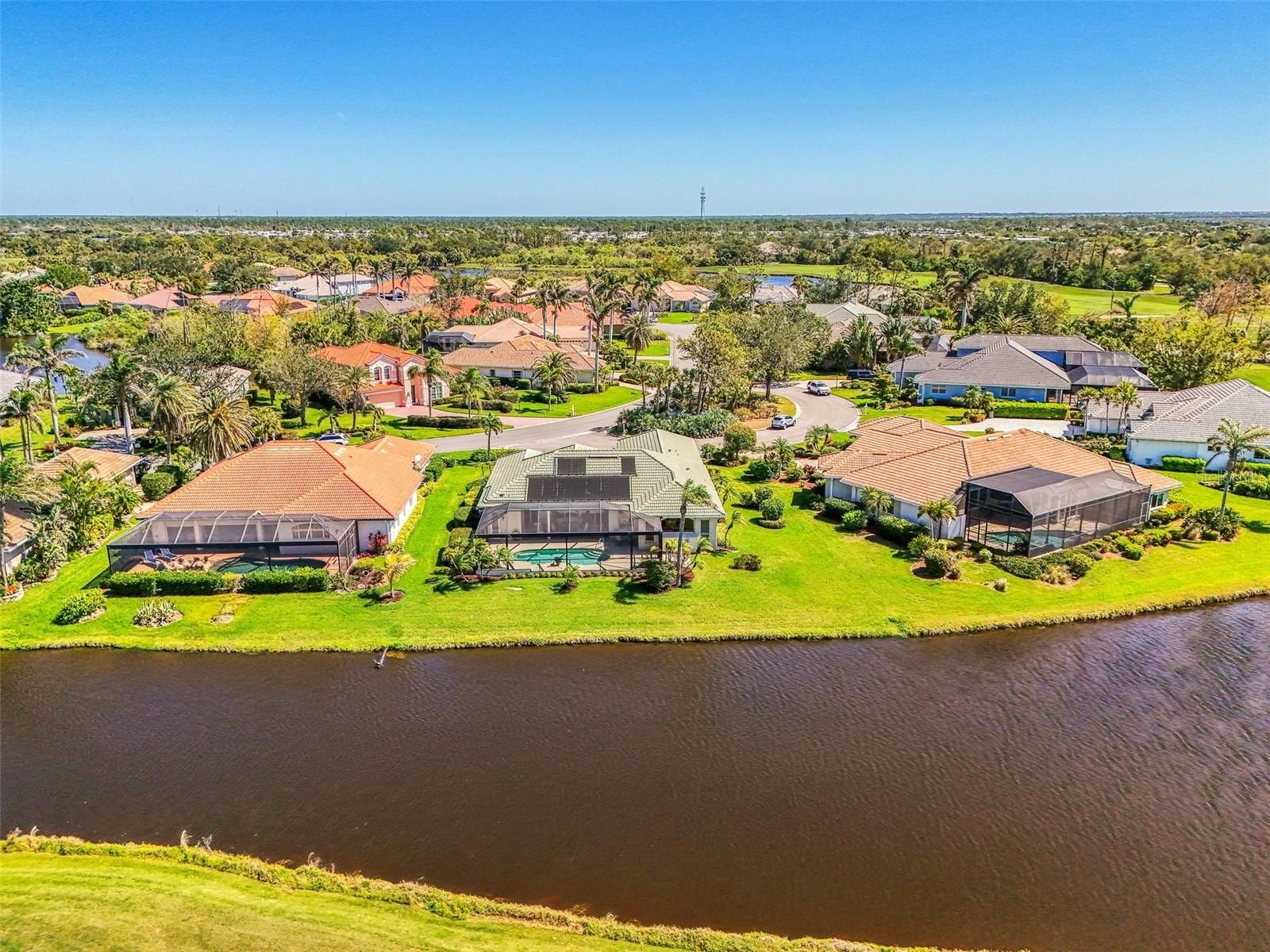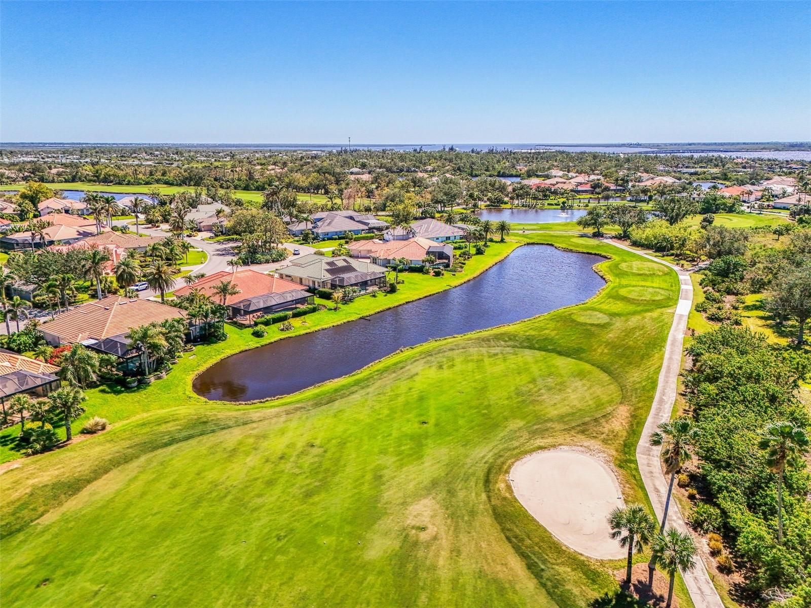Experience the pinnacle of the Grand Floridian lifestyle in this spectacular Arthur Rutenberg estate home, ideally situated in the highly sought-after Eagle Trace neighborhood of Riverwood. Overlooking a breathtaking blend of tranquil water views, nature and an expansive, pristine golf fairway, this immaculate Cayman model is a true masterpiece of design and craftsmanship. Nestled on an oversized, beautifully landscaped private lot, this home showcases the latest trends in both exterior and interior design. The upgraded kitchen is a chef’s dream, featuring custom wood cabinetry, an impressive 8-foot granite center island, stainless steel appliances, and a gas stove—all designed for both functionality and elegance. The thoughtfully designed floor plan seamlessly blends formal and casual living, offering a refined dining room, an inviting living room, and a comfortable family room highlighted by a decorative gas fireplace. The luxurious primary suite is complemented by two additional guest rooms—one currently utilized as a den with rich wood flooring—along with three full bathrooms, two featuring walk-in showers, and an additional outdoor half bath conveniently located by the pool. Valued upgrades such as crown molding, plantation shutters and fresh exterior paint in (2025) enhance the home’s refined ambiance. Modern enhancements include a brand-new air conditioning unit (2024) and a recently replaced pool cage with a picture screen (2023), ensuring endless picturesque views and a replaced Tile Roof (2016).The inviting outdoor living space is an entertainer’s dream, centered around a sparkling solar heated pool and an extended covered lanai—perfect for year-round enjoyment. An oversized garage accommodates two cars, a golf cart, and a dedicated workstation, providing ample storage and functionality. Offering an unparalleled combination of luxury, comfort, and stunning surroundings, this exquisite estate home is truly a rare find! Plus, a Quality Turn Key Furniture Package is available for move in convenience. Ask agent for details. Riverwood offers world-class amenities, including a par-72 championship golf course, a state-of-the-art fitness center, a resort-style pool, pickleball and Har-Tru tennis courts. The exclusive Private Beach Club on Manasota Key (membership based on availability) provides an additional touch of coastal living. Located just minutes from dining, shopping, boating, and the pristine Gulf of Mexico beaches, this is your opportunity to embrace the ultimate Florida lifestyle. Don’t let this magnificent home slip away—schedule a showing today and experience a level of luxury and serenity that is simply unmatched!