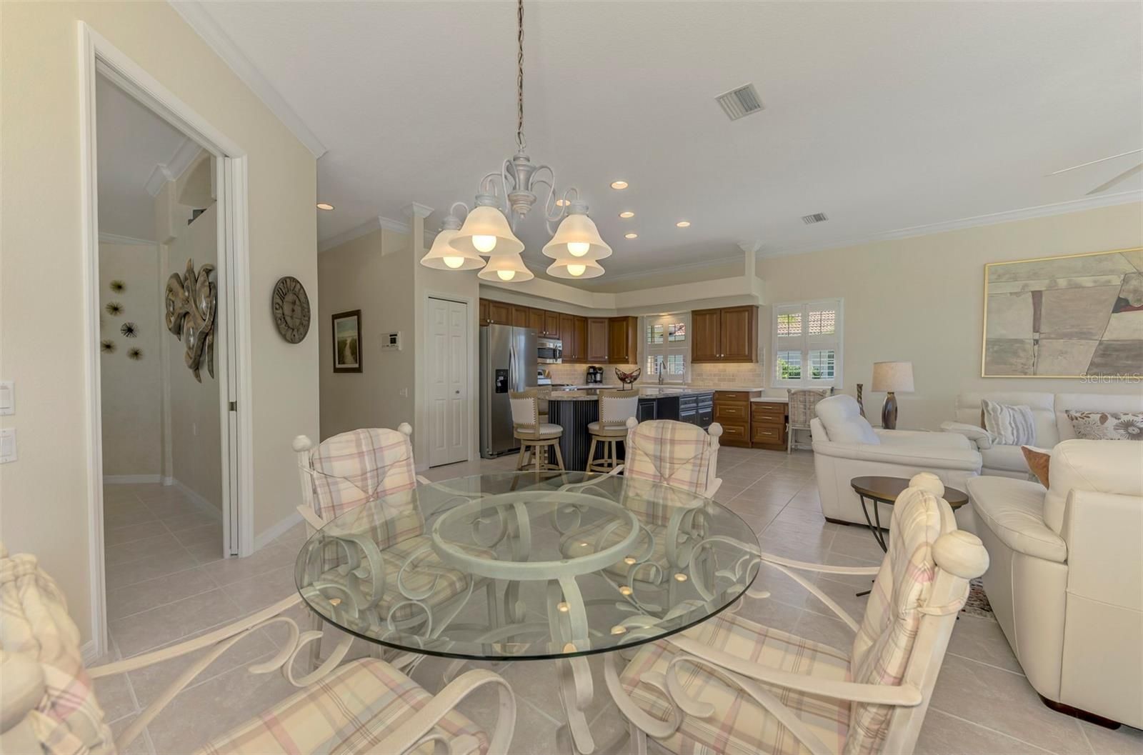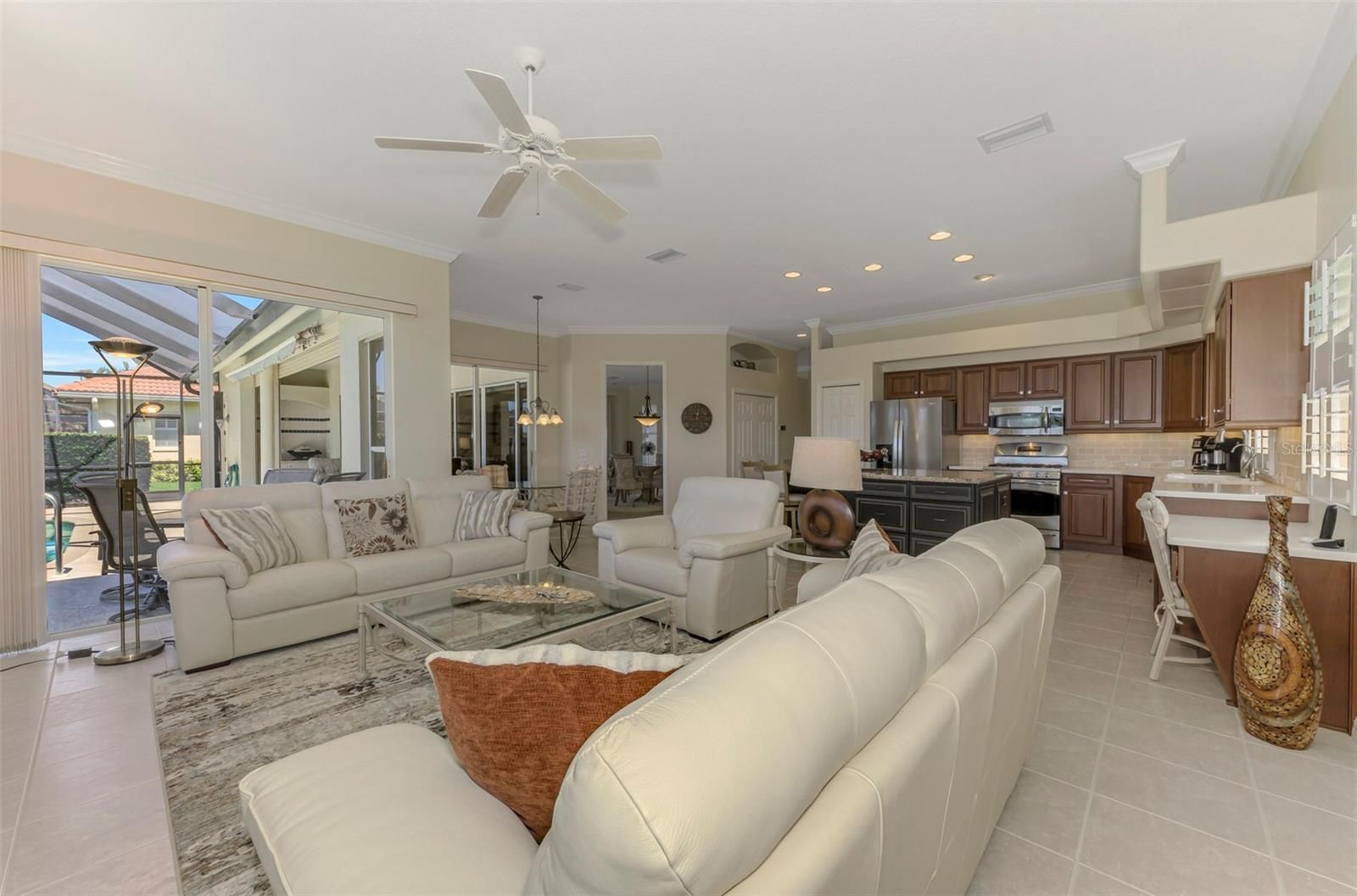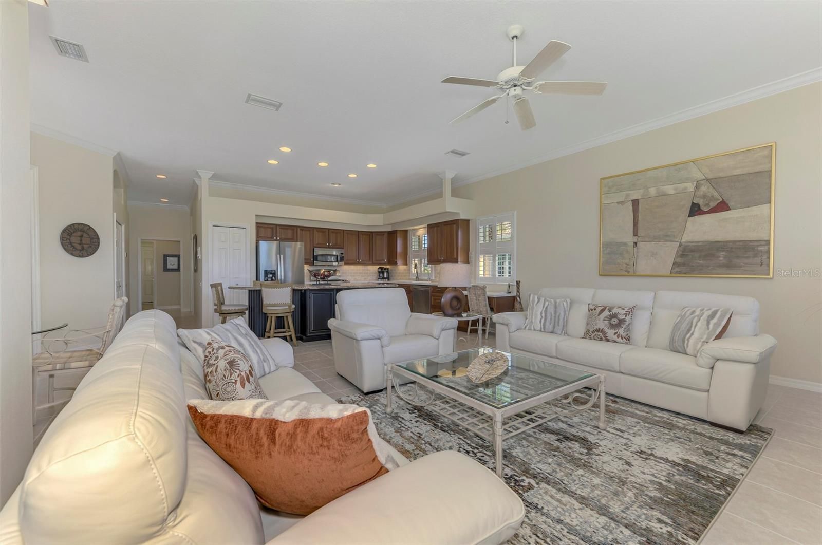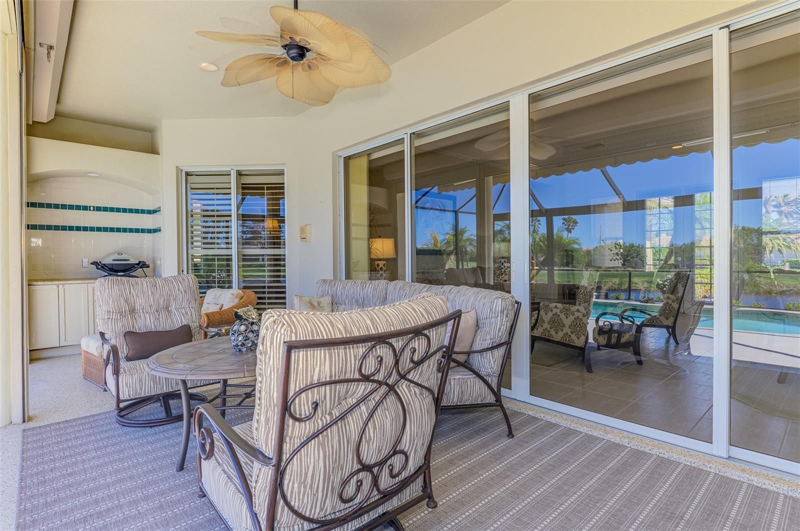 Experience the pinnacle of the Grand Floridian lifestyle in this spectacular Arthur Rutenberg estate home, ideally situated in the highly sought-after Eagle Trace neighborhood of Riverwood. Overlooking a breathtaking blend of tranquil water views, nature and an expansive, pristine golf fairway, this immaculate Cayman model is a true masterpiece of design and craftsmanship. Nestled on an oversized, beautifully landscaped private lot, this home showcases the latest trends in both exterior and interior design. The upgraded kitchen is a chef’s dream, featuring custom wood cabinetry, an impressive 8-foot granite center island, stainless steel appliances, and a gas stove—all designed for both functionality and elegance. The thoughtfully designed floor plan seamlessly blends formal and casual living, offering a refined dining room, an inviting living room, and a comfortable family room highlighted by a decorative gas fireplace. The luxurious primary suite is complemented by two additional guest rooms—one currently utilized as a den with rich wood flooring—along with three full bathrooms, two featuring walk-in showers, and an additional outdoor half bath conveniently located by the pool. Valued upgrades such as crown molding, plantation shutters and fresh exterior paint in (2025) enhance the home’s refined ambiance. Modern enhancements include a brand-new air conditioning unit (2024) and a recently replaced pool cage with a picture screen (2023), ensuring endless picturesque views and a replaced Tile Roof (2016).The inviting outdoor living space is an entertainer’s dream, centered around a sparkling solar heated pool and an extended covered lanai—perfect for year-round enjoyment. An oversized garage accommodates two cars, a golf cart, and a dedicated workstation, providing ample storage and functionality. Offering an unparalleled combination of luxury, comfort, and stunning surroundings, this exquisite estate home is truly a rare find! Plus, a Quality Turn Key Furniture Package is available for move in convenience. Ask agent for details. Riverwood offers world-class amenities, including a par-72 championship golf course, a state-of-the-art fitness center, a resort-style pool, pickleball and Har-Tru tennis courts. The exclusive Private Beach Club on Manasota Key (membership based on availability) provides an additional touch of coastal living. Located just minutes from dining, shopping, boating, and the pristine Gulf of Mexico beaches, this is your opportunity to embrace the ultimate Florida lifestyle. Don’t let this magnificent home slip away—schedule a showing today and experience a level of luxury and serenity that is simply unmatched!