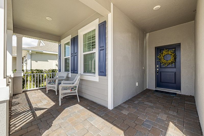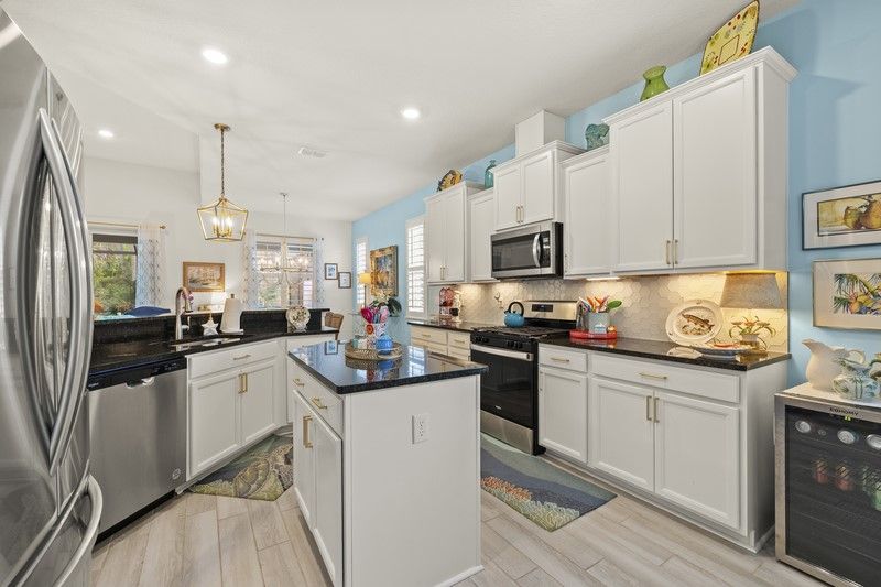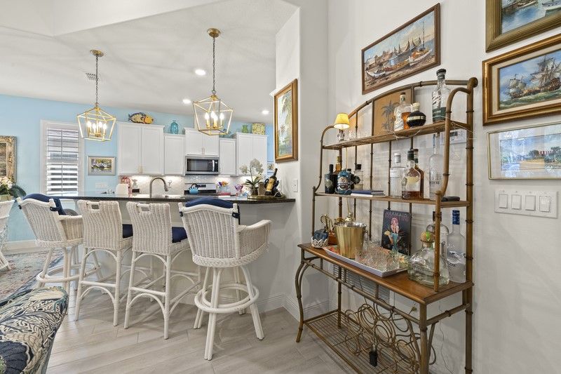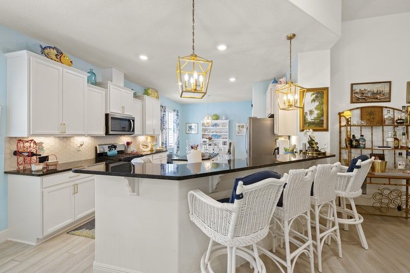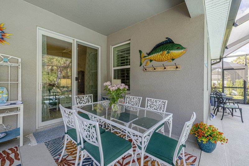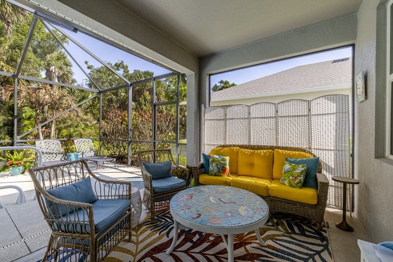 Rare opportunity to own one of the few homes in desirable Harmony Reserve with private pool.The screened, gas-heated pool overlooks serene, wooded backyard creating true coastal style retreat. This beautifully maintained residence offers 2 bed/2 bath & a versatile den ideal for a 3rd bedroom or office. Features include ceramic wood-look tile throughout, natural gas cooking, white cabinets, glass backsplash, plantation shutters, impact windows, epoxy garage floor & tankless water heater. Gated 55+ community with clubhouse, fitness center, spa, pickleball, library & lawn care included.Rmszspprox