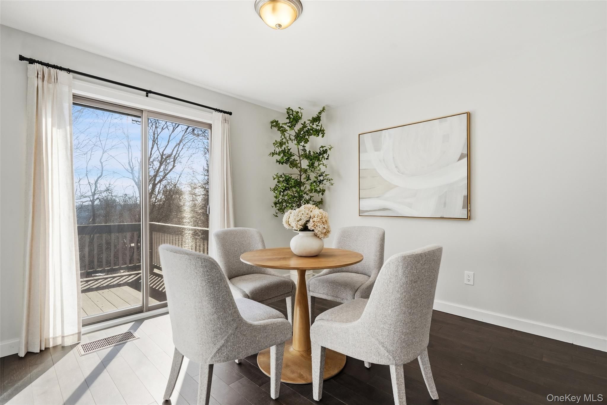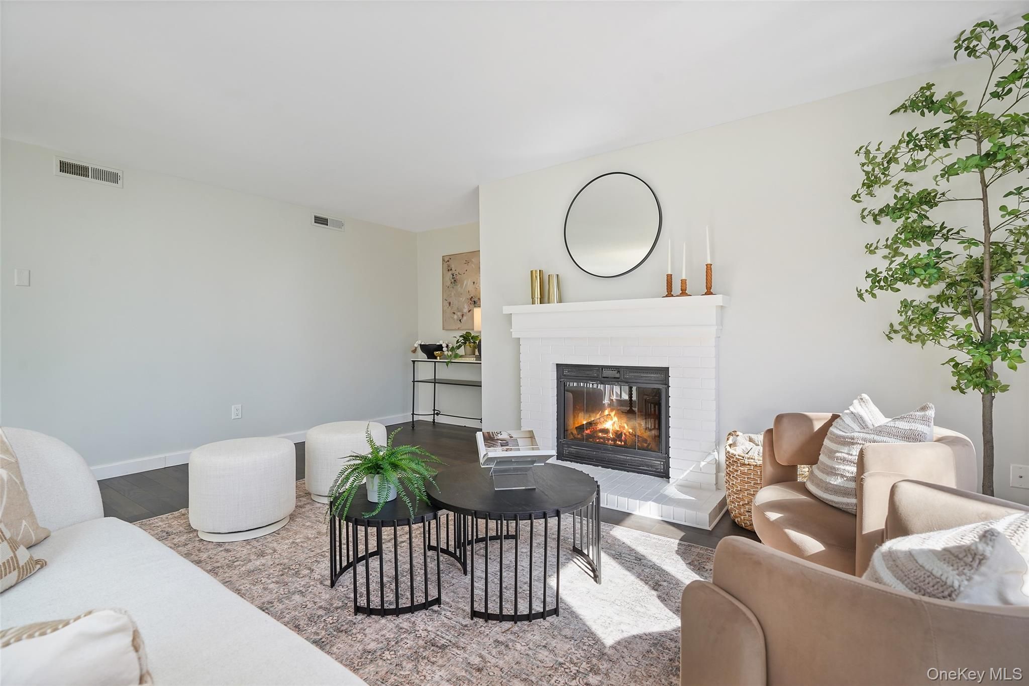 Tucked at the end of a quiet cul-de-sac in the desirable Heritage Hills, this sunlit home offers privacy, low-maintenance living, and attractive resort-style amenities. The open main level is flooded with natural light and features brand-new hardwood floors. An updated kitchen with granite countertops and stainless-steel appliances flows effortlessly into the living and dining rooms, which are separate yet open to one another, anchored by a cozy wood-burning fireplace. Sliding glass doors from both rooms open to a generous deck, perfect for relaxing or entertaining outdoors. The private bedroom level creates a tranquil retreat with two spacious bedrooms and a private stone patio accessible from both rooms. The primary suite is hotel-like, featuring a large walk-in closet and a sleek full bath plus an additional sink/vanity area outside the closet for added convenience. The second bedroom offers its own walk-in closet and custom shelving. New carpeting and bedroom-level laundry complete this level. Additional comforts include central air, central vacuum, and an attached one-car garage. Residents enjoy Heritage Hills’ exceptional amenities: multiple pools, tennis and pickleball courts, fitness center, clubhouse, on-site restaurant, optional golf membership, jitney to the train, 24 hr security and miles of walking trails across 1,100 scenic acres in Northern Westchester.