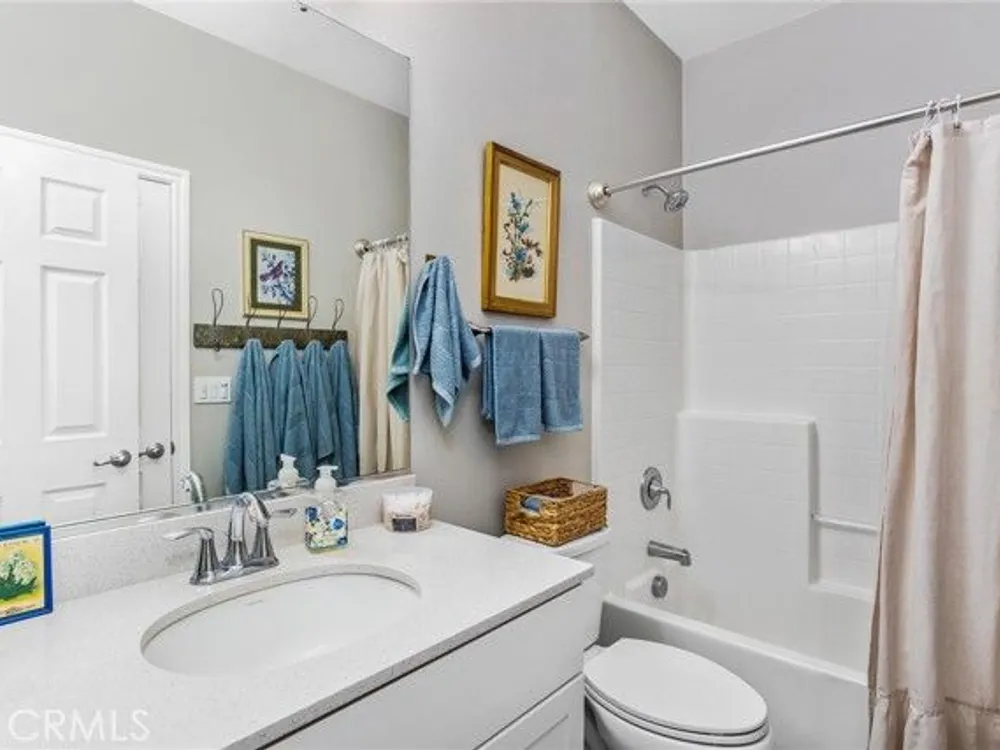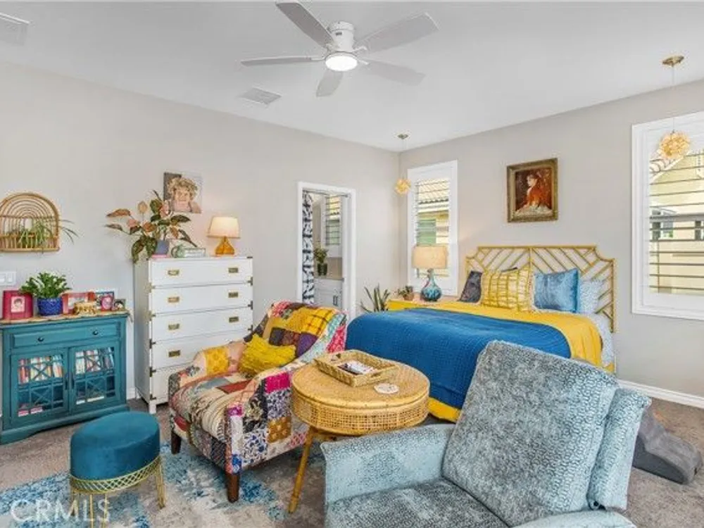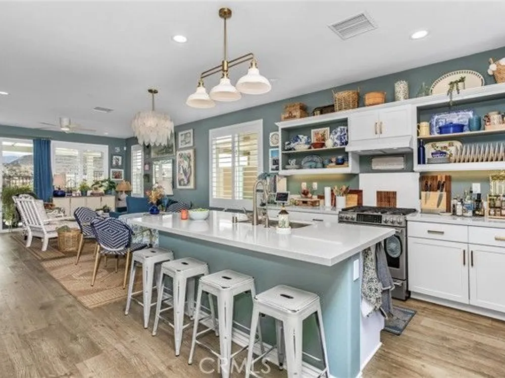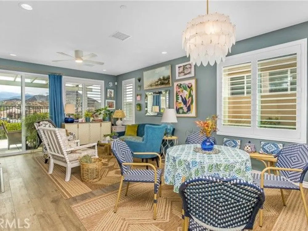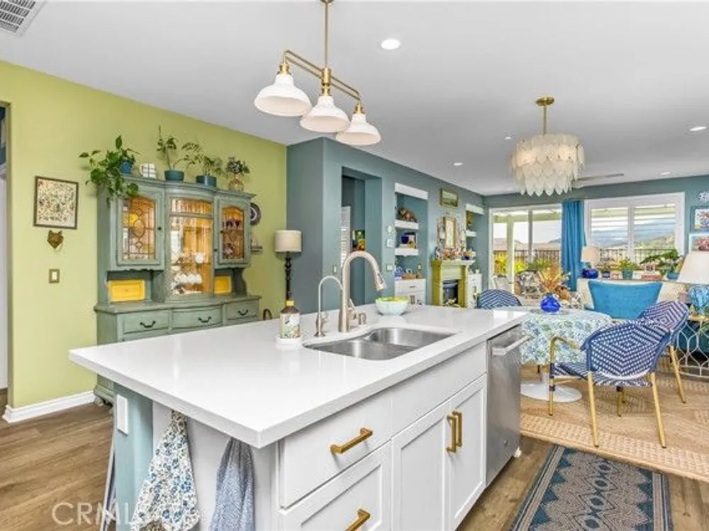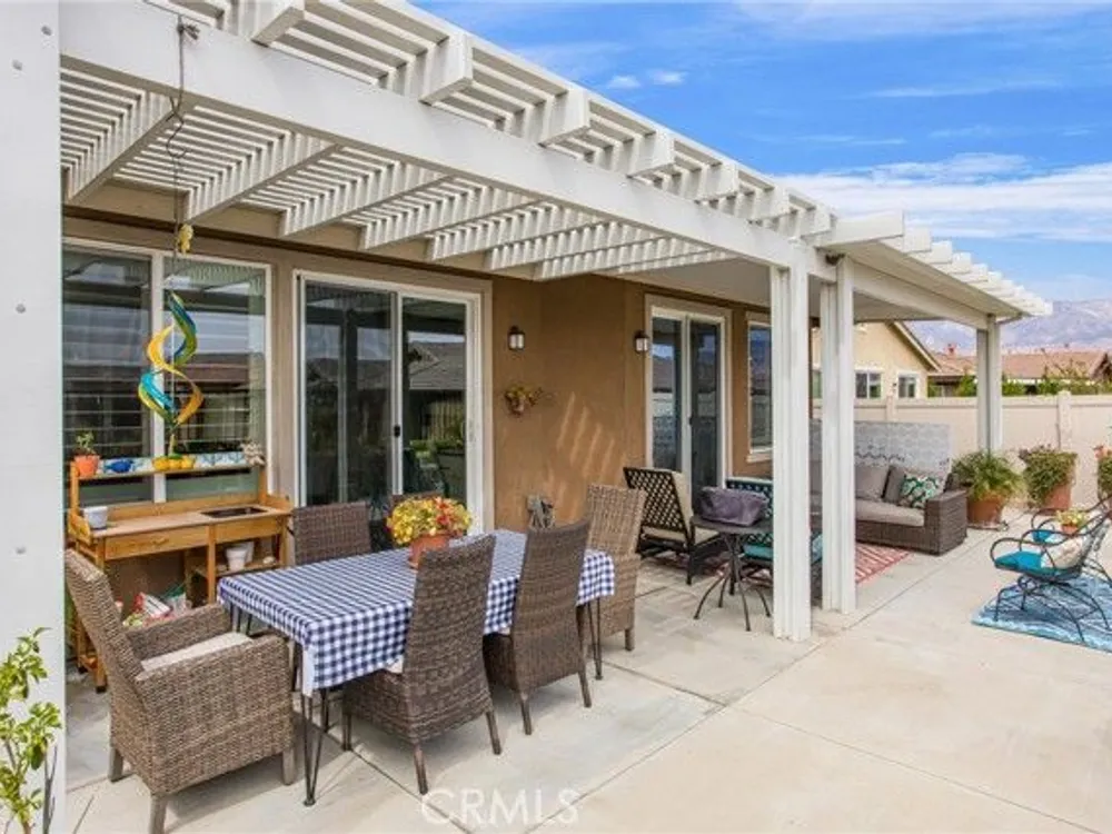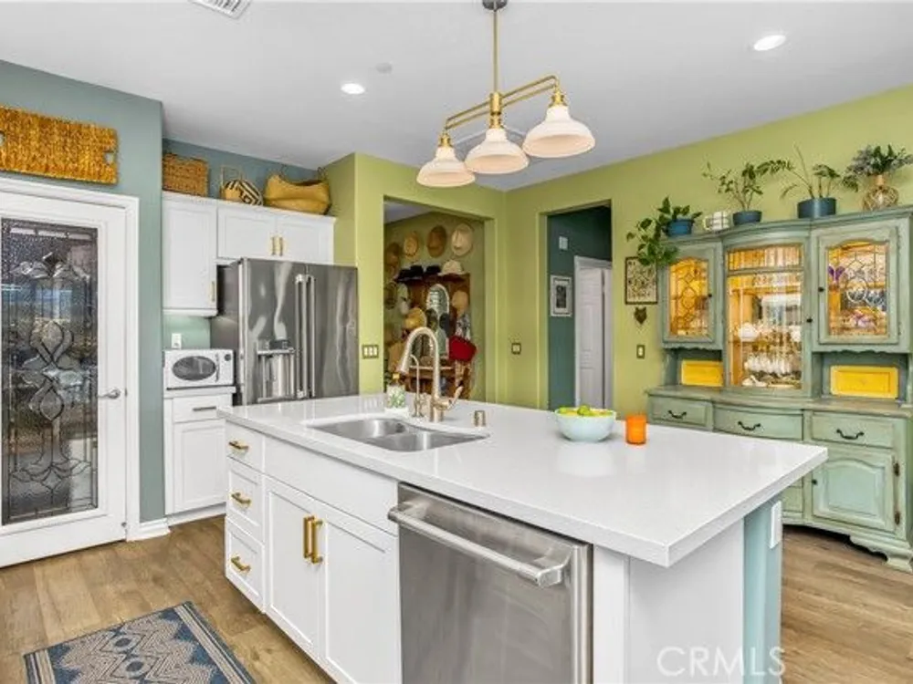 Welcome to this stunningly upgraded home in the sought-after K. Hovnanian Four Seasons community! This beautiful this Professionally designed single story residence offers 2 bedrooms, 2 bathrooms, and a private office with French doors. Perfectly positioned with unobstructed views of the Idyllwild Mountains and no neighbors directly behind, you’ll enjoy both privacy and breathtaking scenery. Step inside to discover an open-concept great room with a custom fireplace mantel and built-in niches, creating the ideal gathering space. The gourmet kitchen features Capistrano Shaker white cabinetry, quartz countertops and backsplash, upgraded GE Café appliances (including refrigerator), under-cabinet lighting, and a beveled glass pantry door. The primary suite is a true retreat with a private door to the ensuite bath, a mirrored walk-in closet, and access to a covered patio. The guest suite offers its own direct bath access, while the office provides flexibility for remote work or hobbies. Notable interior highlights include: Beautiful laminate flooring in main living areas, with upgraded carpet in bedrooms & office Custom paint throughout Four-inch baseboards, beveled mirrored wardrobe doors, and upgraded light fixtures Flat panel/media connections in office, great room, and primary bedroom Home networking package, security system, and Ring doorbell Laundry room with sink and full cabinetry The exterior is equally impressive, featuring: Stone front elevation and upgraded coach lights Concrete back patio with trellis cover & lighting plus additional covered patio off the primary suite Professional landscaping with privacy in mind. This home is move-in ready, thoughtfully upgraded, and designed for both comfort and style—an entertainer’s dream in a vibrant, active-adult community.