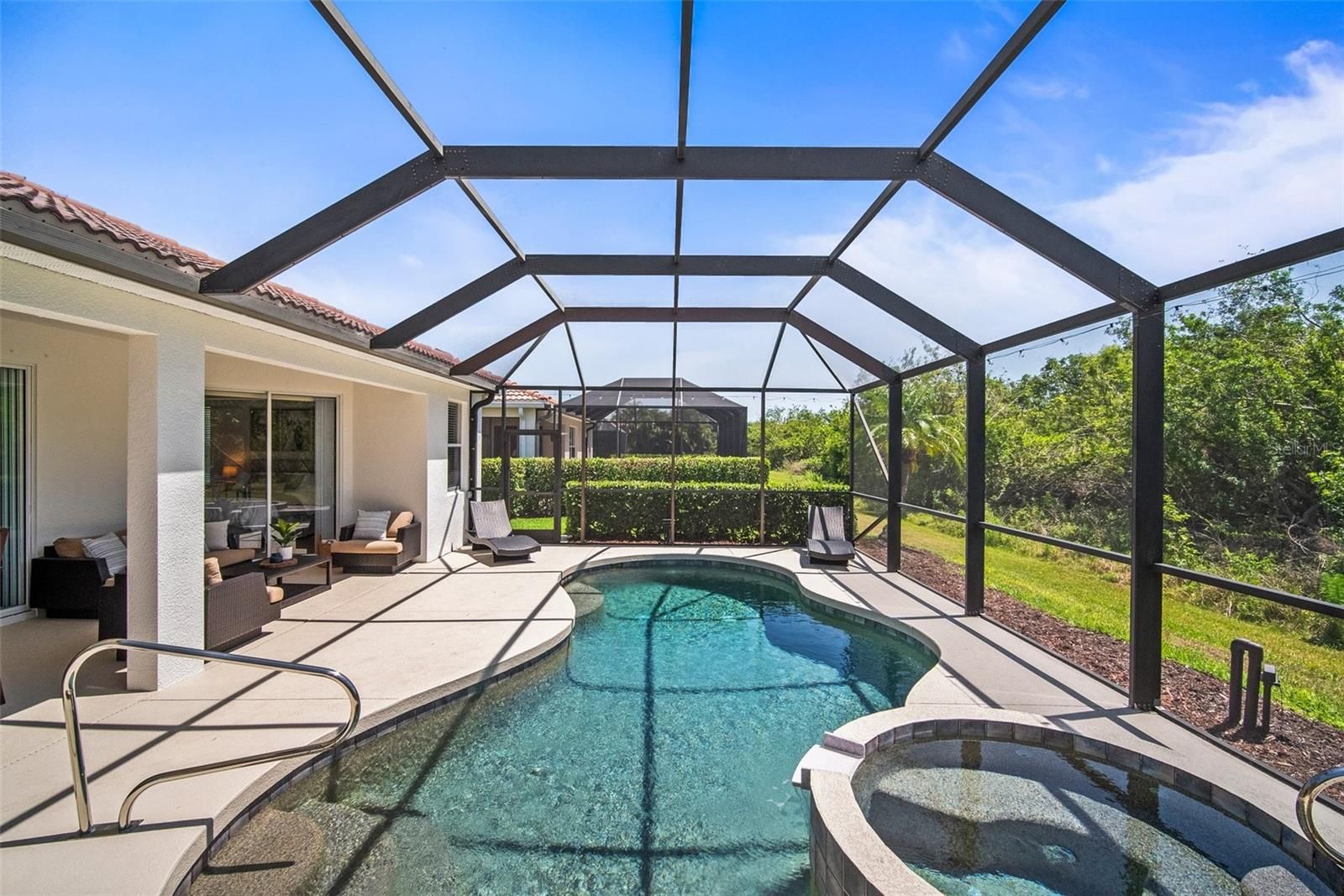Under contract-accepting backup offers. Welcome to your dream home with FULL GOLF & SOCIAL MEMBERSHIP in the highly sought-after River Strand Golf & Country Club! This beautifully maintained single-family residence offers 3 spacious bedrooms, 2 full bathrooms, and a private heated pool and spa – perfect for year-round relaxation and entertaining. Step inside to a light and bright open-concept layout, enhanced by full sliding glass doors that bring in natural light and create seamless indoor-outdoor living. The home has been freshly painted inside and out, and features stylish new light fixtures and ceiling fans throughout. Enjoy the convenience of a newly installed refrigerator, washer, dryer, and garage door opener. The garage also boasts upgraded lighting and custom shelving for added storage. The lanai has been rescreened and thoughtfully updated with relocated pool controls for easy access inside the lanai area. Other highlights include upgraded landscaping that enhances the home’s curb appeal, and a recently inspected and professionally cleaned roof, ensuring peace of mind. Immerse yourself in the renowned 27-hole Arthur Hills designed golf course, recently revitalized by the esteemed Andrew Green. Perfect your swing amidst breathtaking views and lush fairways, elevating every round to a true golfing experience. Tennis enthusiasts will delight in the 9 Har-Tru Tennis Courts, while pickleball enthusiasts can enjoy friendly matches on the 8 dedicated courts. Dive into relaxation at the 2 Resort-Style Pools, or seek solace at any of the 6 Satellite Pools scattered throughout the community, each offering a serene oasis to unwind. Indulge your palate and socialize at the Clubhouse, featuring a distinguished restaurant and hosting a myriad of engaging social events. The Community Center serves as a focal point for gathering, fostering connections and camaraderie among residents. Maintain an active lifestyle with access to 2 fitness centers, equipped with state-of-the-art facilities and expert trainers to support your wellness journey. Enjoy the convenience of 24-hour security and lawn maintenance, ensuring peace of mind and pristine surroundings throughout the community. Conveniently located just minutes away from I-75, UTC of Sarasota and the Gulf Coast's pristine beaches, this unparalleled community offers the perfect blend of convenience and luxury living. Experience luxury living at its finest in this meticulously maintained home in River Strand Golf and Country Club. Don't miss the opportunity to make it yours and start living the lifestyle you deserve! Don’t miss this opportunity – schedule your private showing today!