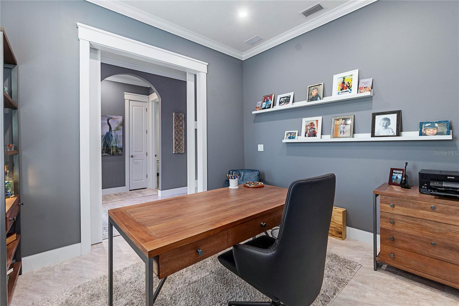 - Ceiling Fan(s), Crown Molding, Kitchen/Family Room Combo, Open Floorplan, Main Level Primary, Split Bedrooms, Walk-In Closet(s), Window Treatments