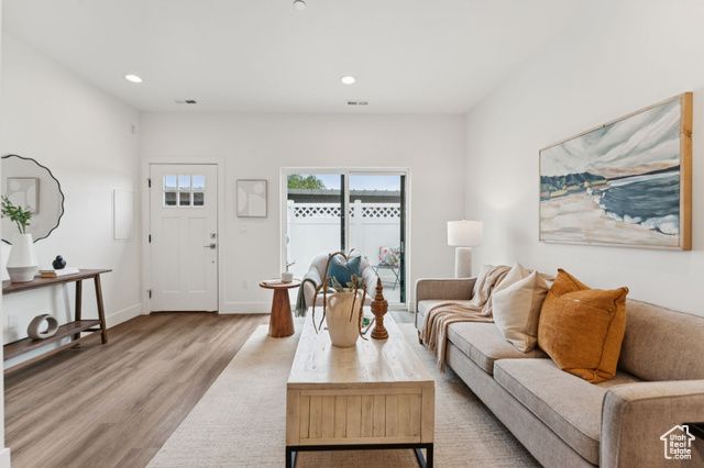 Welcome to Capri Village, a hidden gem nestled in the heart of Millcreek. This charming subdivision offers a unique blend of suburban tranquility and urban convenience, making it a perfect place to call home.This highly sought-after 55+ community offers comfortable, low-maintenance living. Along with a pool and clubhouse to enjoy, the community is well-maintained and includes snow removal. Completed in 2021, this is a modern, single-level condo that features a bright, open floor plan. The kitchen has beautiful white quartz countertops with plenty of surface area for cooking. The counter height and a counter top microwave oven were installed with wheelchair accessibility in mind. Head outside through the sliding glass doors and you will discover a quiet, fenced patio to relax and enjoy the fresh air. The bedrooms are both roomy and flexible. Two bathrooms, one with a bath and the other with a walk-in shower, allow privacy for everyone. A dedicated and covered parking space is only a few steps from the front-door; this makes bringing in the groceries a breeze. Don't wait, come see how fabulous a mature neighborhood with contemporary living can be! Square footage figures are provided as a courtesy estimate only and were obtained from plat map and tax records. Buyer is advised to obtain an independent measurement.