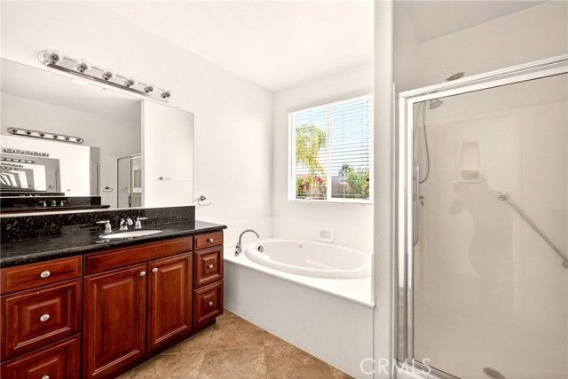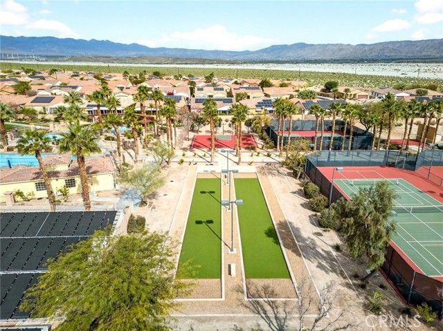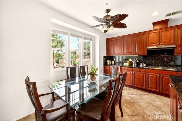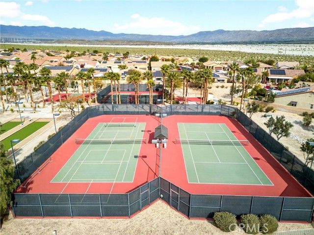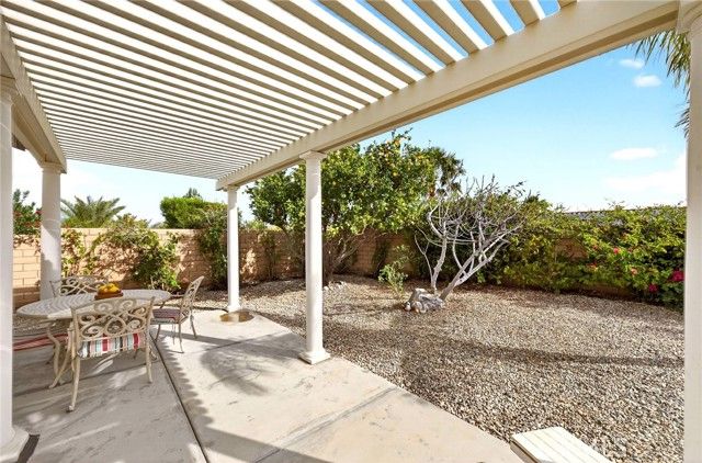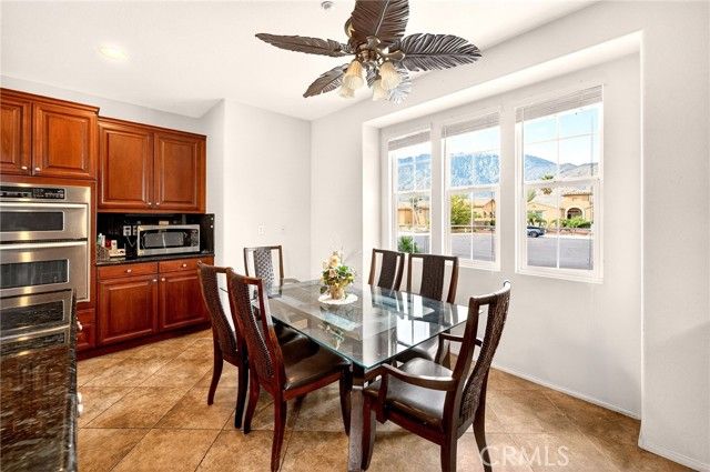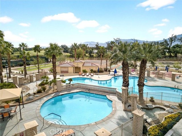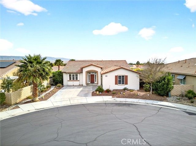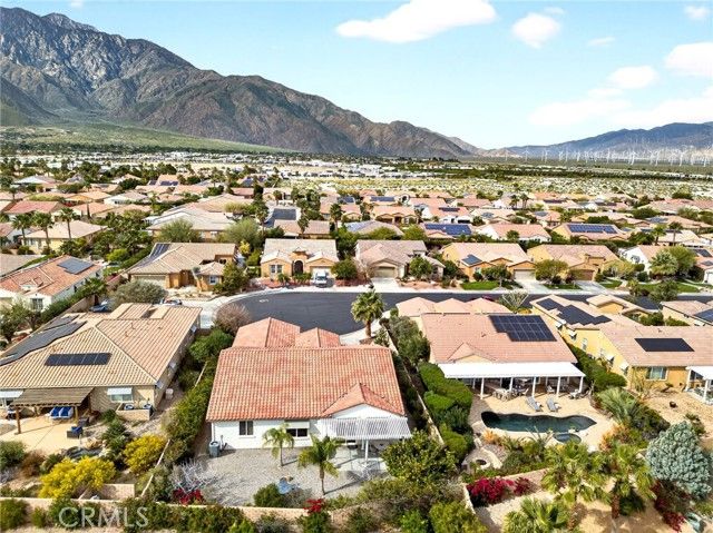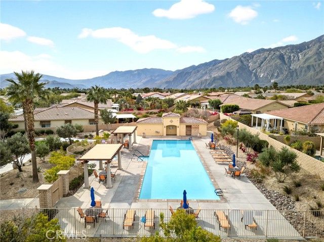 Welcome to the prestigious Four Seasons gated 55+ community in beautiful Palm Springs. This stunning 2,288 sq. ft. single-story home offers 3 bedrooms and 2 bathrooms with an open, airy floor plan and is ideally situated on a quiet cul-de-sac. The home features extensive 18” ceramic tile flooring and 9’ ceilings, creating a bright and spacious feel throughout. The gourmet kitchen showcases granite countertops, abundant cabinetry, a large center island, and a sunny breakfast area with beautiful mountain views. The formal dining room and expansive living room are perfect for entertaining and family gatherings. The spacious primary suite includes a huge walk-in closet and a luxurious en-suite bathroom with dual vanities, a relaxing jetted tub, and a step-in shower. An indoor laundry room with a utility sink provides direct access to the 2-car garage. Step outside to your private backyard retreat featuring low-maintenance desert landscaping, a concrete patio with an Alumawood patio cover, mature shrubbery, and fruit trees; recently redesigned with natural desert elements for both beauty and ease of care. Additional highlights include vinyl window blinds throughout and five ceiling fans. Residents of Four Seasons enjoy resort-style amenities at “The Lodge,” including a clubhouse ballroom, fitness and aerobics studios, game room, library, swimming pools, spas, tennis and pickleball courts, BBQ pavilion, scenic walking trails, and a full calendar of social events. HOA includes Frontier fiber internet. Located just minutes from downtown Palm Springs, fine dining, designer shopping, casinos, entertainment, and medical facilities—experience the ultimate Palm Springs lifestyle where luxury and convenience come together.