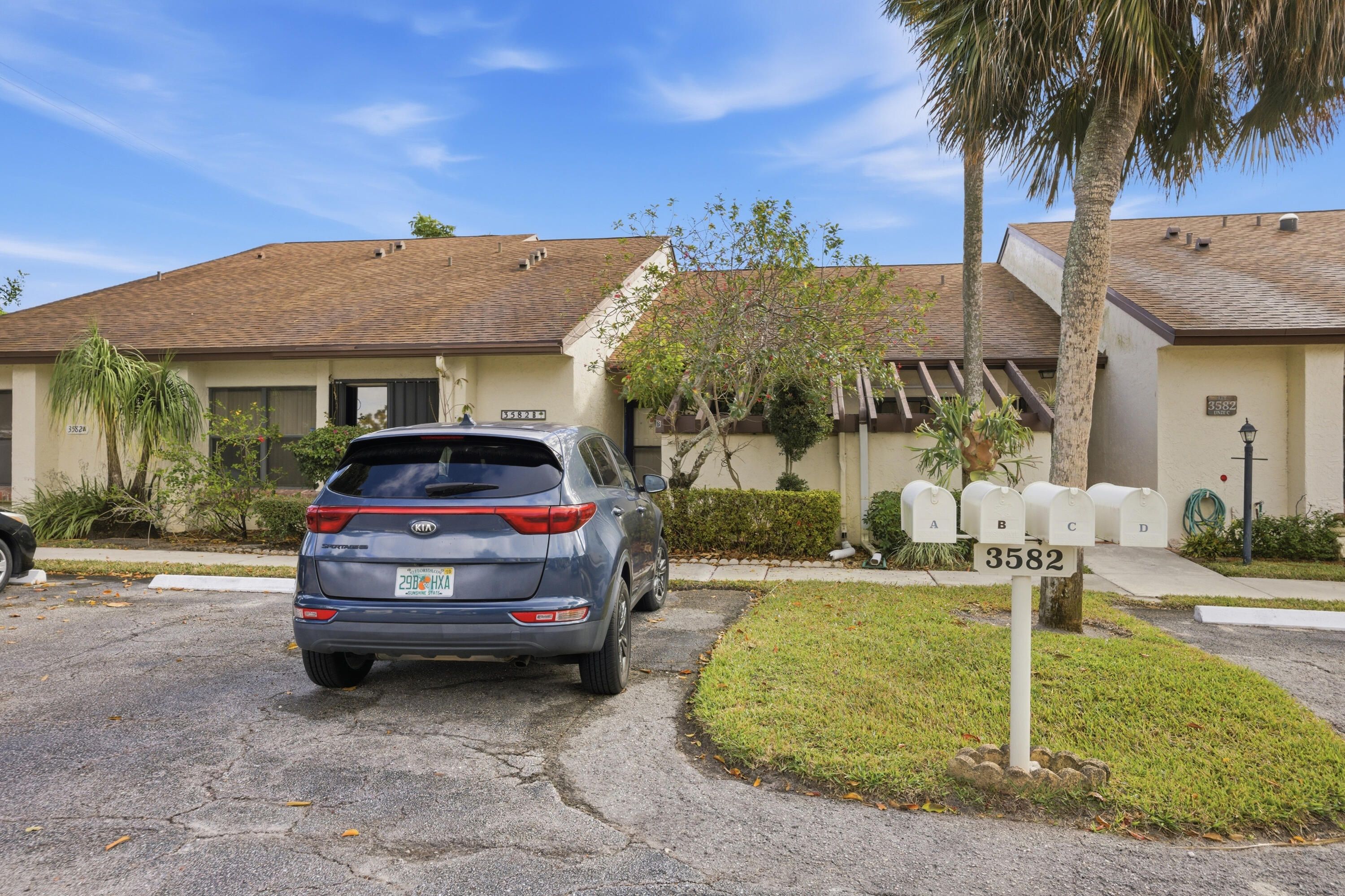 Move-in ready in a desirable 55+ community! Conveniently located near the Florida Turnpike, Wellington Mall, and major hospitals. This charming 2-bedroom, 2-bathroom villa sits on a quiet street and is ready for its new owner. Both bathrooms have been beautifully updated and brand-new flooring installed throughout the entire home. Enjoy the enclosed patio. The community offering two clubhouses, a variety of social and fitness activities, two pools, a hot tub, tennis courts, pickleball courts, and so much more.