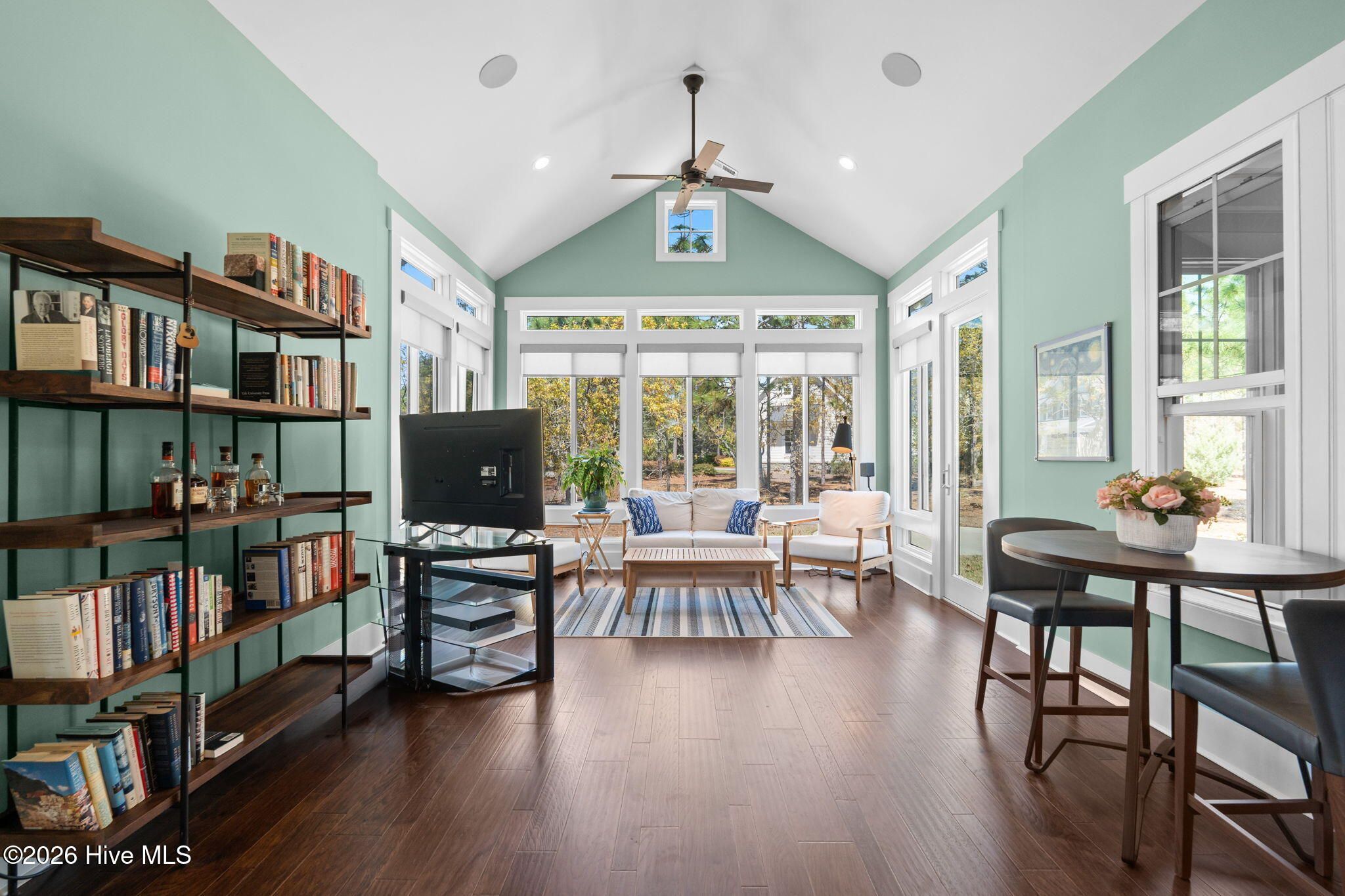 - Sound System, Master Downstairs, Walk-In Closet(s), High Ceilings, Entrance Foyer, Solid Surface Counters, Kitchen Island, Ceiling Fan(s), Pantry, Blinds