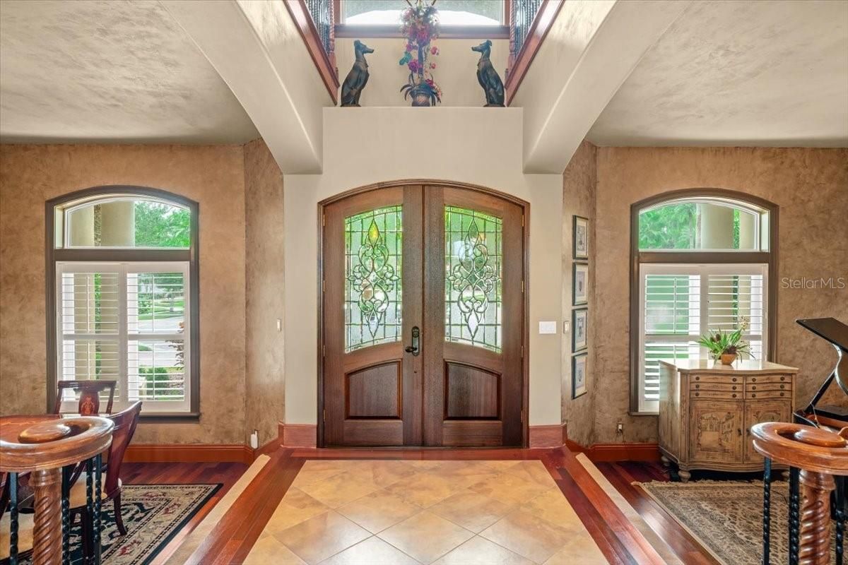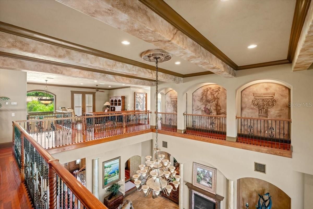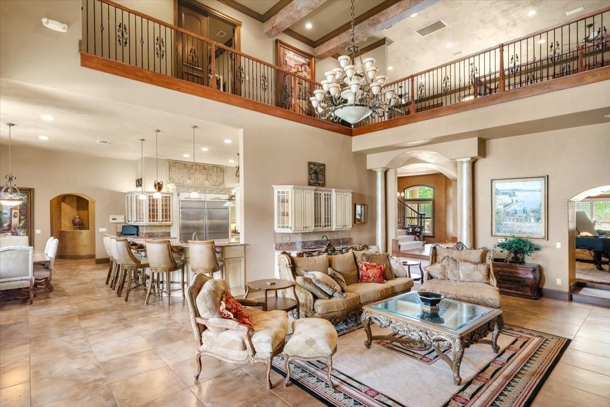 Built by Johnson Group Homes as the builder’s personal custom residence, this extraordinary estate is located in the award-winning Venetian Bay golfing community in New Smyrna Beach, where he served as the original developer, and is nestled on over a half-acre lakefront cul-de-sac lot with a tiered fountain centerpiece in the highly sought-after gated enclave of Tuscany Reserve. Offering in excess of 8,000 SF under air and over 11,000 SF total, this fully furnished turnkey mansion features 6 bedrooms, 10 bathrooms (7 full, 3 half), a grand travertine entry with large wood doors, soaring foyer flanked by a formal dining room and music room complete with baby grand, dual staircases, a massive living room with fireplace and balconies above, a wine cellar, wet bar, and chef’s kitchen with granite counters, pantry, and GE Monogram stainless appliances. The downstairs primary suite is fit for royalty with its own fireplace, 3-way mirrored dressing room, 20’ walk-in closet, garden tub, and separate shower, while 3 additional guest suites are also located on the main level. Step outside to the lanai with outdoor kitchen, pool bath, shower, and a spectacular 150’ saltwater pool with beach entry, landscaped island, arched bridge, spillover hot tub, and expansive paver deck overlooking the lake. Upstairs you’ll find 2 more bedroom suites, multiple balconies, 2 offices, a flex space, wood-paneled theater room with wet bar and half bath, billiards/game room with sports décor, wet bar, balcony, and half bath, plus a mirrored fitness studio outfitted with top-tier cardio and strength equipment. Every bedroom has its own walk-in closet with built-ins, and laundry rooms are located on each floor. Additional features include a 4-car garage (two tandem spaces) with cabinetry, tile roof, mature landscaping, central vac, whole-house generator, water treatment system, lightning protection, propane tanks, electric hurricane shutters, plantation shutters on interior windows, art niches, and extensive built-ins throughout. Just 15 minutes to the Atlantic Ocean beaches and Intracoastal Waterway, and close to downtown NSB’s historic district, shops, restaurants, parks, and entertainment, this home is unlike anything else—built to the highest standards and impossible to replace at this price. ALL INFORMATION IS ASSUMED ACCURATE BUT NOT GUARANTEED. ALL MEASUREMENTS ARE APPROXIMATE. BUYERS AND THEIR AGENTS SHALL VERIFY ANY INFORMATION DEEMED IMPORTANT TO THEM.