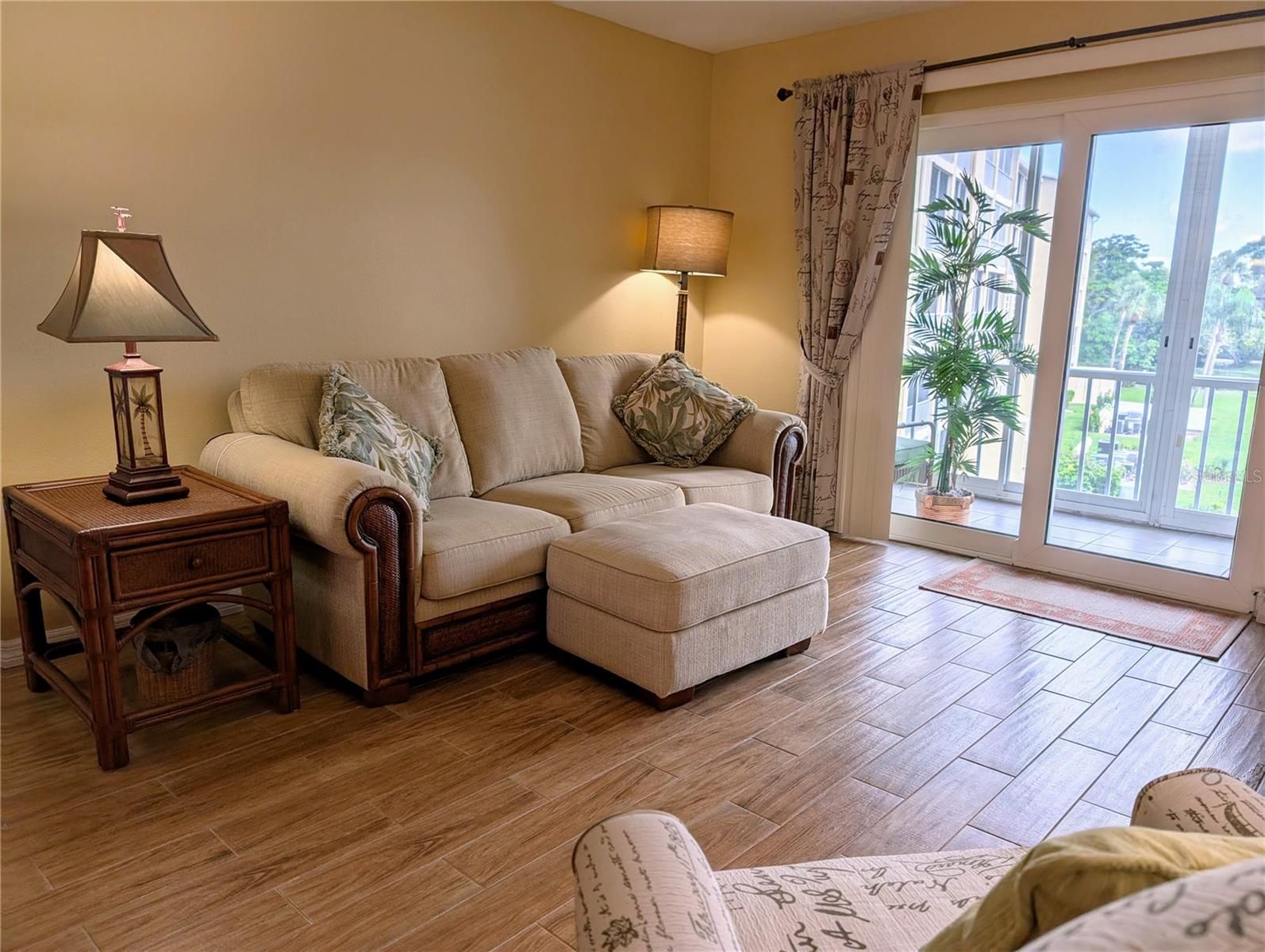 Delightful, spacious and full of upgrades: a pretty 2BR/2BA Turnkey Furnished condo that's truly 'move-in-now' ready on lake. Interior features ~ amazing ceramic tile plank flooring thru all rooms except guest room. Sleek kitchen with stainless appliances & plenty of updated cabinets & counter space. Replaced HVAC '23, H2O '24. Comfortable master bedroom w/ensuite bath. Both sets of sliding doors onto the (enclosed) lanai are beauties: heavy duty, noise/temp proofing. Stack Washer/Dryer is a benefit (no need to use community ones). Charming setting & views from lanai (beautiful tile flooring, sliding floor-to-ceiling windows to enjoy the views thruout the seasons. Active 55+ community offers heated pool/spa, clubhouse, plus picnic tables, gas grill and a fishing pier all in a very pretty setting. No pets. Centrally located near shopping, restaurants, golf courses, multiple hospitals & healthcare facilities; head east to UTC's shopping, dining & entertainment or west 10-15 minutes to sandy Gulf beaches on Anna Maria Island. Interested? Come see...