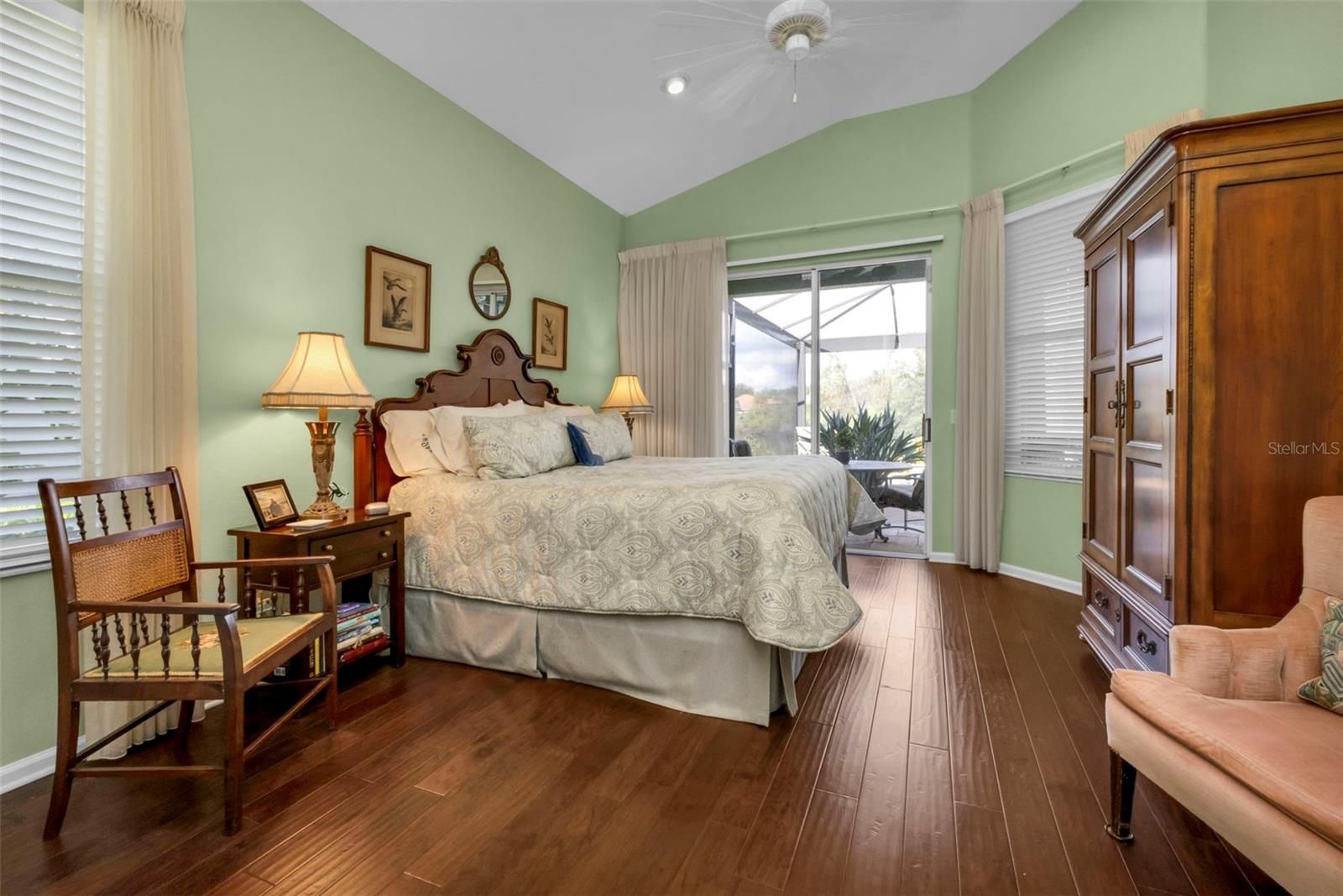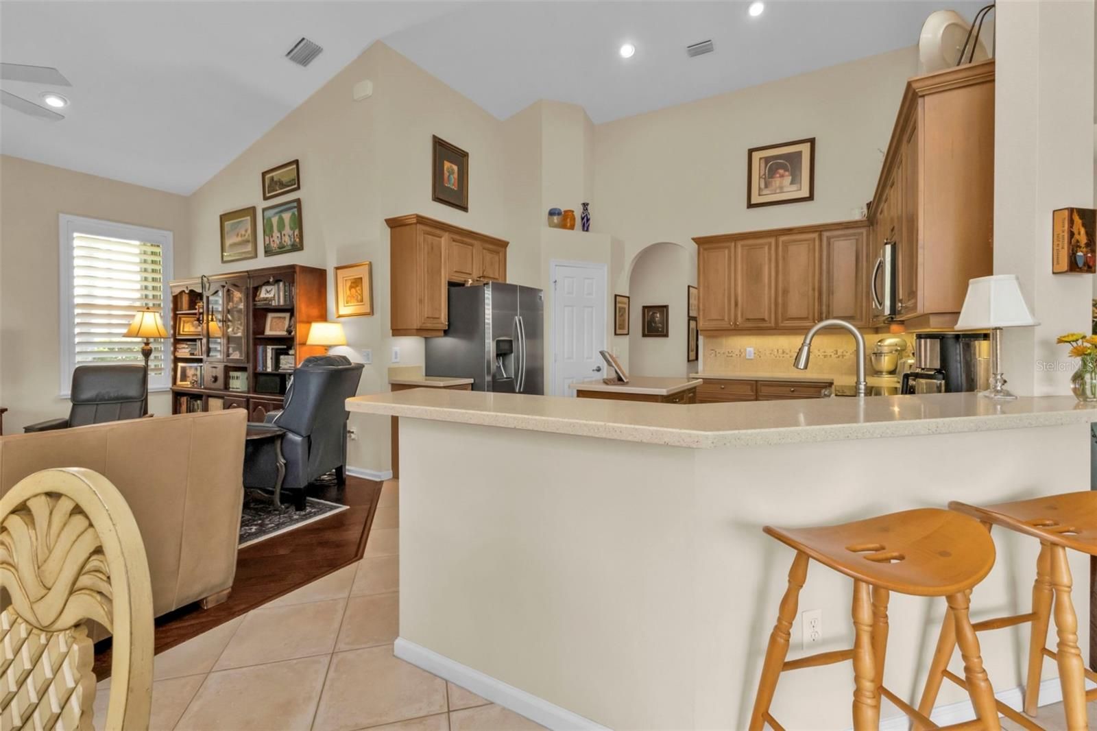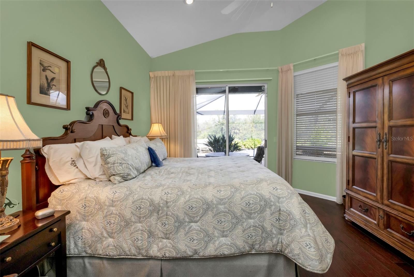 Stunning Water & Preserve Views Await in the Eagle Trace Neighborhood of Riverwood! The striking triple arches at the front entry and paver brick driveway give the home timeless curb appeal. As you enter the living room of this beautiful 4-bedroom, 3-bathroom home, you're immediately greeted by views of the peaceful lake and nature preserve. Vaulted ceilings, arched doorways, plantation shutters, and a blend of engineered hardwood, ceramic tile, and carpeting throughout lend a sophisticated yet comfortable ambiance. The primary suite welcomes you with double doors leading to a spacious retreat with sliding doors to the lanai, a walk-in closet, and an ensuite bathroom with dual sinks and a luxurious tiled Roman shower. Three guest rooms offer flexible living options: one with ensuite access to a full bath that doubles as a powder room, another near a full bath and private access to the pool area, perfectly designed with a door from the kitchen that can be closed to create a private space, and a third that can serve as a den or office. The heart of the home, an open-concept kitchen, boasts Corian countertops, appliances, a large pantry, a moveable center island, a breakfast bar, and a cozy dining nook. Adjacent to the kitchen is the family room, creating a natural flow for entertaining and daily living. The separate dining room is perfect for those more formal gatherings. Sliding glass doors from the living room and kitchen seamlessly extend the indoor living space to the lanai. Outside, a travertine pool deck surrounds the heated saltwater pool, creating a luxurious yet tranquil setting. Tropical landscaping, maintained with an irrigation system, frames the serene environment while a calming water feature flows gently into the pool. This outdoor retreat offers a peaceful sanctuary where you can relax and enjoy the picturesque views and the soothing sounds of nature. Additional features include a new roof installed in 2022, hurricane shutters, a laundry room with a utility sink, a two-car garage, and mature landscaping. As part of the vibrant Riverwood community, residents enjoy amenities such as a par 72 championship golf course, a state-of-the-art fitness center, a resort-style pool, pickleball courts, and Har-Tru tennis courts. Beyond your doorstep, relish easy access to world-class fishing, boating, dining, shopping, and the sandy beaches of the Gulf of Mexico. Conveniently situated between Sarasota and Ft. Myers on Florida's West Coast. Welcome home to comfort, style, and the beauty of Riverwood living! Contact me today to schedule your private showing—this is Florida living at its finest!