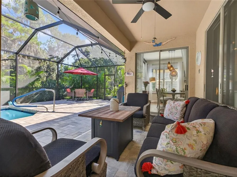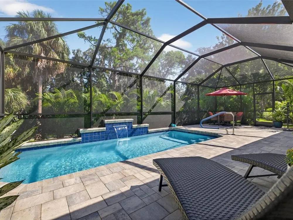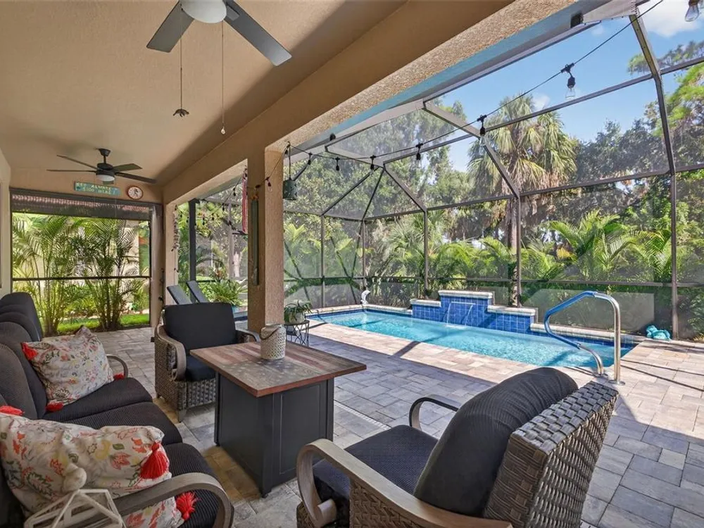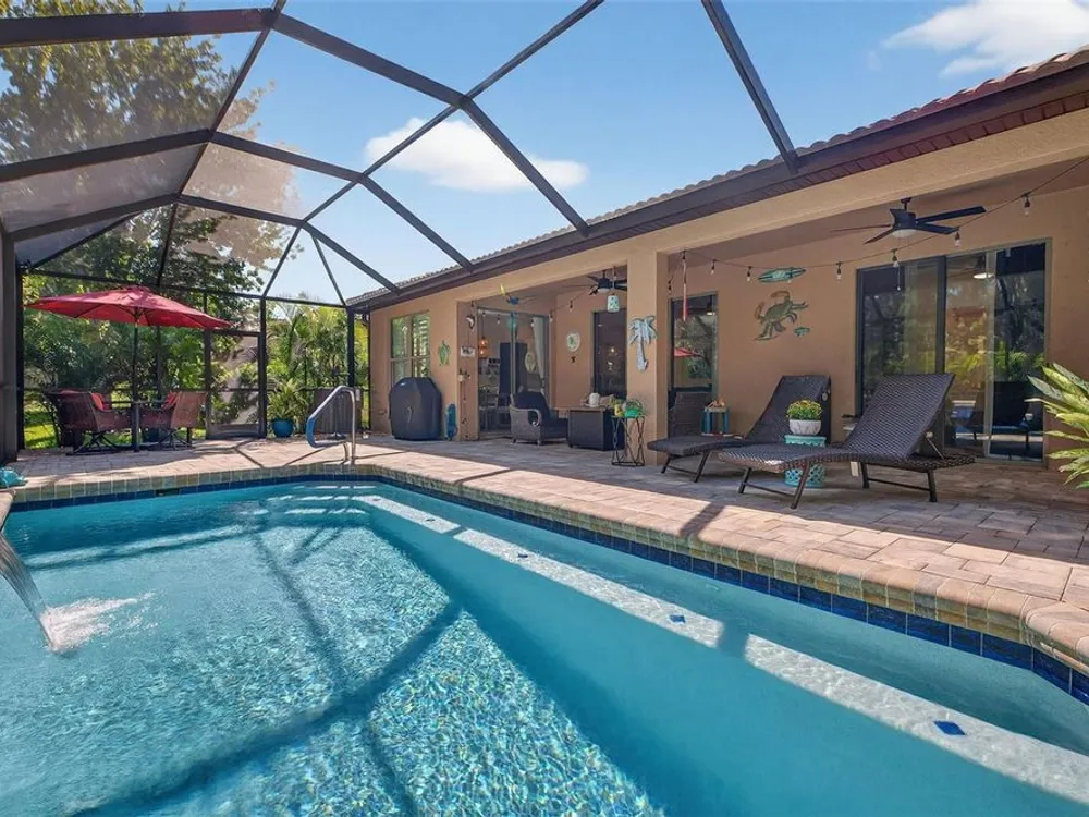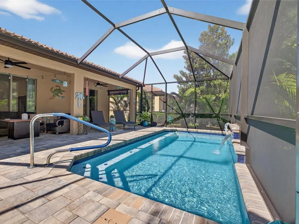 Welcome to this gorgeous pool home in the highly sought after, gated 55+ community of Southshore Falls. Immaculate and exceptionally well maintained, this move-in ready residence provides 3 bedrooms, 2 full baths, and 2,028 square feet of thoughtfully designed living space. With a stunning private pool, elegant finishes, and serene natural views, this home combines comfort, convenience, and resort-style living at its finest. From the moment you arrive, pride of ownership is evident. The home features a spacious 2-car garage with durable epoxy flooring, lush landscaping that's maintained by the HOA, and a welcoming entry that sets the tone for what’s inside. Step through the screened front covered entry into an open floor plan filled with natural light, where luxury vinyl plank flooring flows seamlessly throughout the main living areas and bedrooms, creating both beauty and easy maintenance. At the heart of the home, the expansive kitchen offers both function and style. Outfitted with gleaming Quartz countertops, plentiful cabinetry, large center island with seating spaces, stainless steel appliances, a large pantry and a custom lighting package, this space is as ideal for preparing everyday meals as it is for hosting special gatherings. Plantation shutters add a timeless elegance, while thoughtful upgrades like a water softener system and hurricane-rated windows and shutters provide comfort and peace of mind. The open layout connects the kitchen, breakfast nook, living room and seating area, all with effortlessly ensuring that entertaining is a delight. The primary suite is a private retreat featuring a private access to the covered lanai, generous closet space, and a spa-inspired ensuite bath with dual vanities, and a custom glass walk-in shower. Two additional bedrooms and a full bathroom with direct hallway access provide flexibility for guests, hobbies, or a dedicated office. Step outside to your personal backyard oasis. A sparkling heated saltwater pool with a brand-new enclosure (2024) takes center stage, surrounded by a covered lanai perfect for both relaxing and outdoor dining. Beyond the pool, your backyard backs up to a walking trail and peaceful natural preserve, where birds and other wildlife can often be spotted, creating a tranquil setting that feels worlds away from the everyday. Southshore Falls is renowned for its resort-style amenities and vibrant community spirit. Residents enjoy a 24-hour secured, gated entrance, a spectacular clubhouse with social gathering spaces, a fitness center, tennis and pickleball courts, walking trails, and of course, 2 sparkling community pool—in addition to the one in your own backyard. A full calendar of events, clubs, and activities makes it easy to connect with neighbors and enjoy an active lifestyle. Ideally located, this community provides easy access to I-75, making commutes to Tampa International Airport, downtown Tampa, or St. Petersburg a breeze. You are also just minutes from Apollo Beach, waterfront dining, boutique shopping, and some of the region’s most beautiful Gulf Coast destinations. Combining modern upgrades, a stunning pool and lanai, and an enviable location within one of the area’s premier 55+ communities, this beautiful home offers the perfect blend of style, comfort, and resort-inspired living.