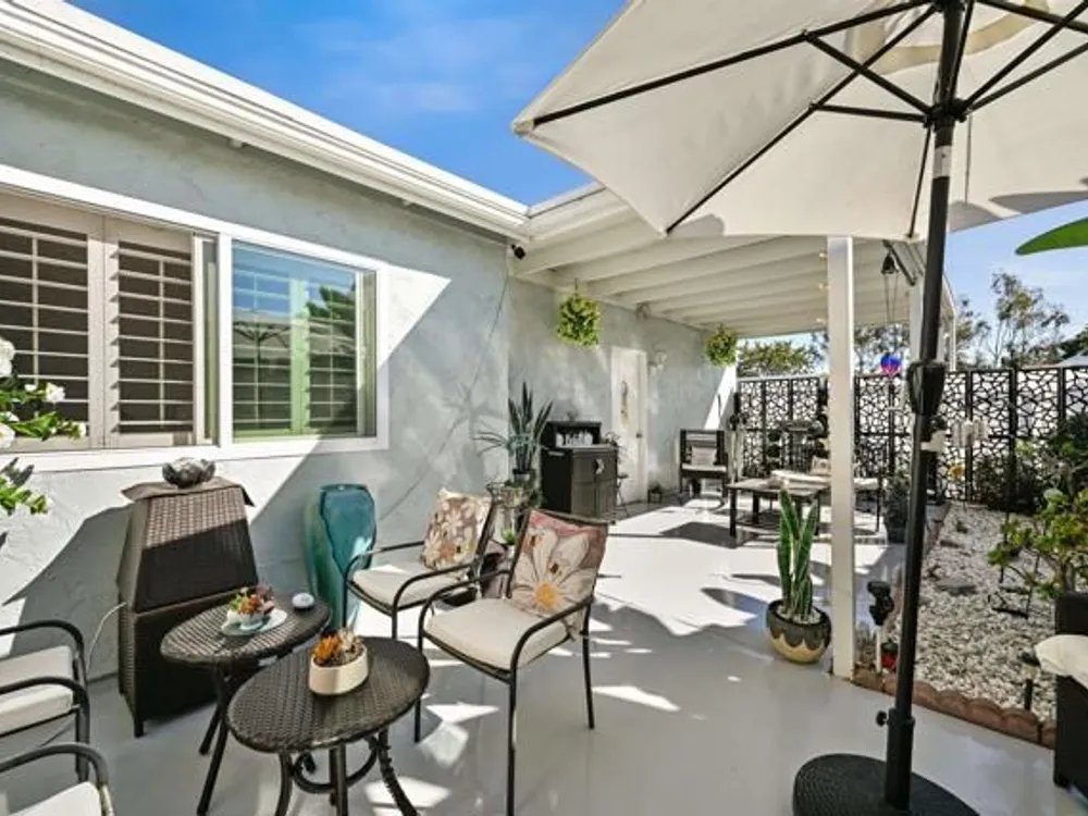 Welcome to this beautifully updated home in the highly sought-after 55+ community of Oceana, where comfort, style, and convenience come together. Inside, fresh interior paint and laminate flooring throughout—even in the closets—create a clean, cohesive look that’s easy to maintain. The remodeled kitchen is a standout, featuring custom cabinetry with pull-out shelves, granite counters, and modern appliances, including a brand-new Smart Stove (installed July 2025), refrigerator, and dishwasher. Both bathrooms are tastefully upgraded with ceramic tile and contemporary finishes, while dual-pane windows with custom shutters enhance energy efficiency and charm. A newer water heater and garage door opener add peace of mind. Parking and storage are a breeze with a one-car attached garage plus an additional carport. The HOA covers roof inspections and maintenance, giving you one less thing to worry about. Enjoy Oceana’s lifestyle amenities including a pool, spa, and clubhouse—all just minutes from shopping, dining, trails, and ocean breezes. Truly turnkey and move-in ready!