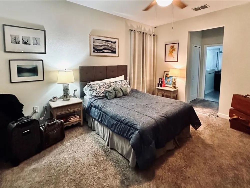 - Ceiling Fan(s), Eat-in Kitchen, High Ceilings, Open Floorplan, Solid-Wood Cabinets, Stone Counters, Thermostat, Walk-In Closet(s)