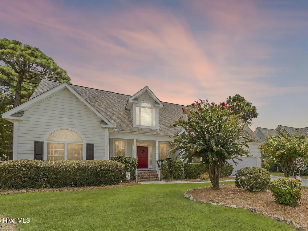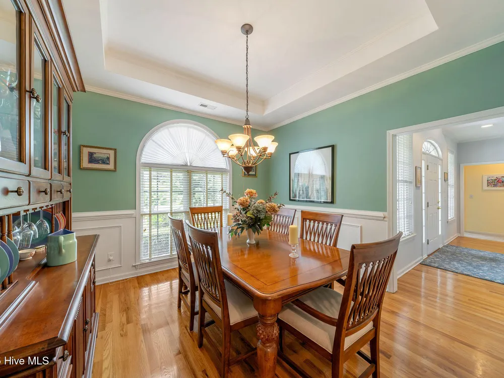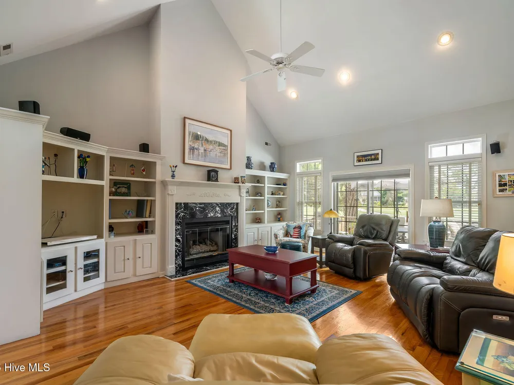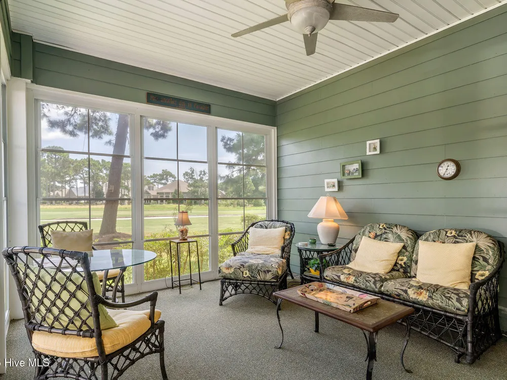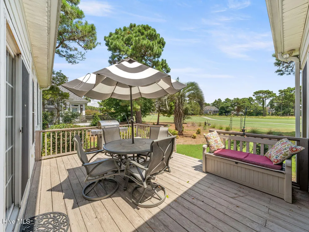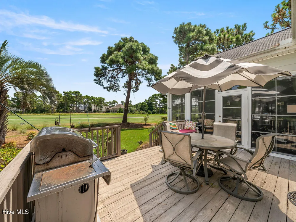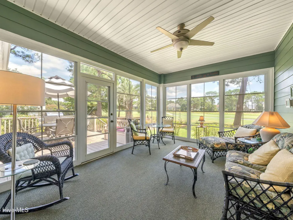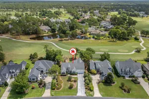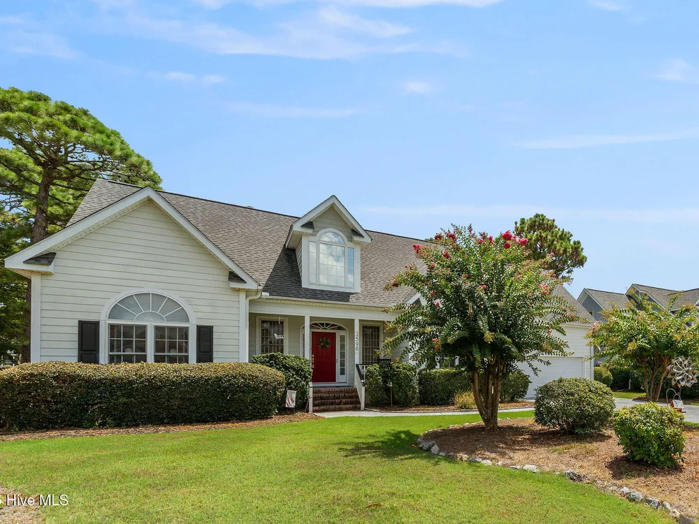 This beautifully maintained 3-bedroom, 2.5-bathroom home offers 2,486 square feet of living space on the Members Club golf course in St. James Plantation. The roof was replaced in 2019, and the heating/cooling system was replaced in 2021. A manicured front lawn and paved driveway with attractive brick pillar walls sets the stage for this low country style home. The welcoming front porch invites you to relax, while the front door elegantly framed by an arched transom and sidelights sets a warm and timeless tone as you step inside. The dramatic and bright foyer features a beautiful dormer window and real three-quarter inch oak flooring that flows seamlessly through the common areas. Just off the entry, the formal dining room exudes elegance with its tray ceiling, custom wainscoting, and a striking arched window. This inviting space connects effortlessly to the kitchen, where granite counters, abundant cabinetry, a built-in wine rack, wall-mounted oven and microwave, gas cooktop, raised bar peninsula, and cozy breakfast nook create the perfect blend of style and function for both everyday living and entertaining. The kitchen opens to a spacious great room highlighted by a soaring cathedral ceiling and a cozy gas fireplace flanked by custom built in cabinetry perfect for your media center or storage. Enjoy amazing views of the 6th golf hole of the Members club golf course from the convenient and spacious 3-season room. This versatile area can be used as a screened porch or cozy room in the fall and winter. Sliding glass doors invite you out to the back deck, an ideal spot to soak up the sun and enjoy the mild Carolina weather. The thoughtfully designed floor plan offers maximum privacy with the owner's suite tucked away from the guest bedrooms. This serene retreat features cozy carpeting, a tray ceiling, and a spacious en-suite bathroom. The bathroom boasts a dual sink vanity, jetted tub, walk-in shower, and direct access to a well-organized walk-in closet.