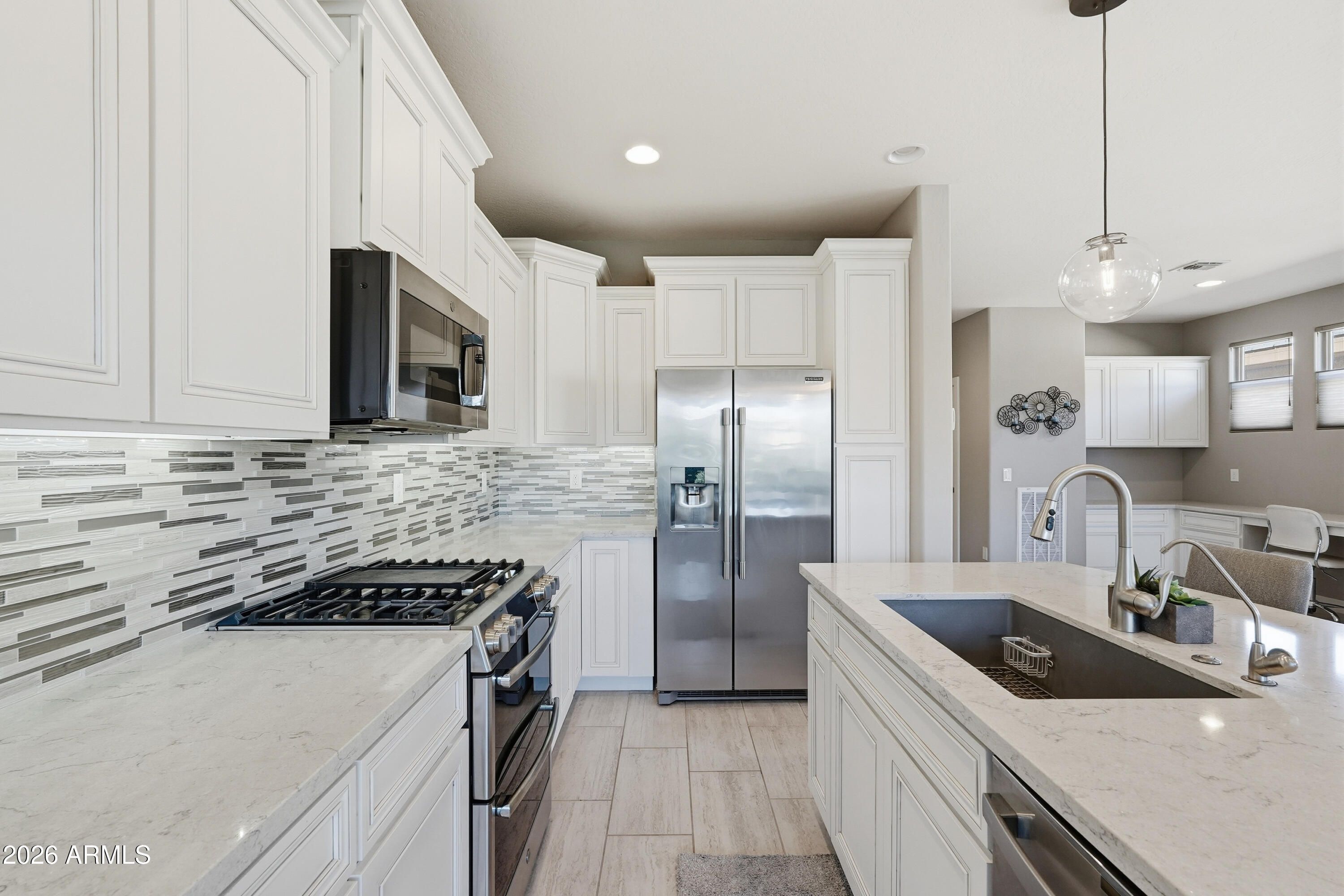 Model-perfect Muros plan in sought-after Encanterra Country Club! This gorgeous home offers 2 bedrooms, 2 baths, a dedicated office/workspace, and a bright open floor plan designed for easy living. Spacious kitchen flows seamlessly into the dining and living areas, ideal for entertaining or everyday comfort. Large windows fill the home with natural light while capturing peaceful views of a lush walking trail. Features include inside laundry, a 2-car attached garage, and immaculate condition throughout. A true turnkey, lock-and-leave opportunity to enjoy Encanterra's resort-style lifestyle and amenities!