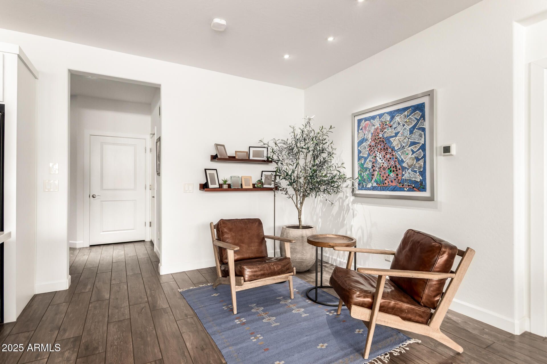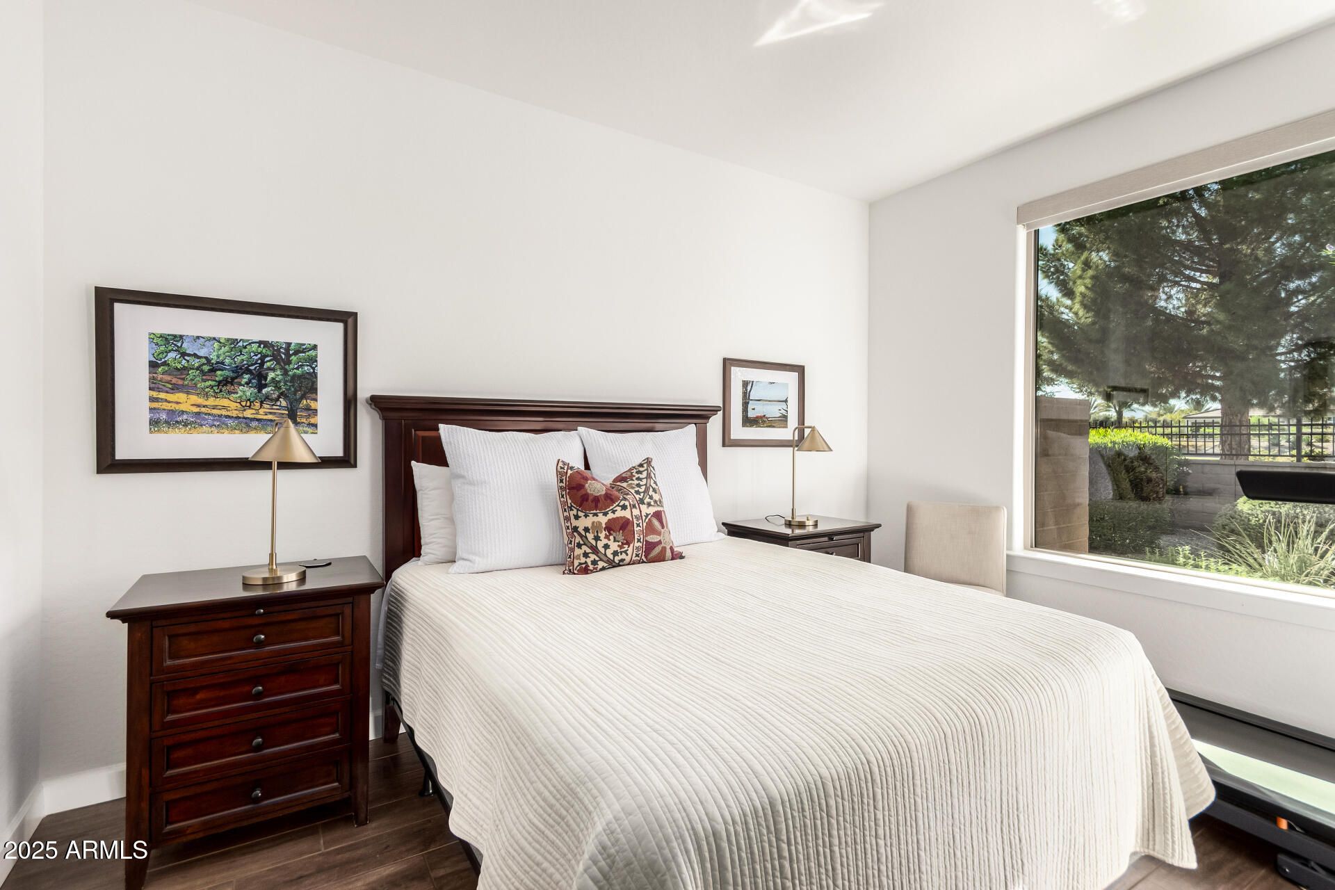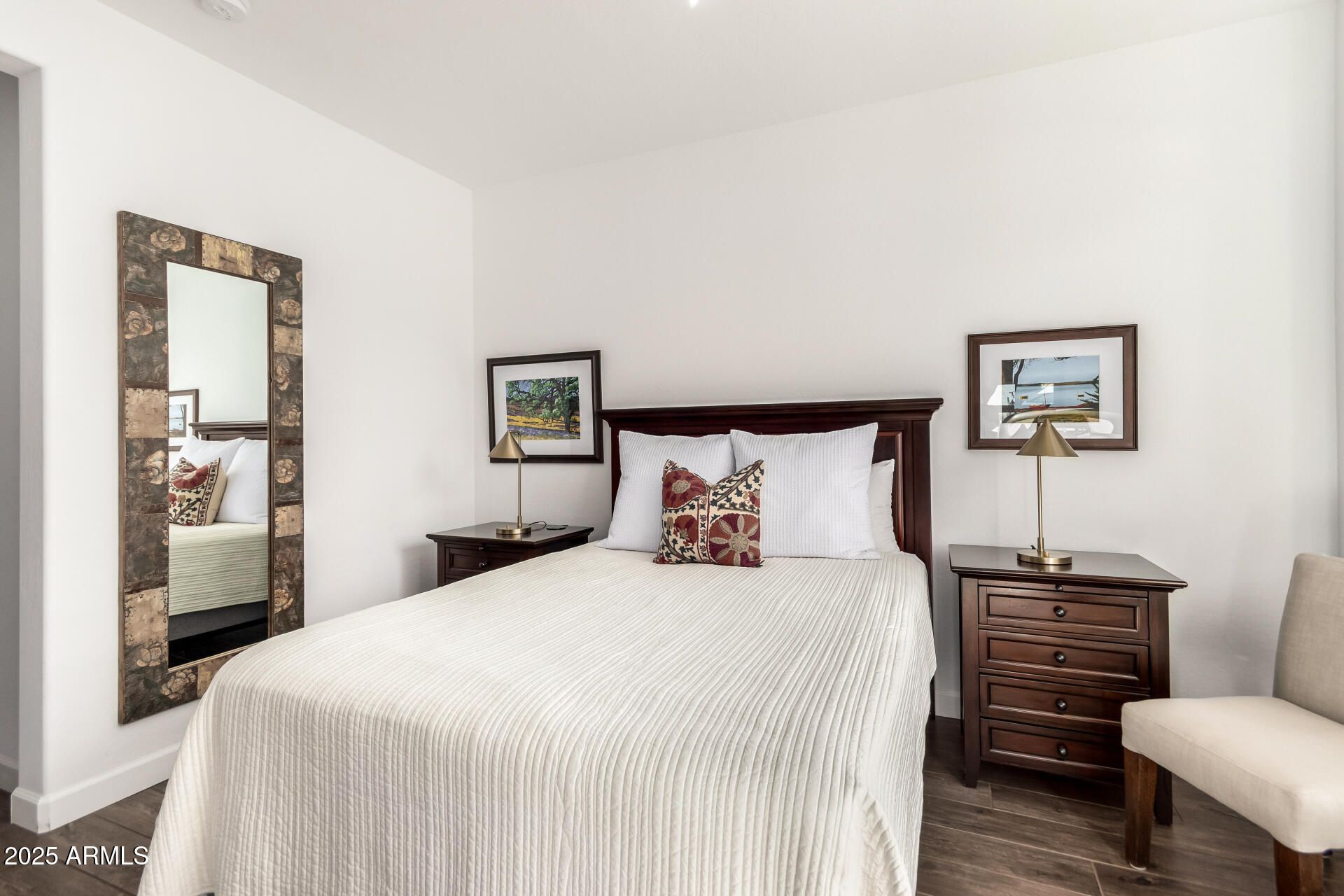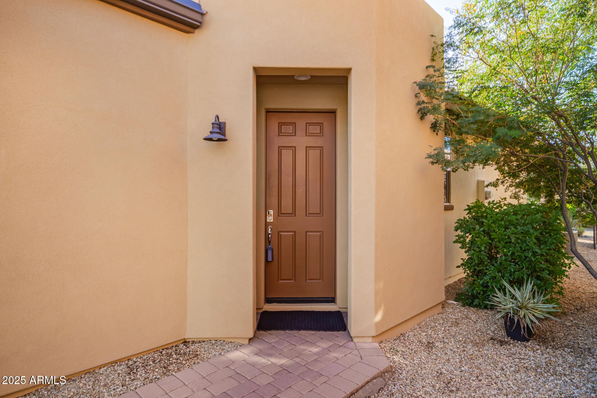 This 2-bedroom residence features plenty of space for entertaining with a captivating open layout w/high ceilings, a soothing palette, 2'' recessed LED lighting w/dimmers inside & out, attractive wood plank flooring & custom window sills . The gourmet kitchen has quartz counters & matching backsplash, crisp white shaker cabinets w/crown molding, chic pendant lighting, stainless steel appliances, composite sink & an island w/a breakfast bar. The primary bedroom ensuite has double vanities & a generous walk-in closet. Office space & a spacious guest room complete the inside. The backyard offers a covered patio perfect for dining w/high-powered misters to keep you cool. Encanterra boasts a true country club lifestyle with tennis courts, award-winning golf course & more. Furniture available.