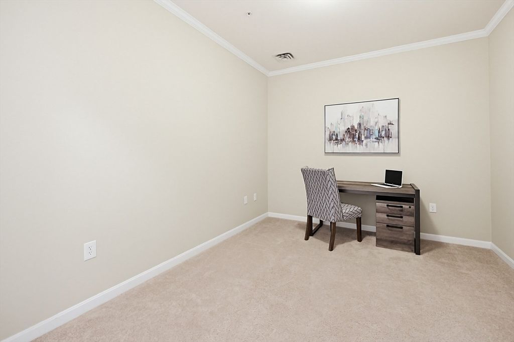 Immaculate Reading Woods condo in a non-age restricted building! Hurry to see this highly desired one bedroom unit offering a spacious stainless/granite kitchen, crown molding, in-unit washer/dryer and great closet space. The den offers great versatile space for a home office or yoga room or guests-your choice! Enjoy your morning coffee on the private balcony overlooking the tranquil courtyard. Two car parking in the heated garage. Ideal location with quick access to Routes 95 & 93, shopping, dining and public transportation. The community also features a fitness center and a clubhouse. The manicured grounds, walking trails and open green spaces round out this exceptional living experience. Open House Friday 5-6:30PM, Saturday and Sunday 12 -1:30PM.