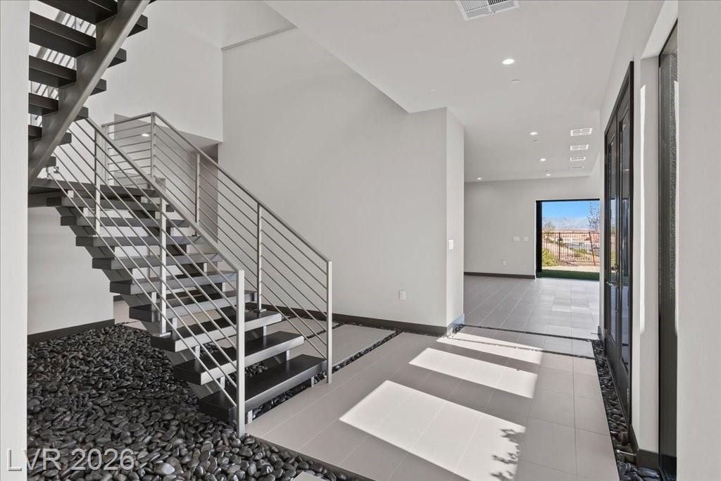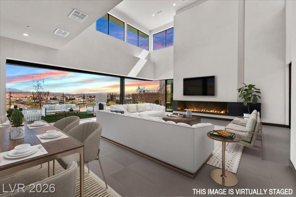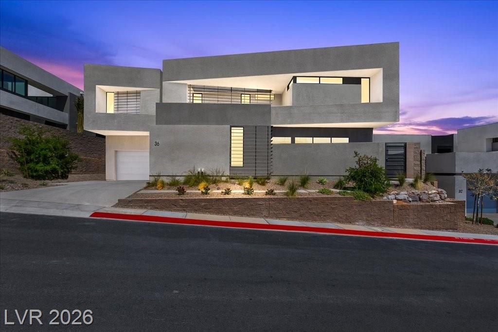 Welcome to 36 Rainbow Point, a stunning modern Blue Heron residence located in the exclusive guard-gated community of Caliza, on the North Shore of Lake Las Vegas. This brand-new home has never been lived in, and offers a rare opportunity to design your luxury dream home with breathtaking mountain, and lake views. The open concept floor plan is filled with natural light, and highlighted by a dramatic floating staircase, and linear fireplace. Expansive windows frame the surrounding landscape, creating a seamless connection between indoor living and natural beauty outside. This home offers a sophisticated yet comfortable lifestyle combining modern design, privacy, and the ease of lock-and-leave living. Minutes from Lake Las Vegas dining, 2 Jack Nicklaus designed Golf Courses, and recreation. About 25 minutes from The Las Vegas Strip, Henderson and Harry Reid Airports. Nevada has NO State, Individual, Corporate, Estate or Inheritance Tax offering significant savings for Residents.